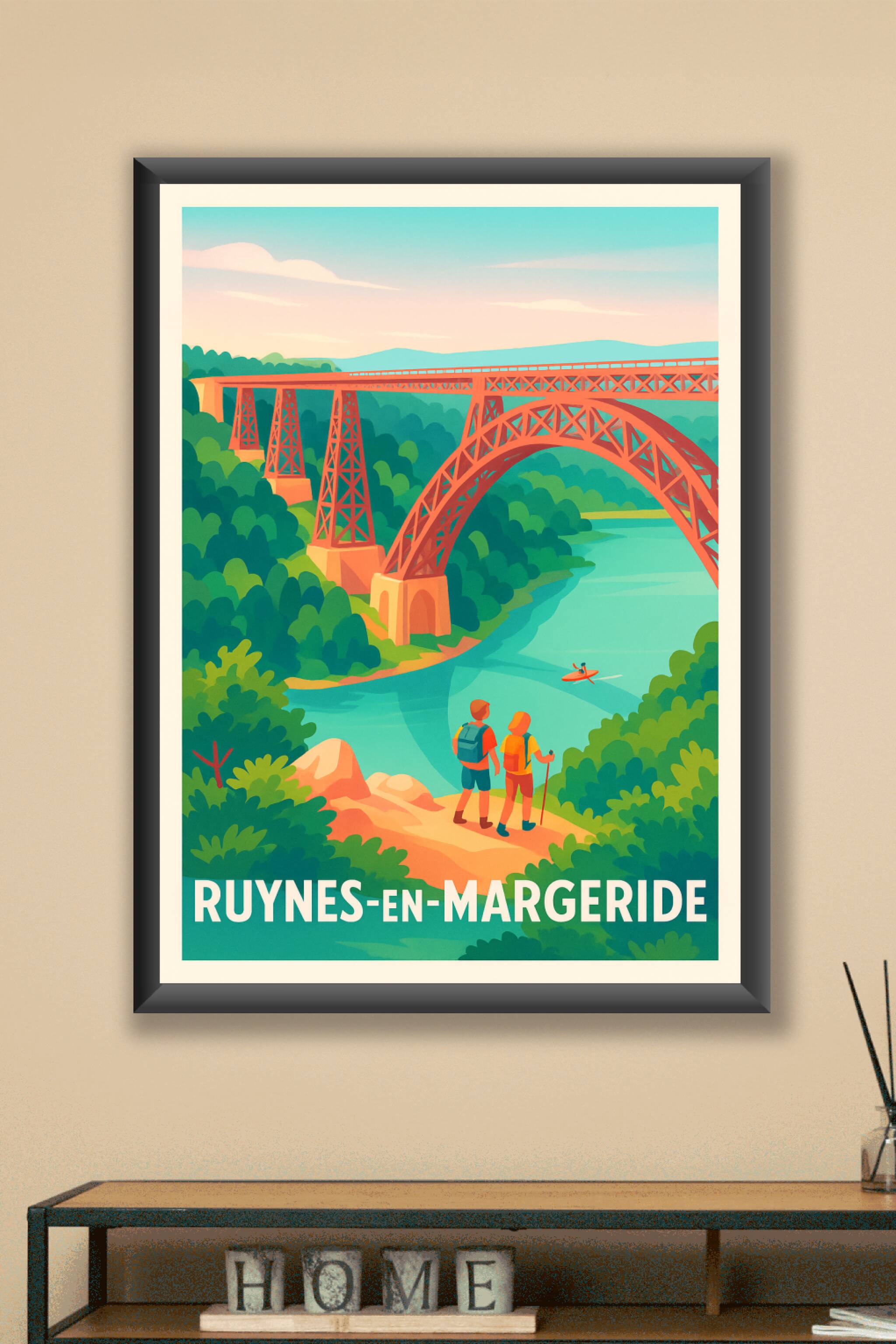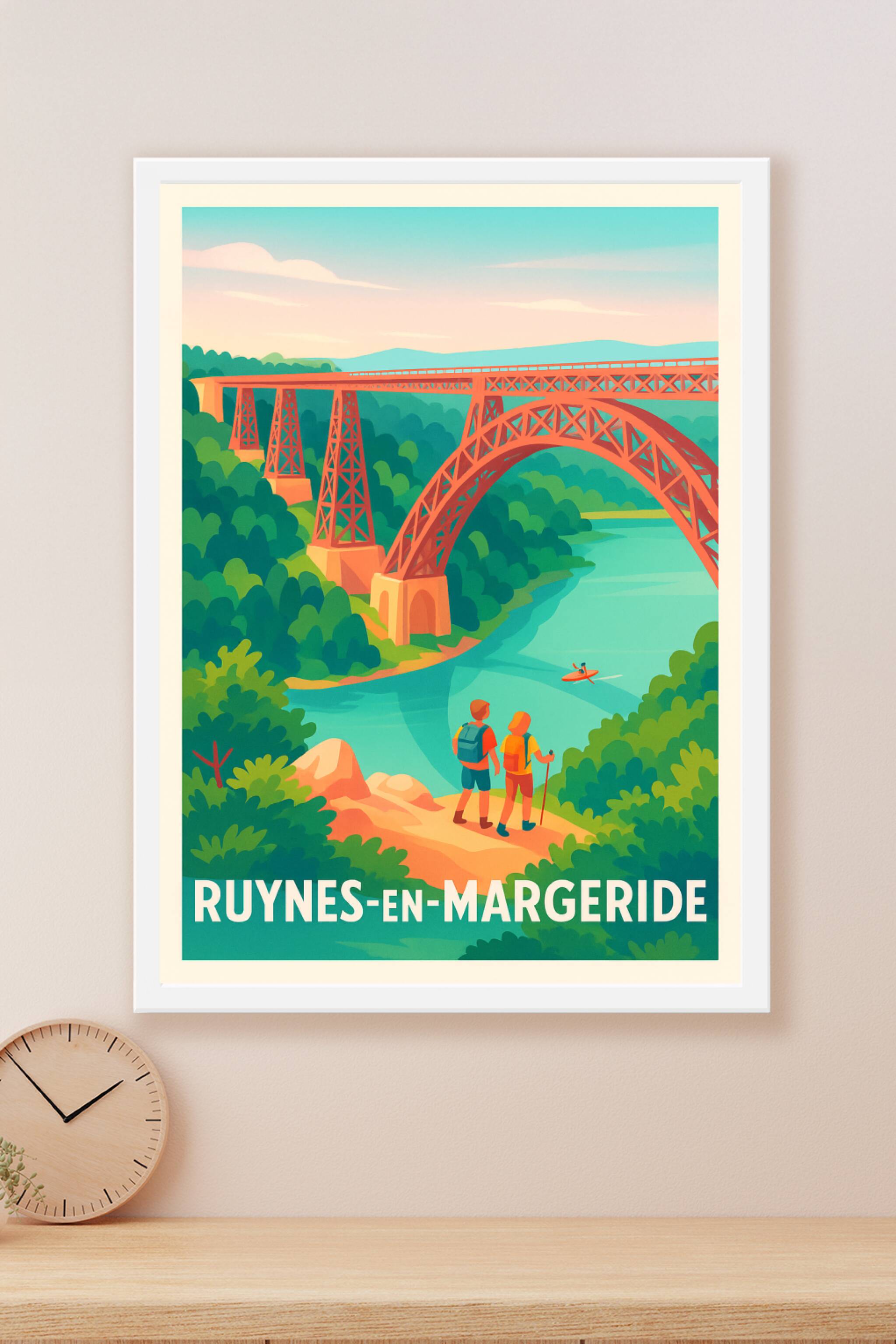 Découvrez la beauté naturelle et l'architecture impressionnante de Ruynes-en-Margeride avec cette affiche illustrée. Le poster met en scène le célè...