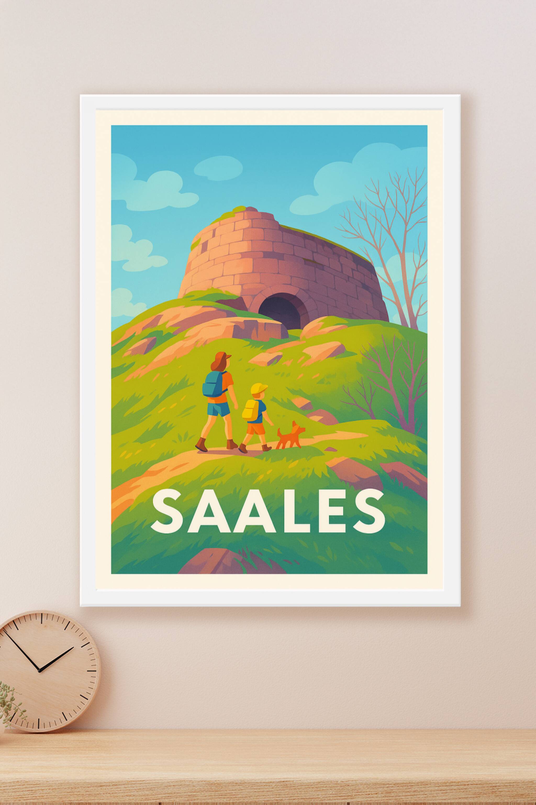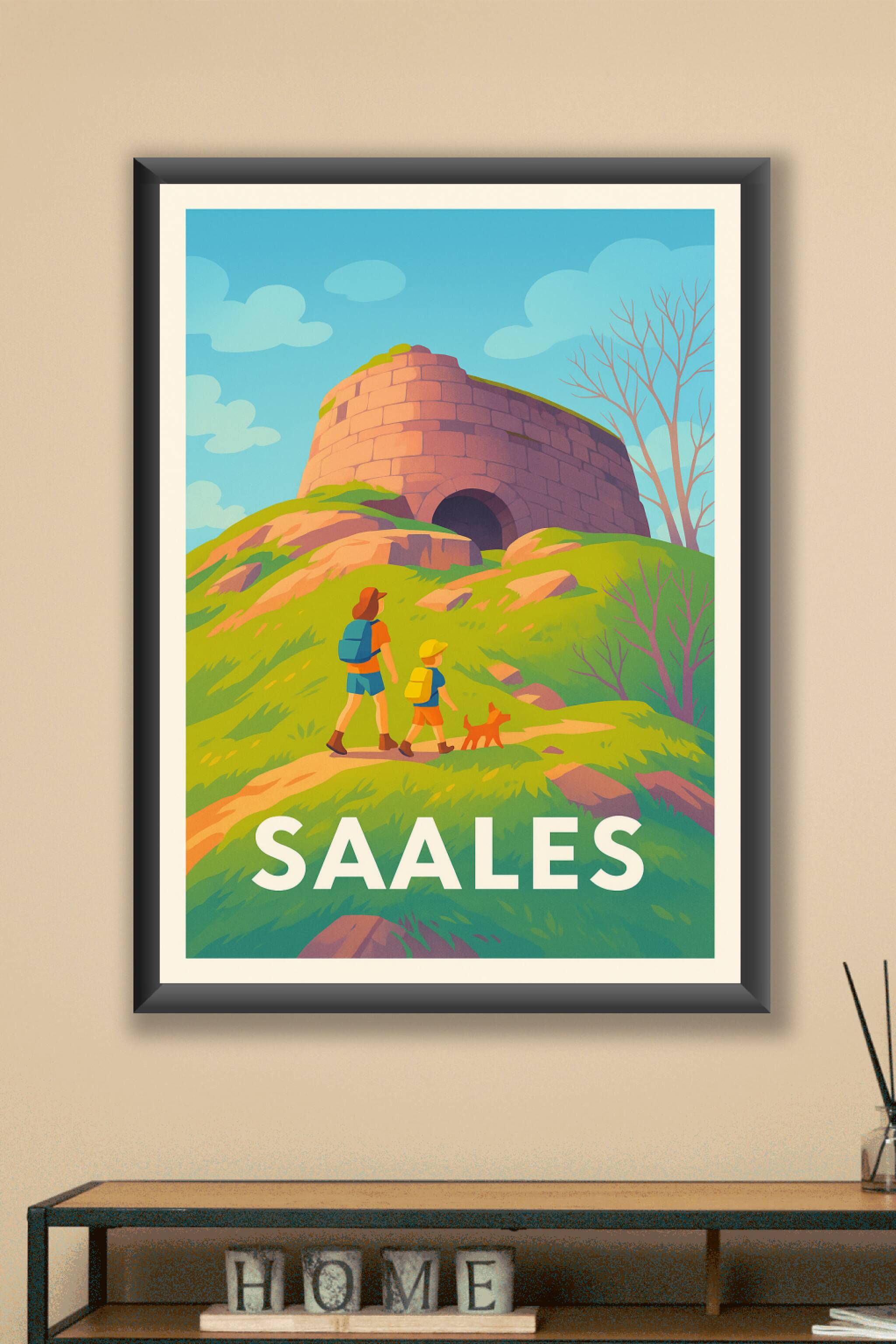 Découvrez la beauté naturelle et historique de Saales avec cette affiche illustrée au style vintage. Plongez dans l’atmosphère paisible de cette pe...