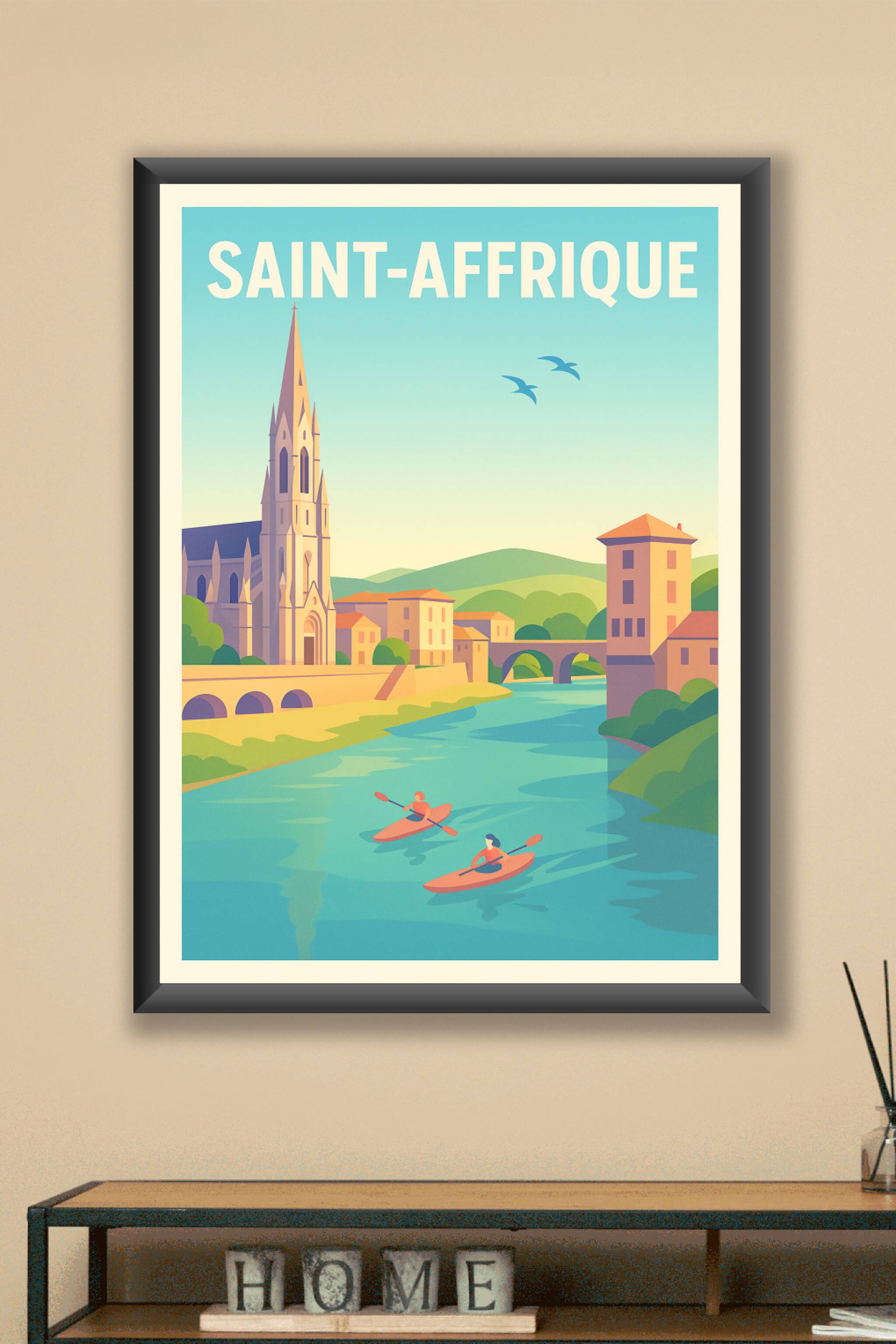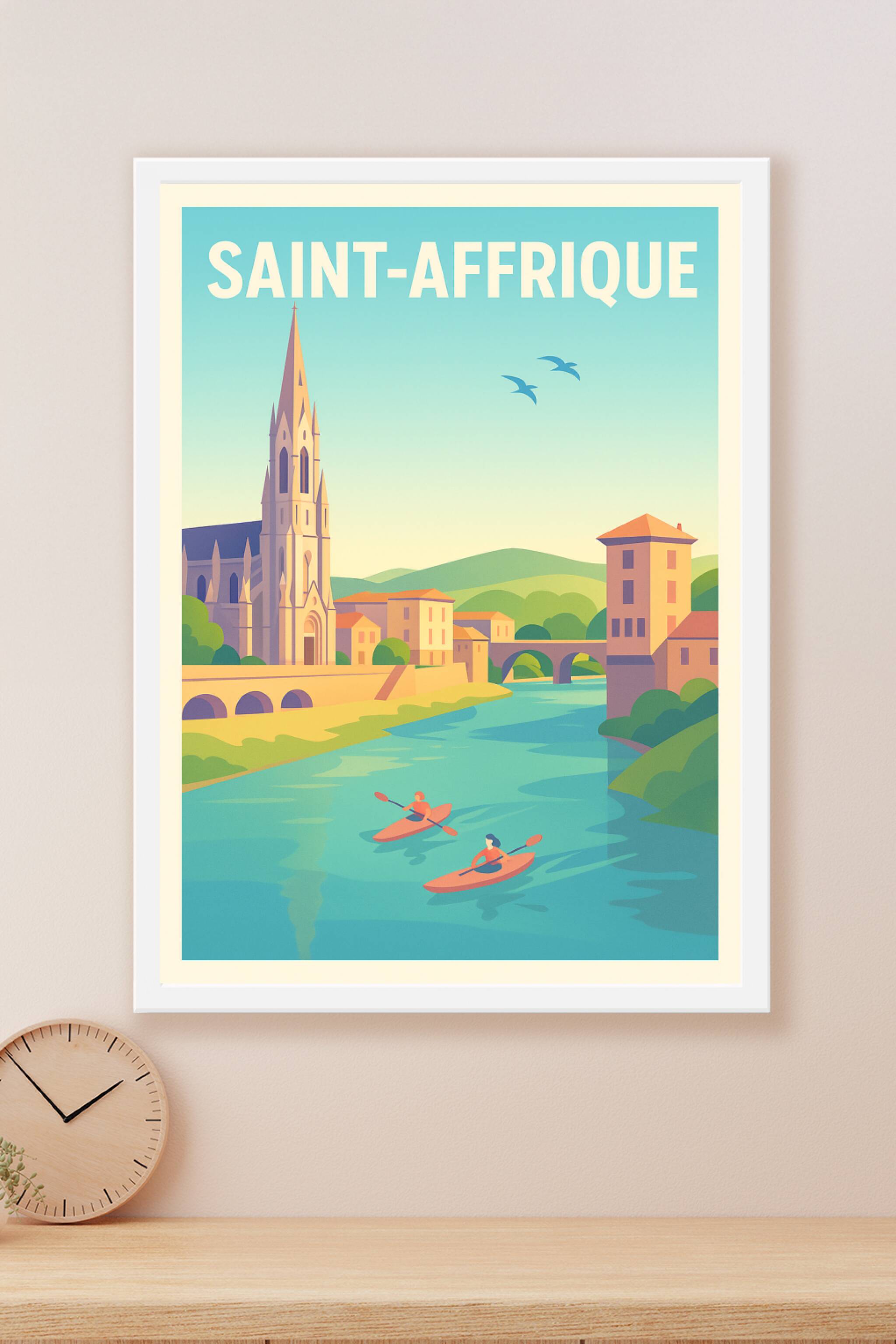 Découvrez le charme intemporel de Saint-Affrique avec cette affiche illustrée qui capture l'élégance architecturale et la douceur de vivre au bord ...