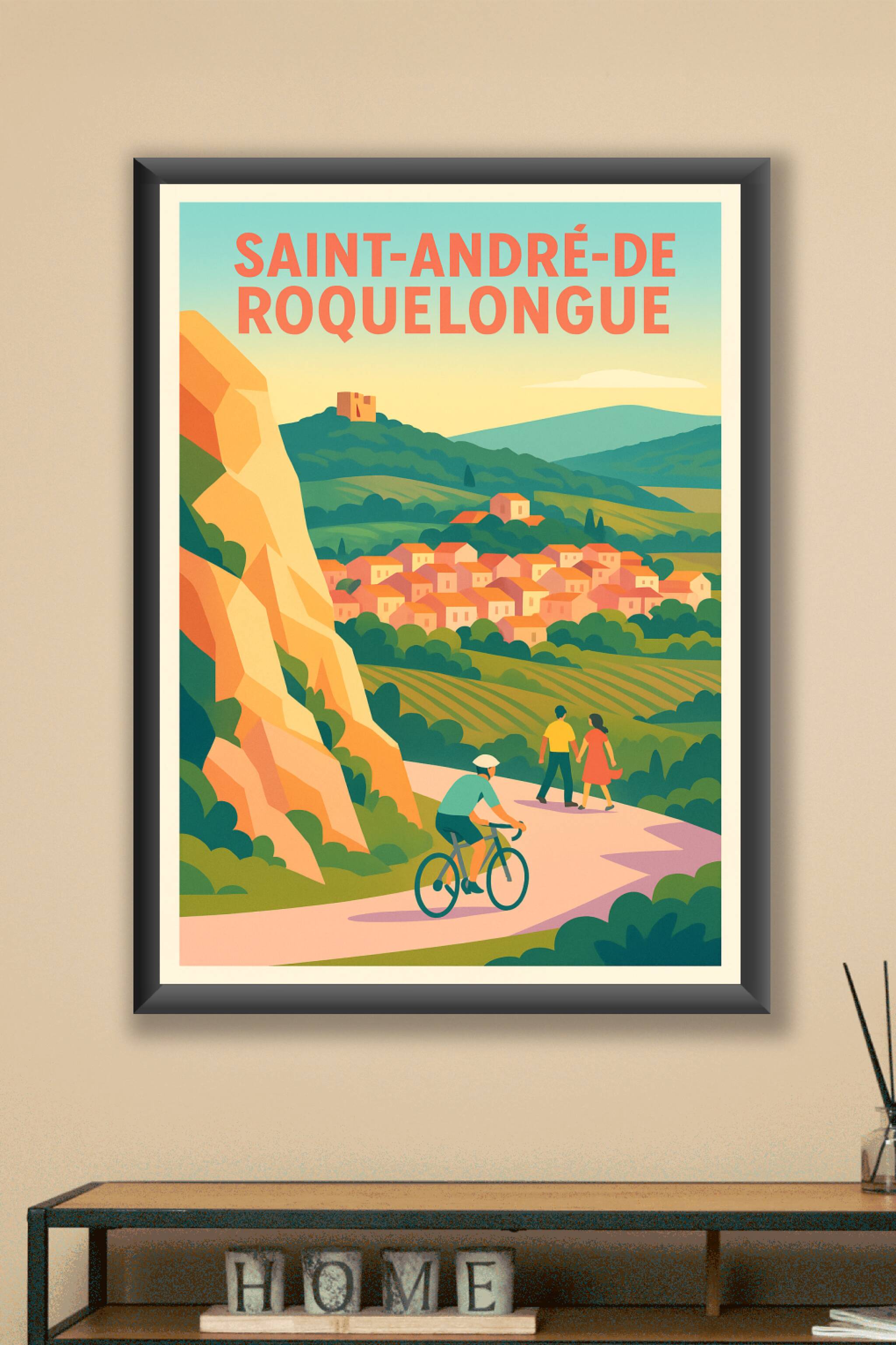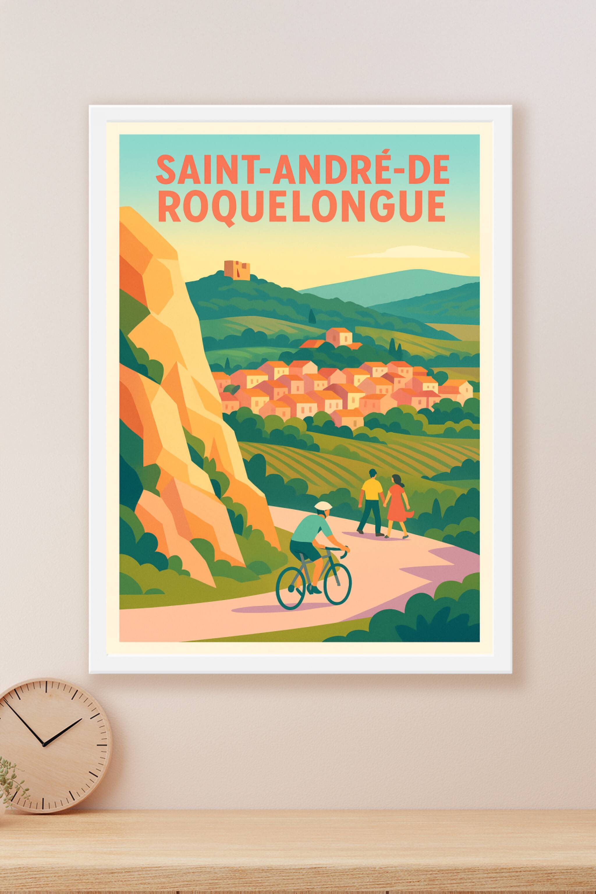 Découvrez la beauté authentique de Saint-André-de-Roquelongue avec cette affiche illustrée au style vintage, mettant en scène ses paysages vallonnés et son village pittoresque. Que vous soyez amateur de balades à vélo ou d'escapades romantiques, ce poster invite à une pause enchantée au cœur de la nature méditerranéenne.Cette affiche est proposée en tirage "Fine Art" sur papier 305g coton, garantissant une qualité d'impression haute définition et une durabilité exceptionnelle. Disponible en formats A1 à A4, avec ou sans cadre, elle s'adapte parfaitement à la décoration de votre intérieur ou à un cadeau raffiné.Offrez-vous ou offrez un morceau de ce havre de paix avec ce poster premium, 100% fabriqué en France, qui sublimera votre espace de vie.