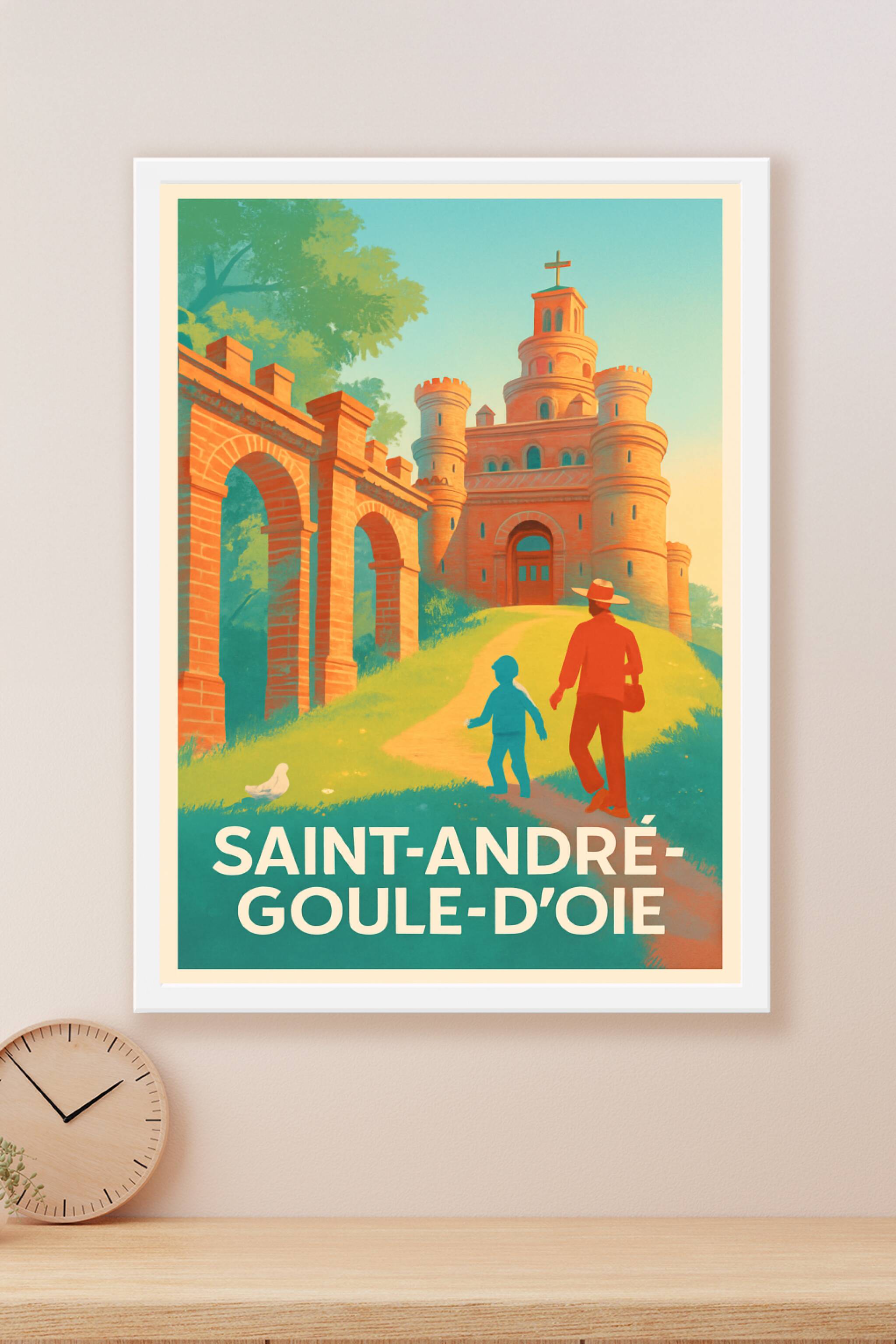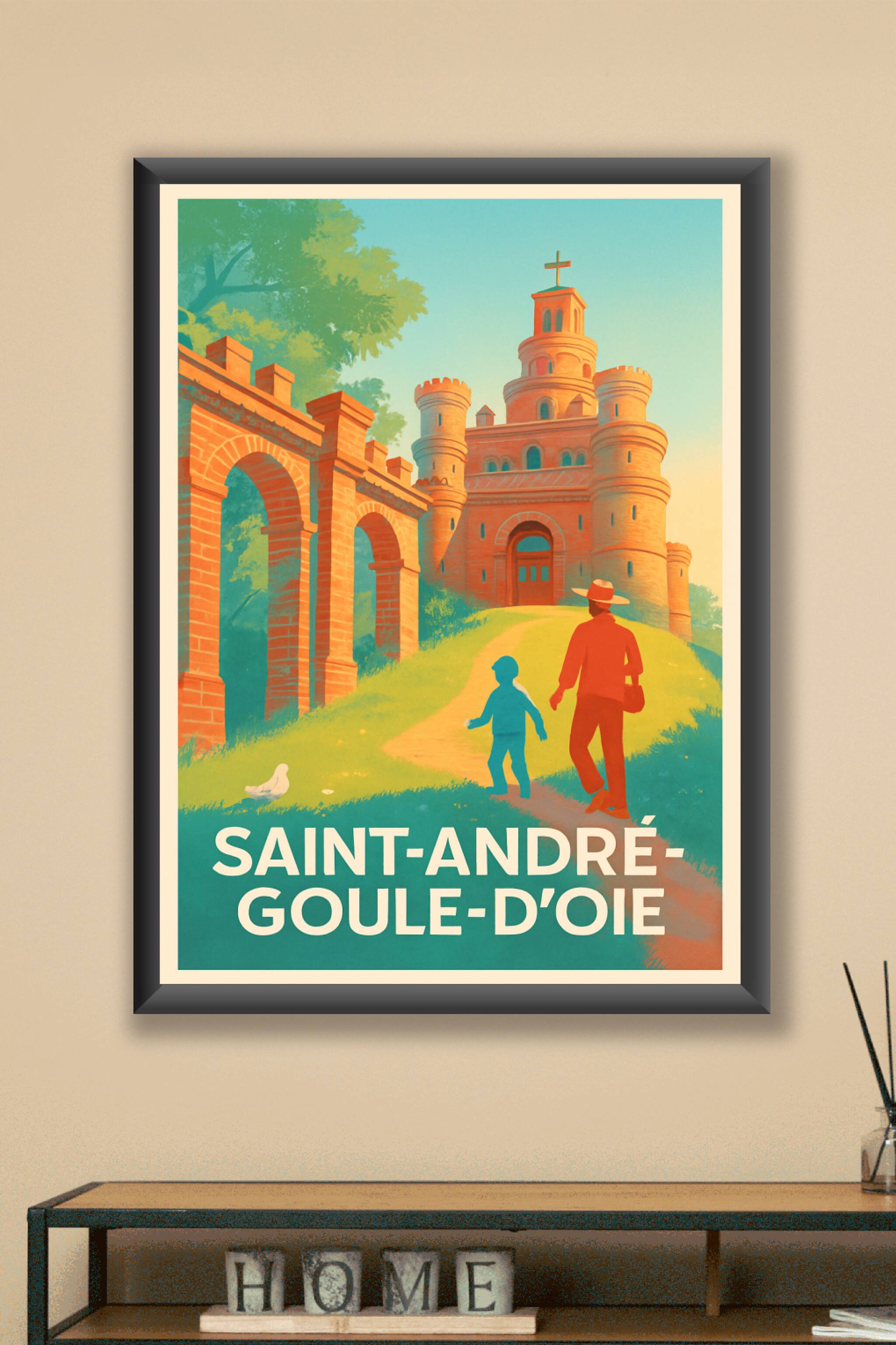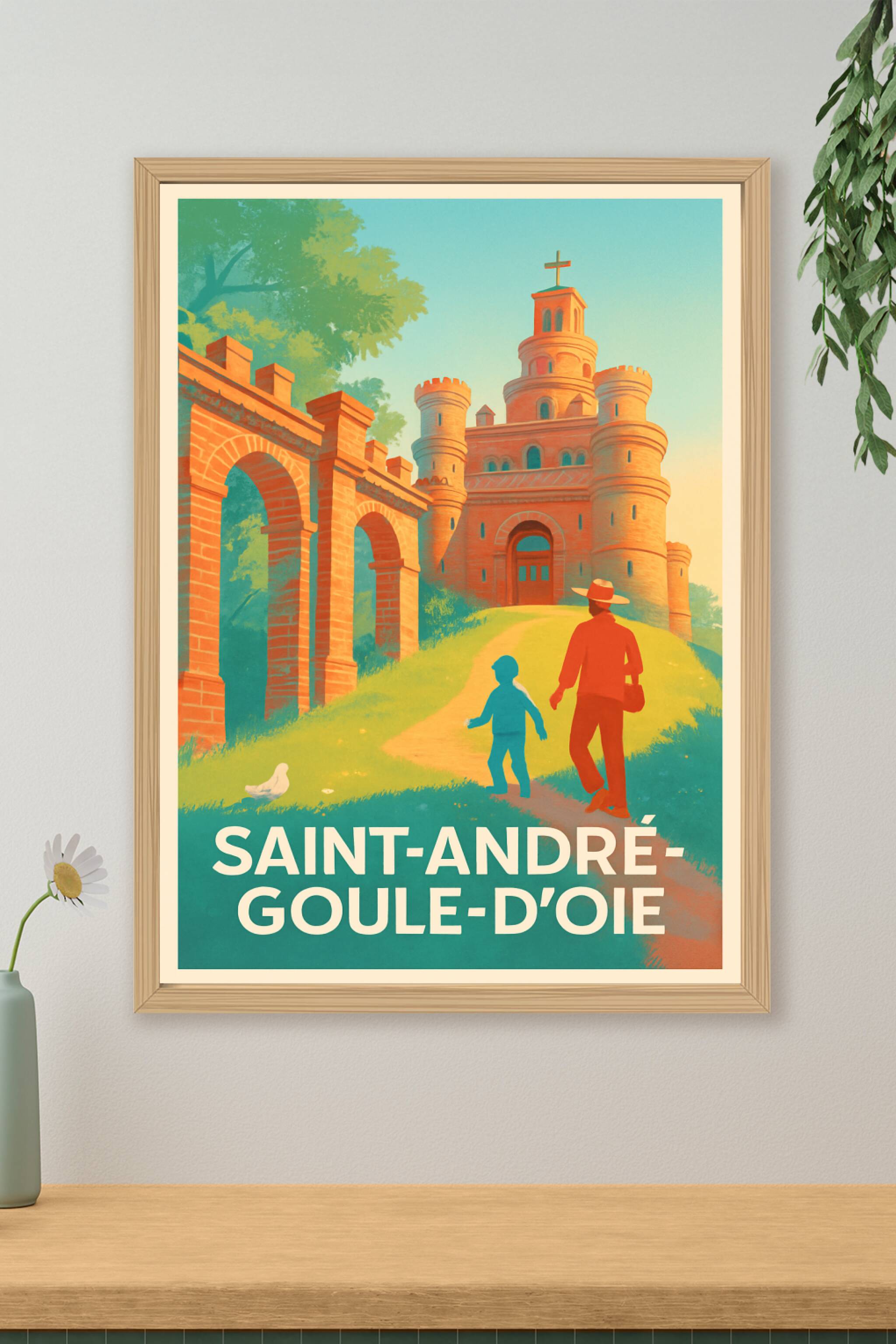 Découvrez toute la magie et l'histoire du château de Saint-André-Goule-d'Oie à travers cette affiche au style vintage qui invite à la promenade et ...