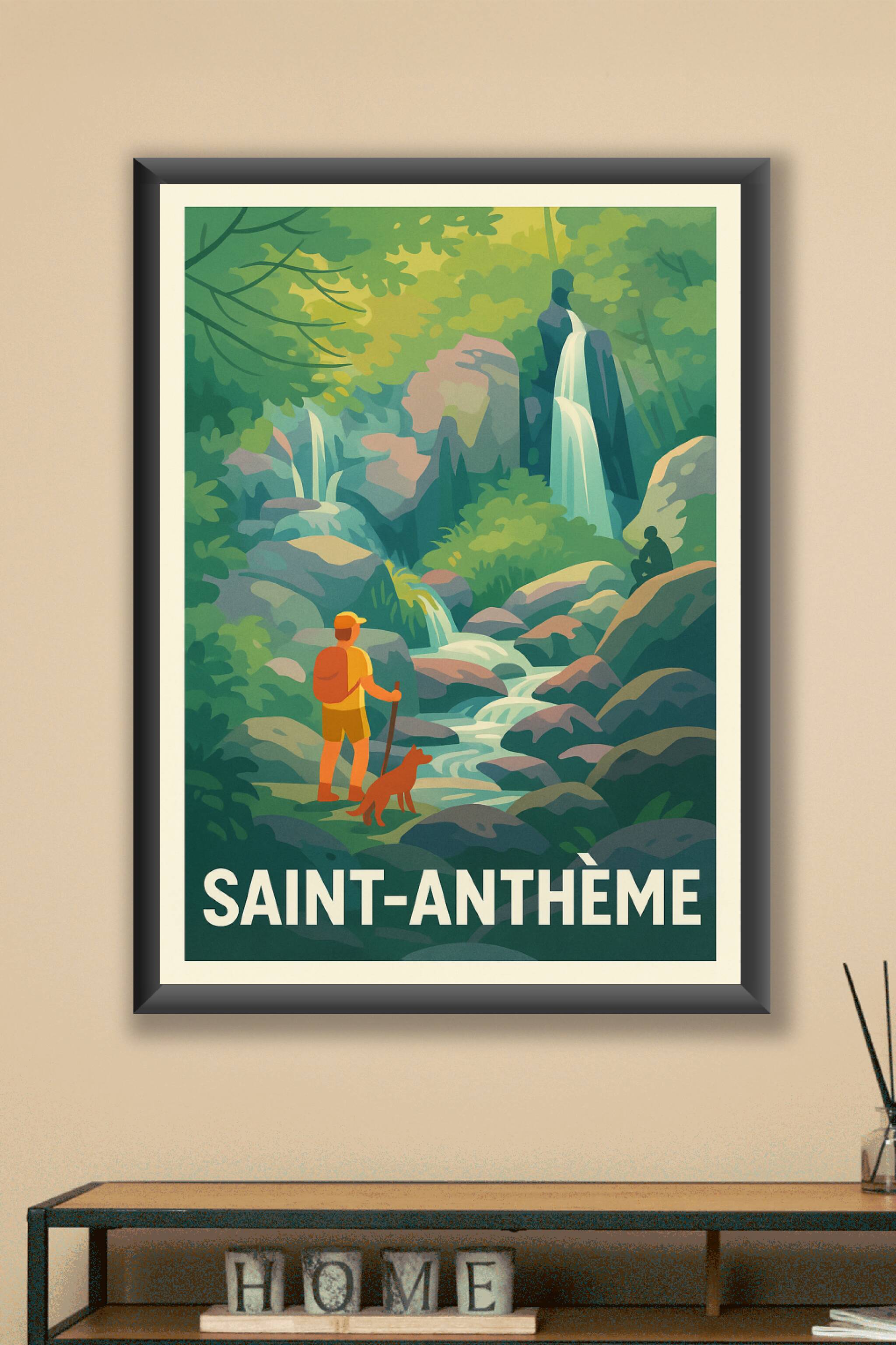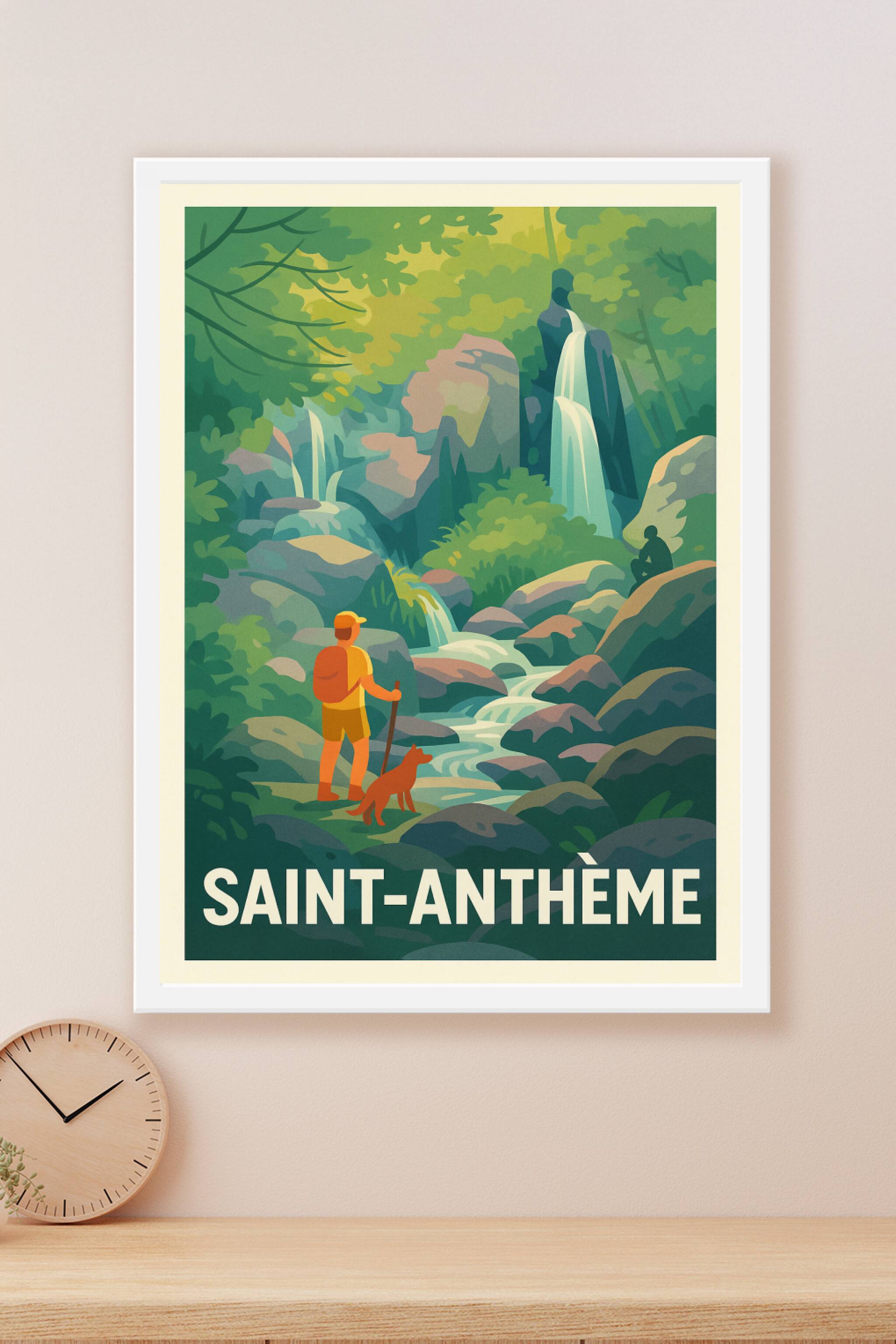 Découvrez la beauté sauvage de Saint-Antème avec cette affiche illustrée mettant en scène une cascade paisible au cœur d'une nature luxuriante. Ce ...