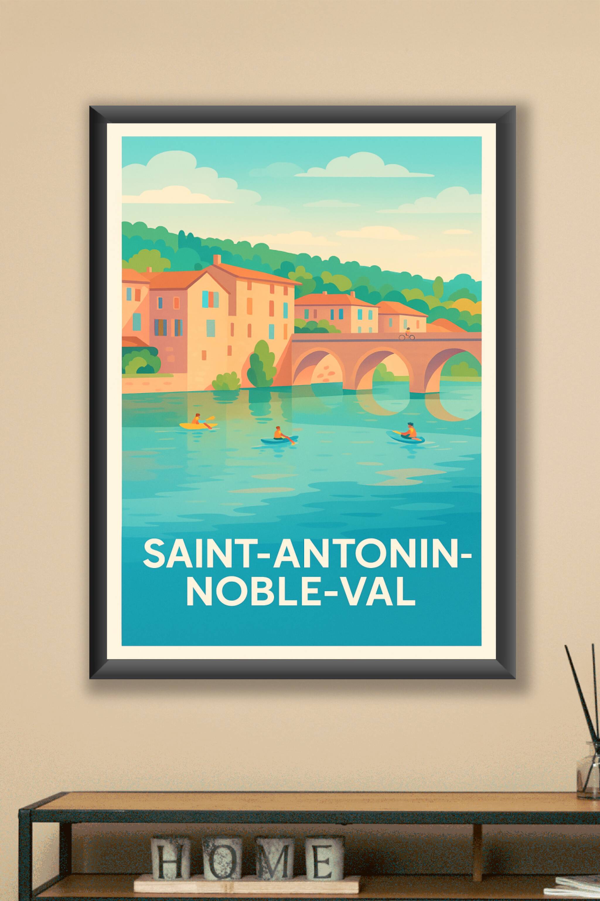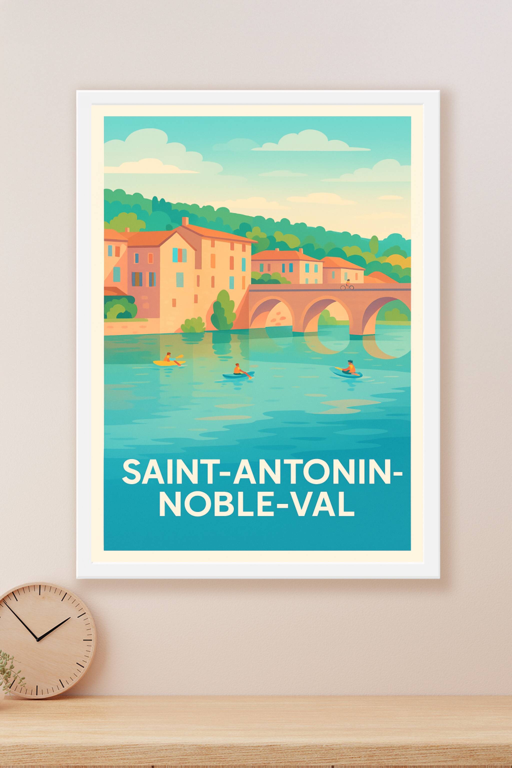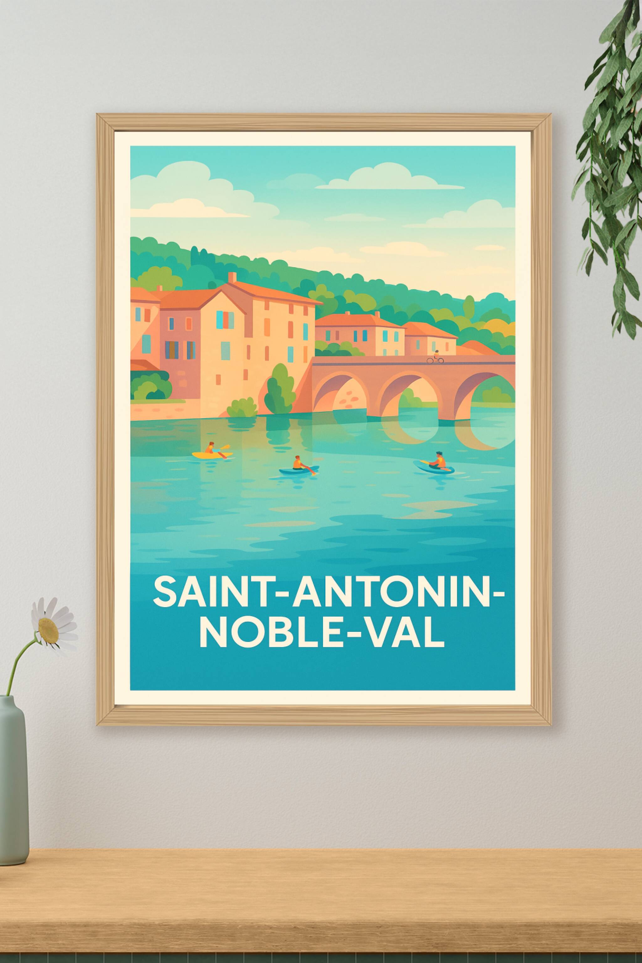 Découvrez l'élégance intemporelle de Saint-Antonin-Noble-Val à travers cette affiche illustrée aux couleurs douces et harmonieuses. Le poster met e...