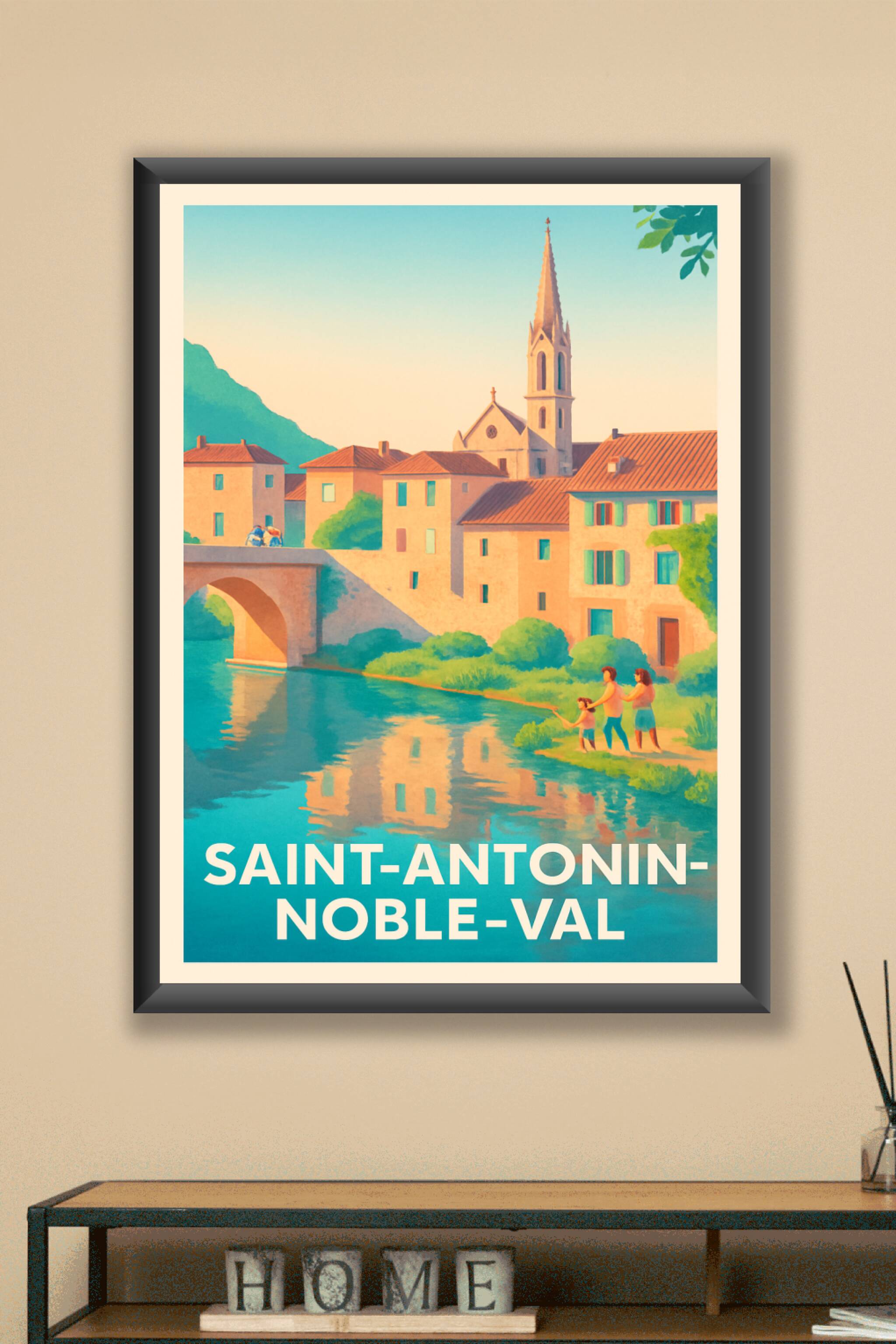 Découvrez la douceur de vivre de Saint-Antonin-Noble-Val avec cette affiche illustrée qui capture la beauté d'un village pittoresque baigné par une lumière dorée. Les maisons aux toits rouges, le pont historique et la rivière paisible s'harmonisent dans une scène pleine de chaleur et de tranquillité.Alliant esthétique vintage et modernité, ce poster est proposé en tirage "Fine Art" sur un papier 305g coton de haute qualité garantissant des couleurs éclatantes et une durabilité exceptionnelle. Disponible en plusieurs dimensions allant de A1 à A4, vous pouvez aussi choisir votre affiche avec ou sans cadre pour une intégration parfaite dans votre intérieur.Offrez-vous ou à vos proches un souvenir élégant et raffiné de ce lieu unique, avec une impression premium 100% française pour une touche déco authentique.