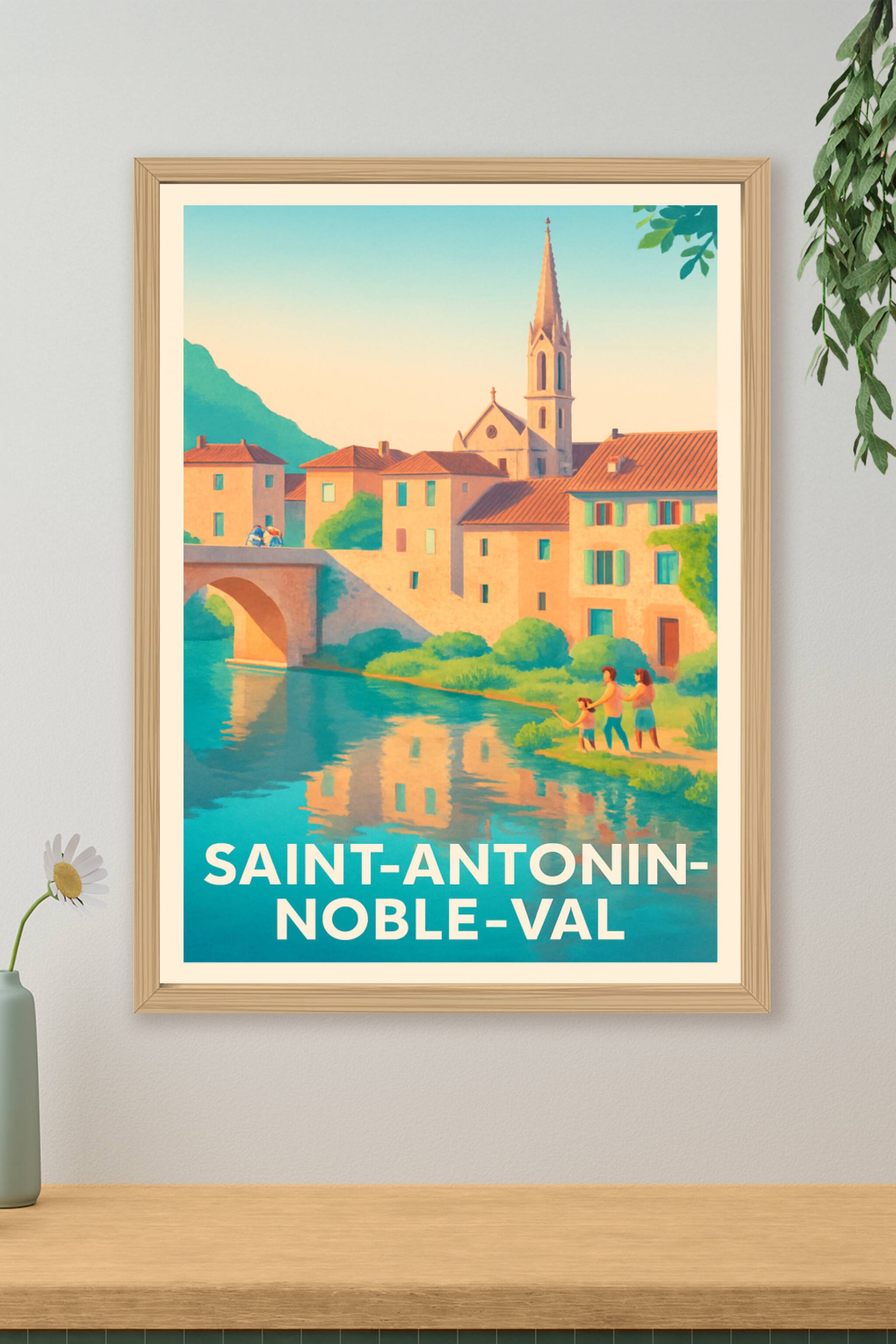 Découvrez la douceur de vivre de Saint-Antonin-Noble-Val avec cette affiche illustrée qui capture la beauté d'un village pittoresque baigné par une...