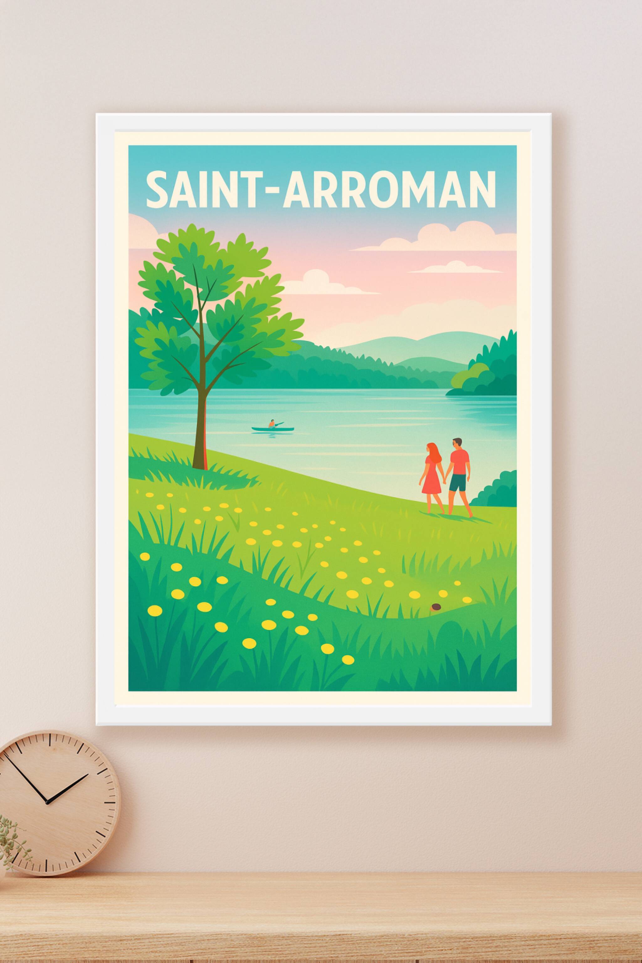Apportez la douceur et la sérénité de Saint-Arroman dans votre intérieur avec cette affiche illustrée mettant en scène un couple se promenant au bo...