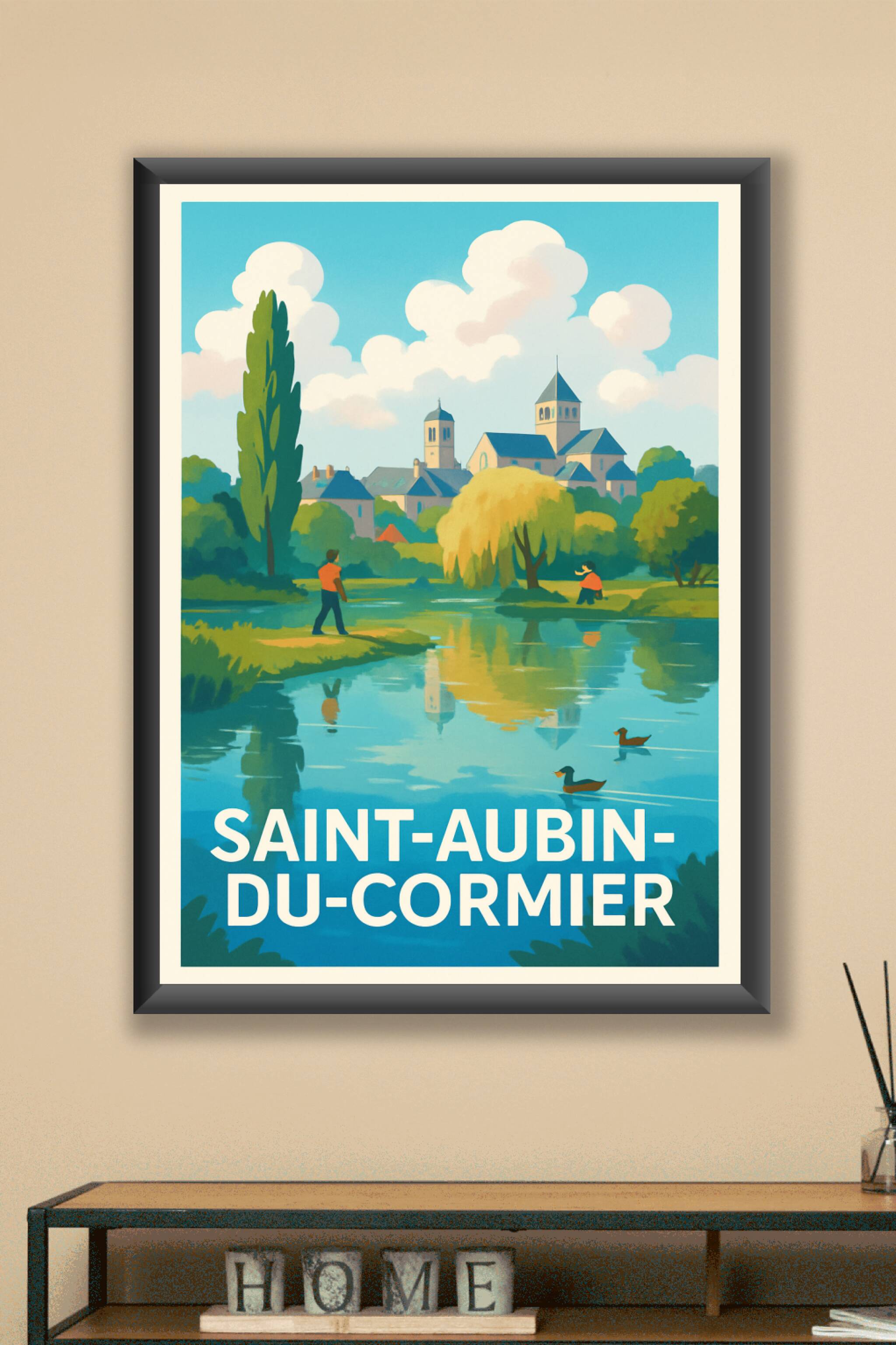 Découvrez la douceur de vivre à Saint-Aubin-du-Cormier avec ce poster illustré aux couleurs apaisantes et à l'ambiance bucolique. Ce paysage, où la...