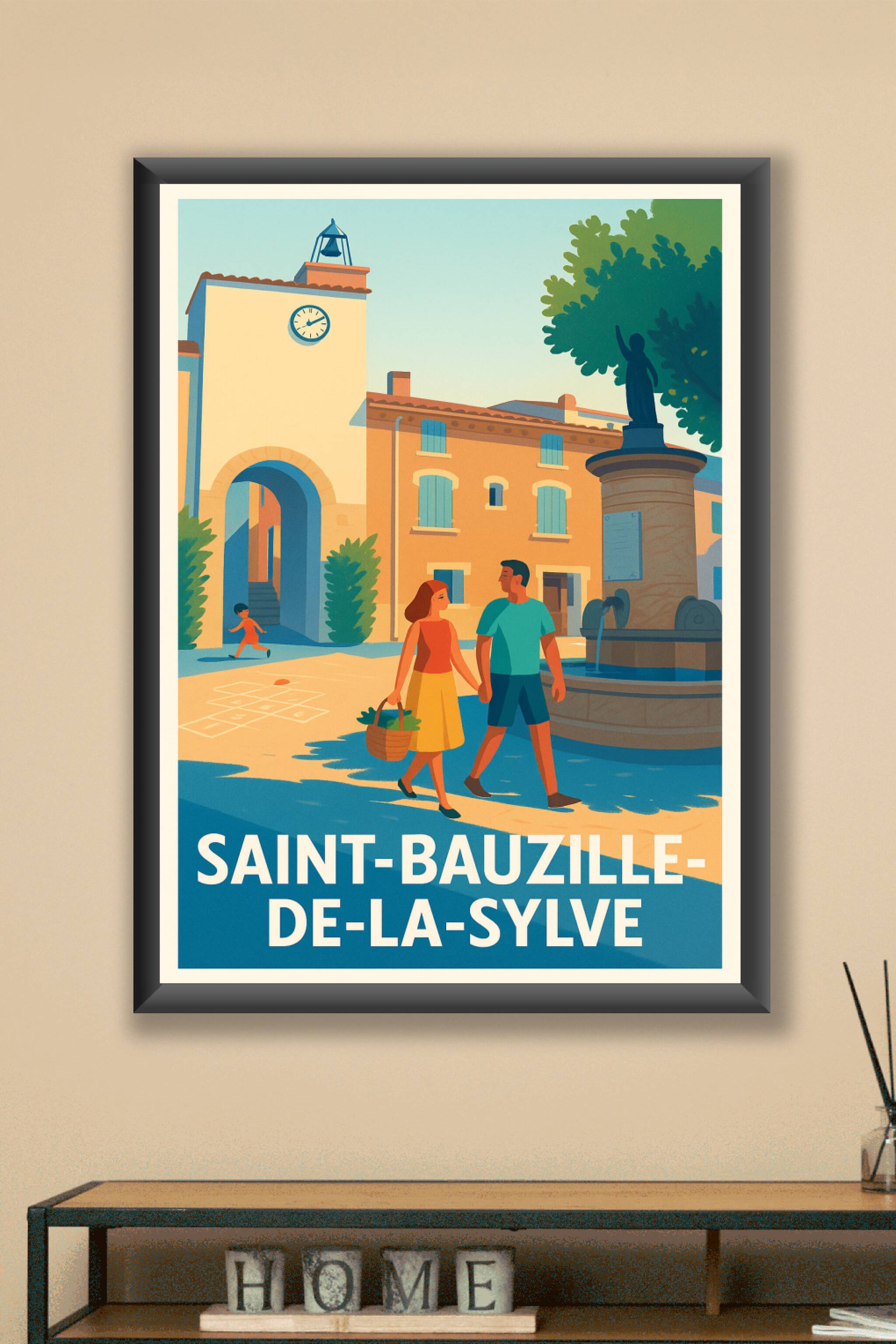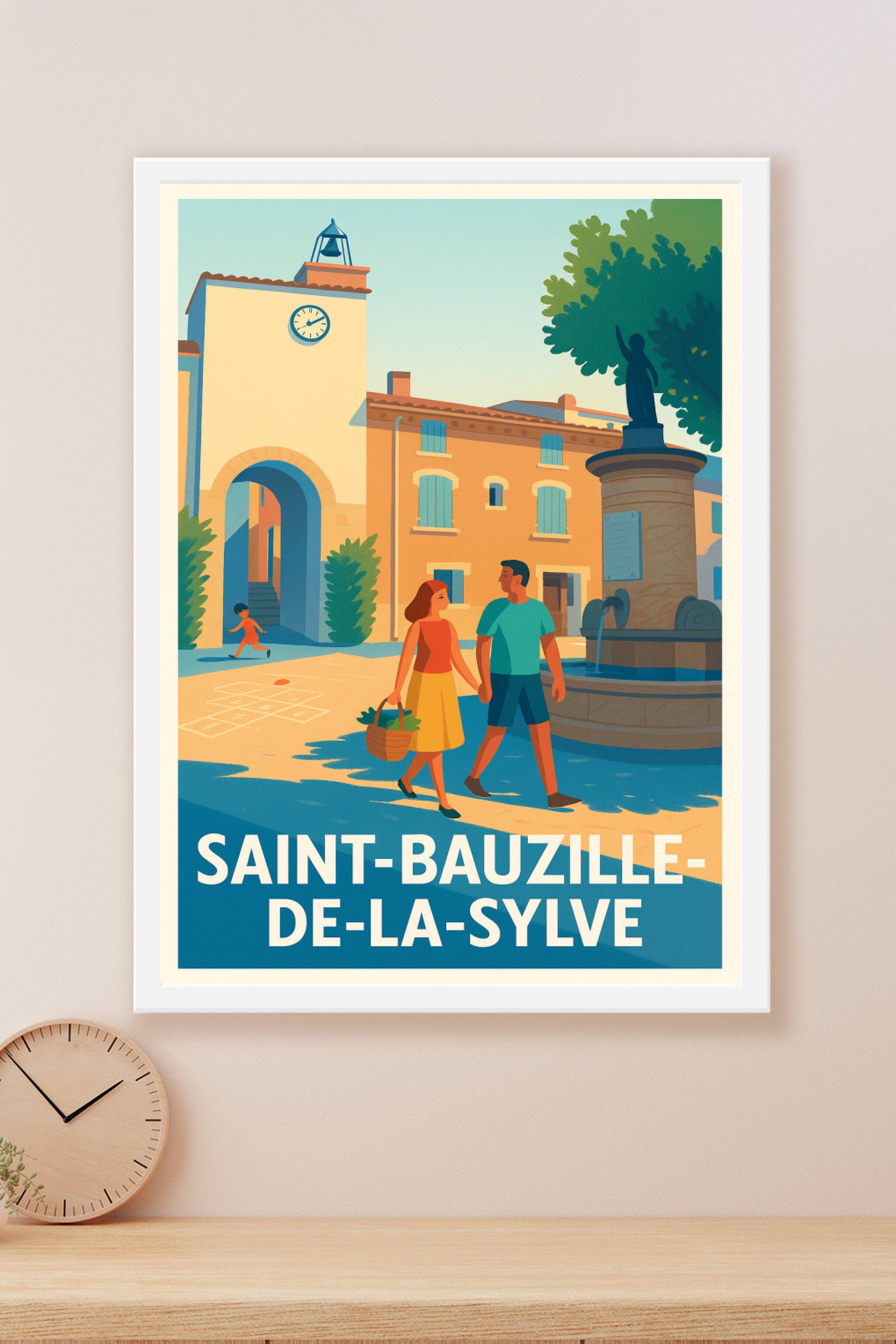 Découvrez l'atmosphère paisible et authentique de Saint-Bauzille-de-la-Sylve avec cette affiche illustrée qui capture un instant de vie bucolique e...