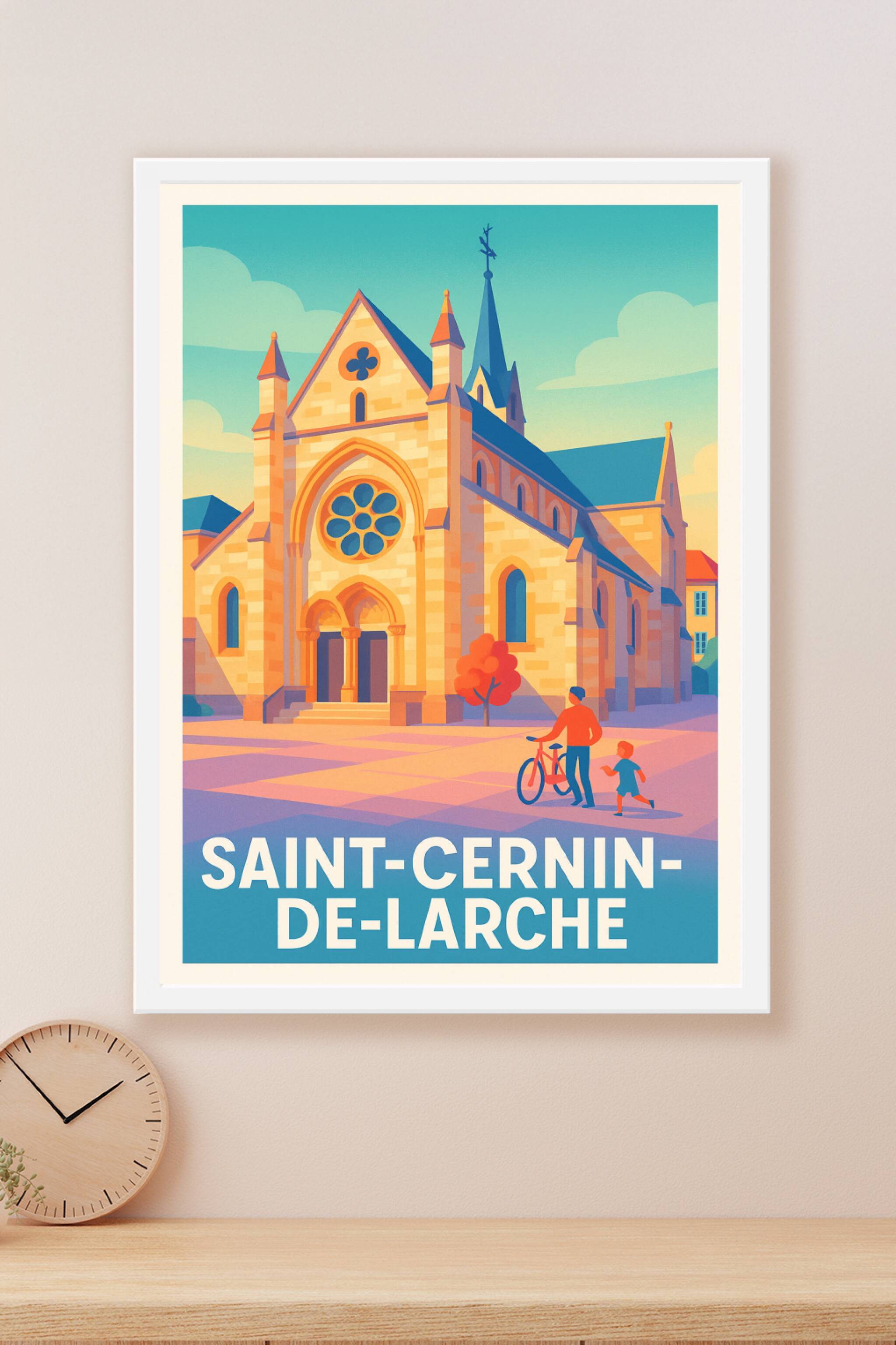 Découvrez l'élégance architecturale de Saint-Cernin-de-Larche à travers cette affiche illustrée, qui met en lumière la beauté intemporelle de son é...