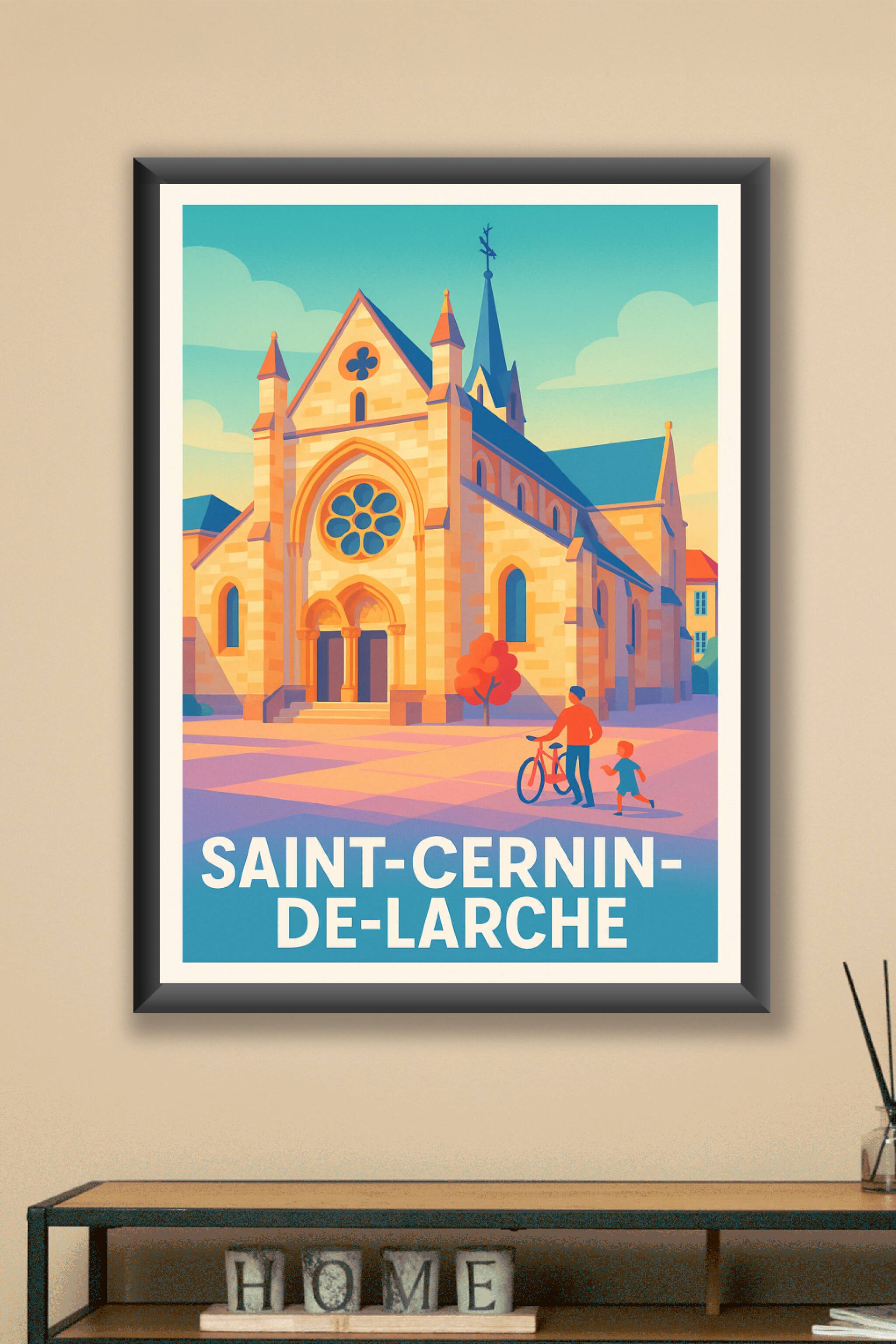 Découvrez l'élégance architecturale de Saint-Cernin-de-Larche à travers cette affiche illustrée, qui met en lumière la beauté intemporelle de son église emblématique. Ce poster, aux couleurs douces et apaisantes, invite à un voyage visuel empreint de sérénité et de patrimoine.Cette affiche est imprimée en tirage "Fine Art" sur papier 305g coton, garantissant une qualité d'impression exceptionnelle et une longévité garantie. Disponible en plusieurs formats, de A1 à A4, avec ou sans cadre, elle s'adapte parfaitement à tous les espaces, qu'ils soient modernes ou plus classiques.Fabriquée en France, cette œuvre est idéale pour apporter une touche de charme corrézien à votre décoration intérieure ou offrir un cadeau unique et raffiné aux passionnés de lieux authentiques.