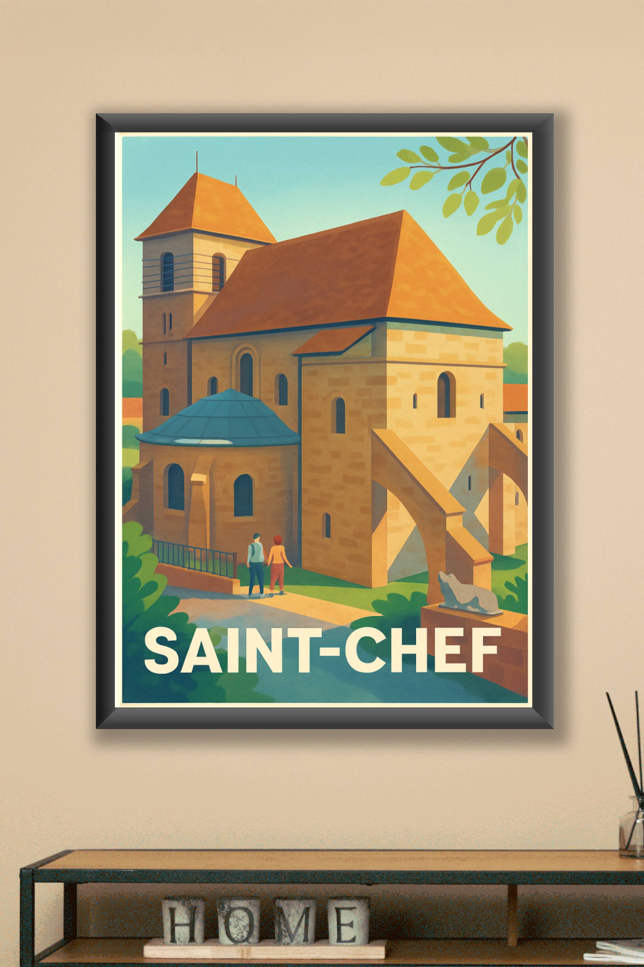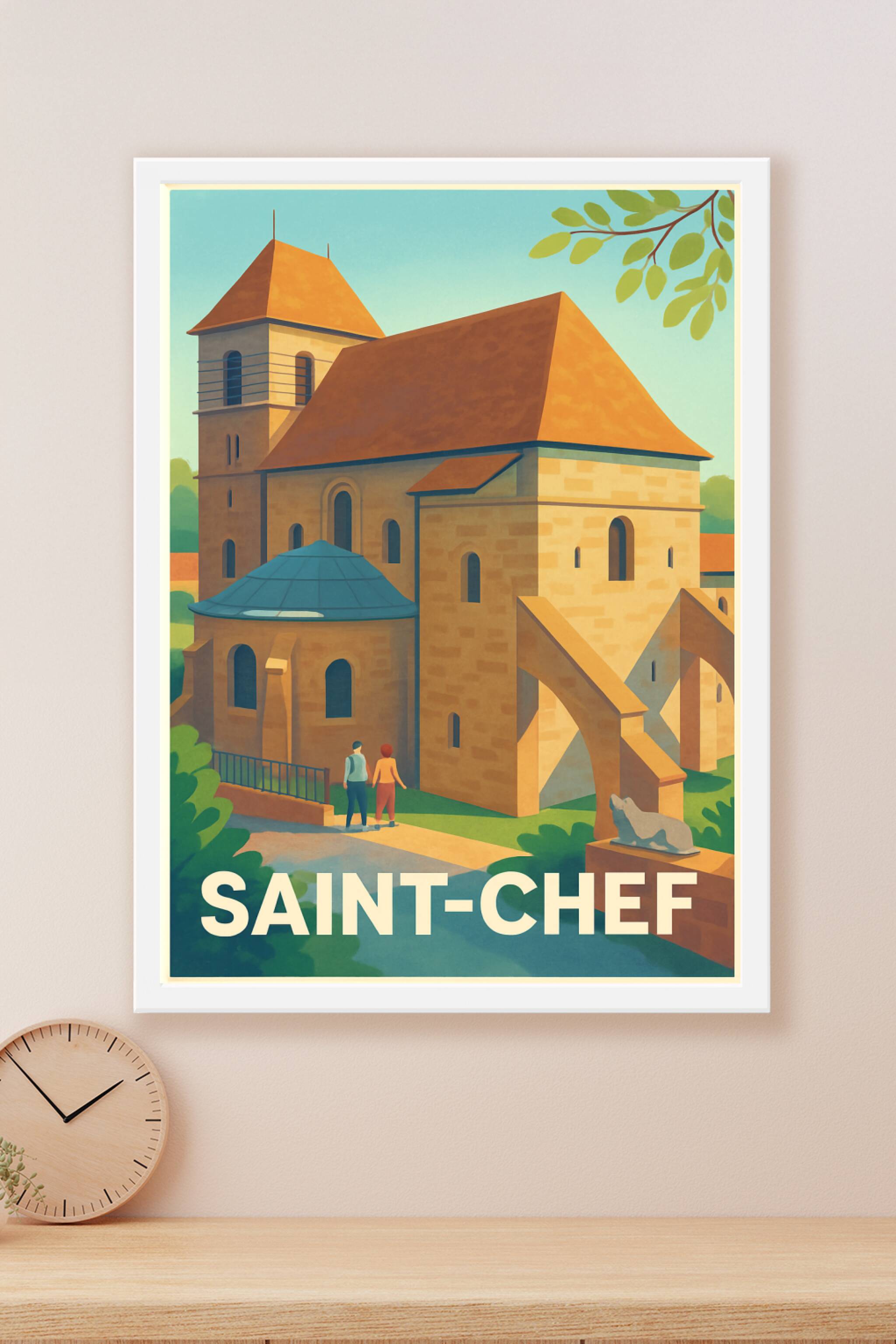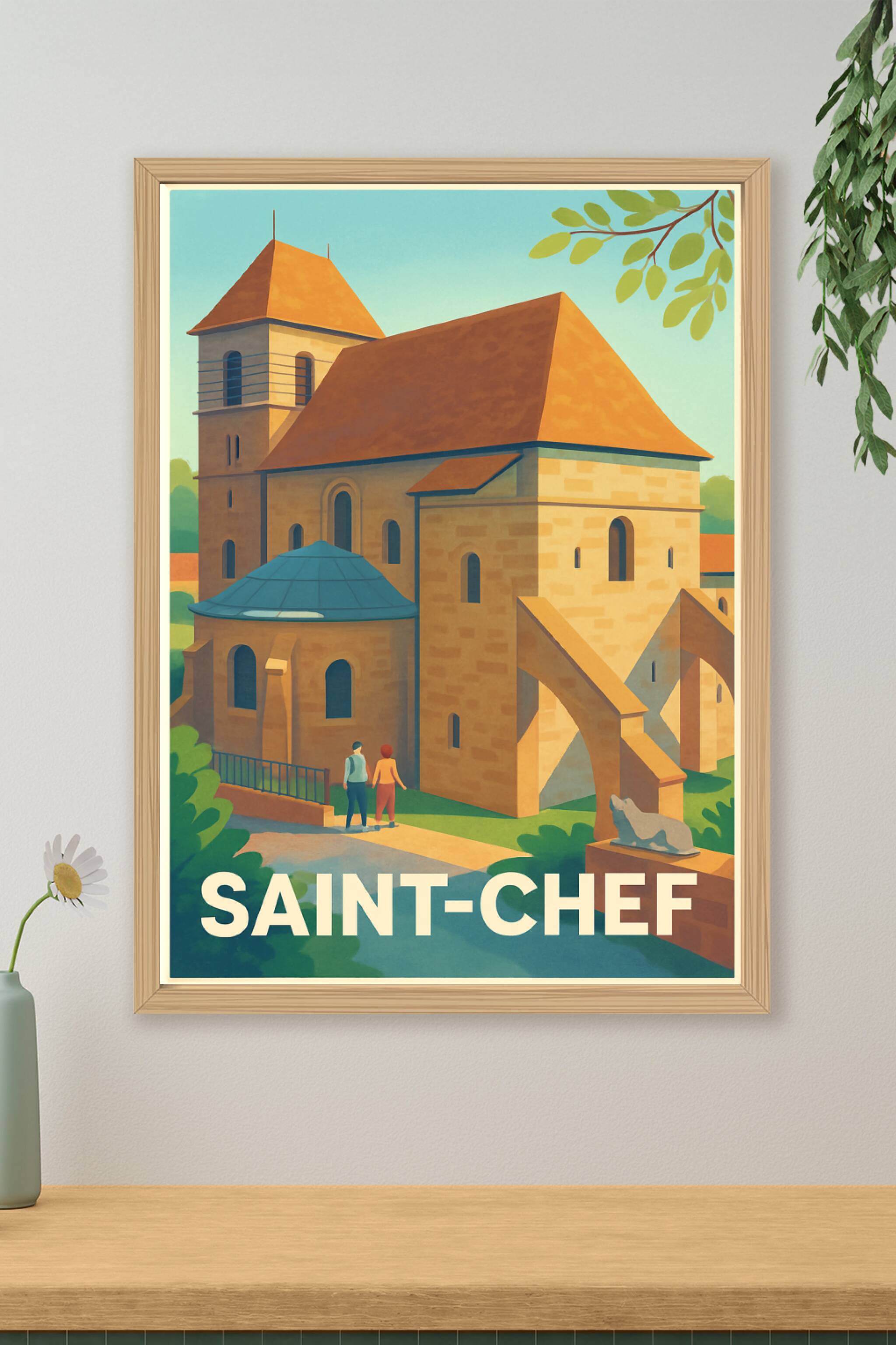 Découvrez la beauté intemporelle de Saint-Chef avec cette affiche qui met en lumière son église au charme historique et à l'architecture remarquabl...