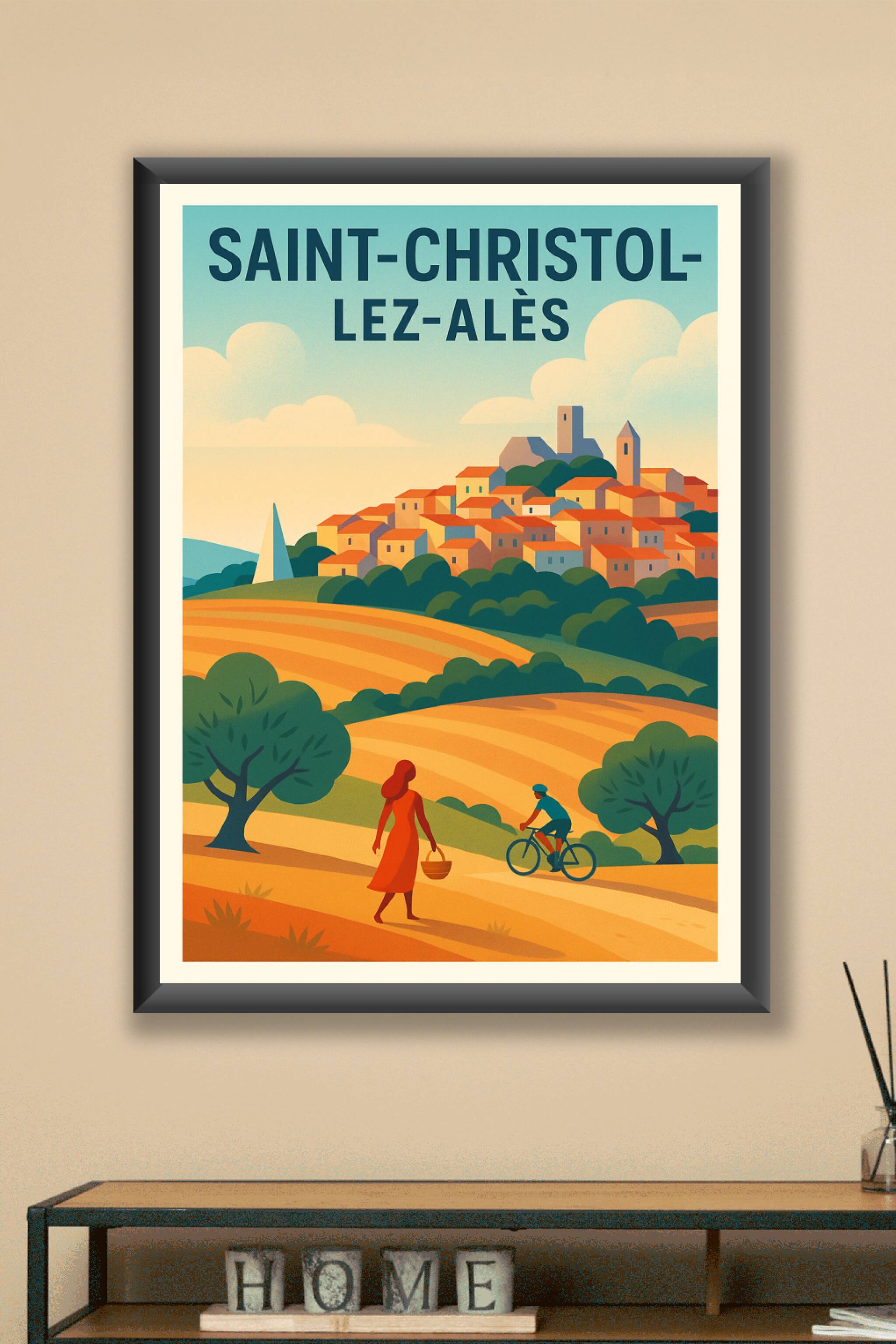Apportez une touche de sérénité et de douceur provençale à votre intérieur avec cette affiche représentant le charmant village de Saint-Christol-le...