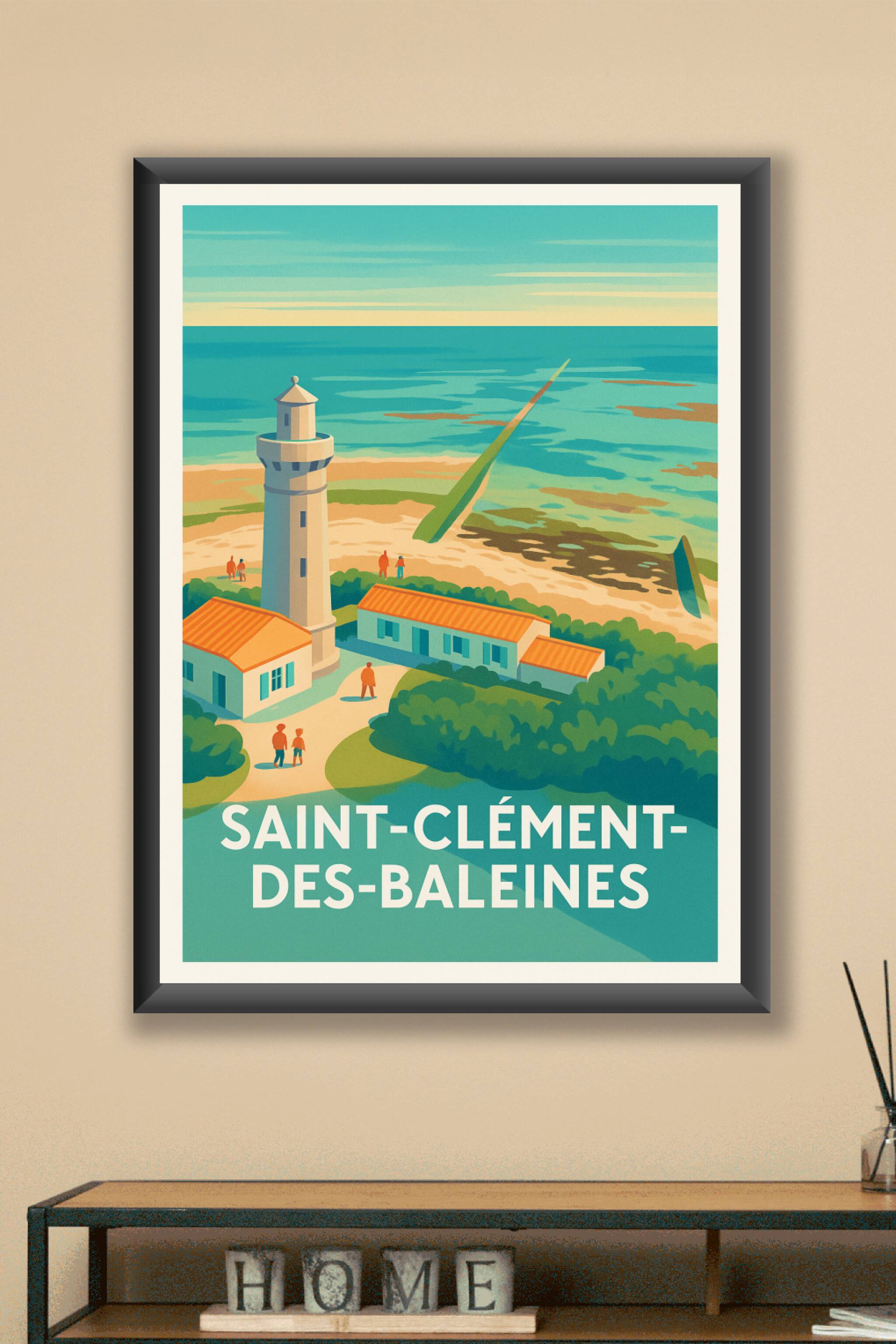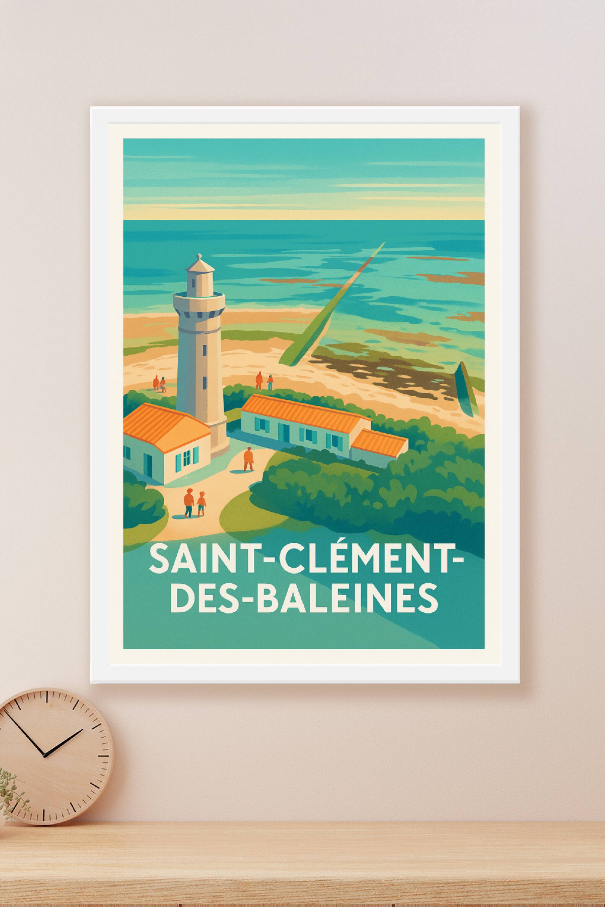 Découvrez la beauté pittoresque de Saint-Clément-des-Baleines avec cette affiche vintage qui met en lumière le célèbre phare bordant une mer turquo...