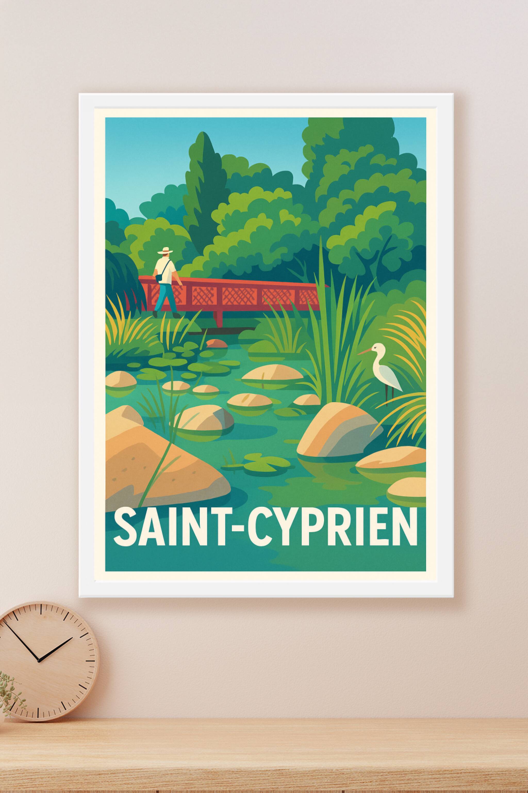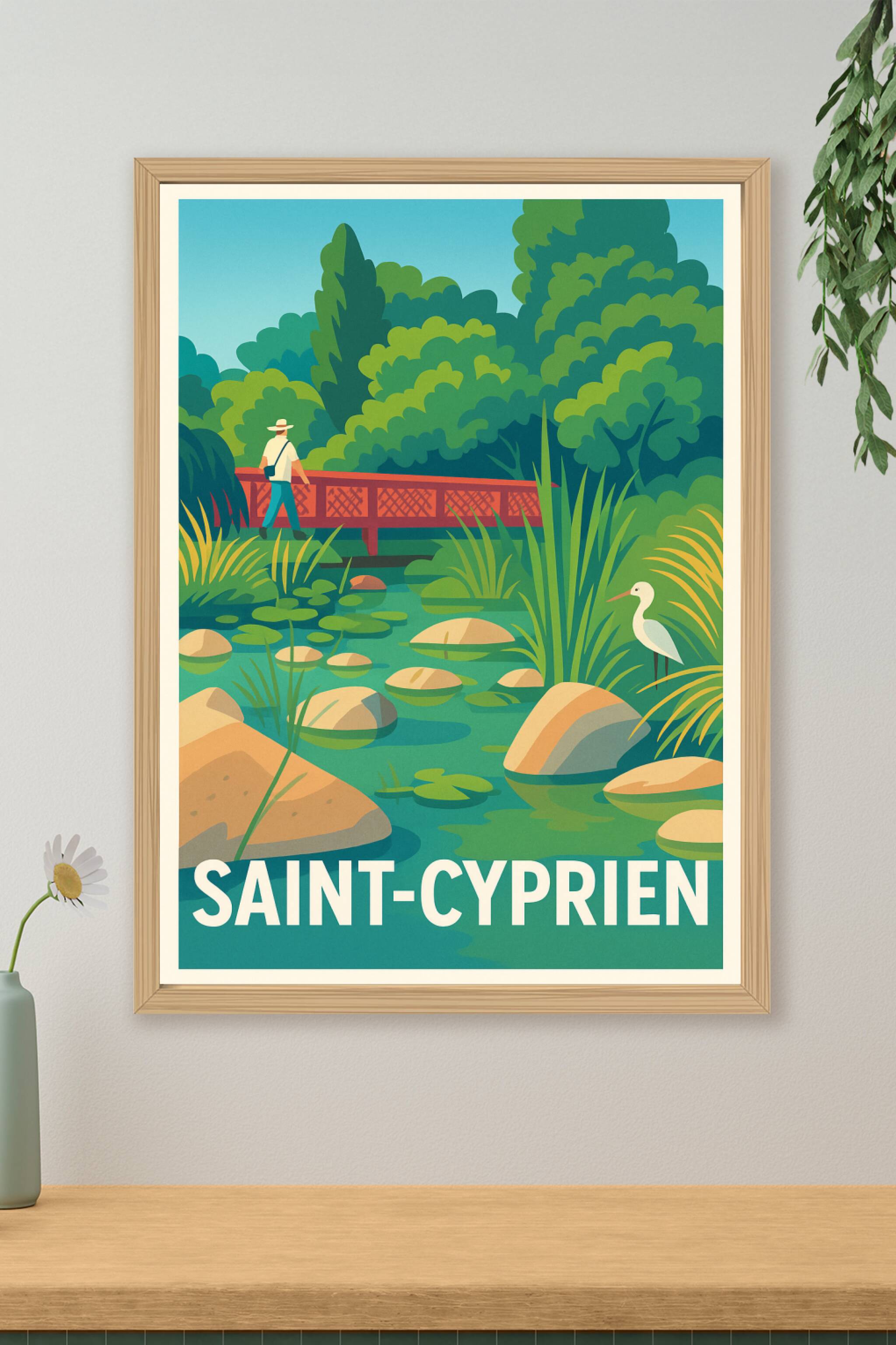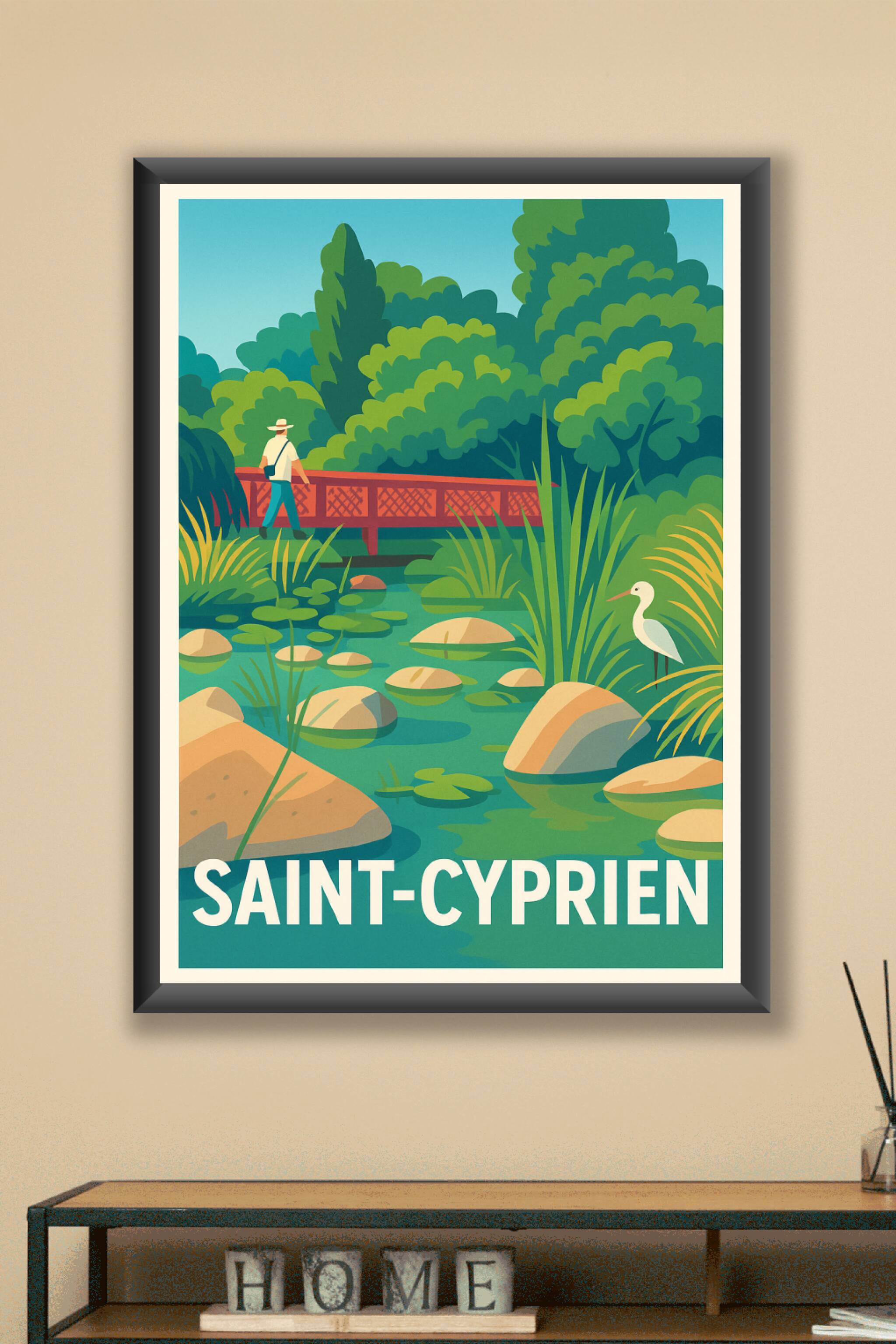 Offrez-vous une escapade visuelle avec cette affiche inspirée par la nature luxuriante de Saint-Cyprien. Ce poster illustre un paysage apaisant où ...