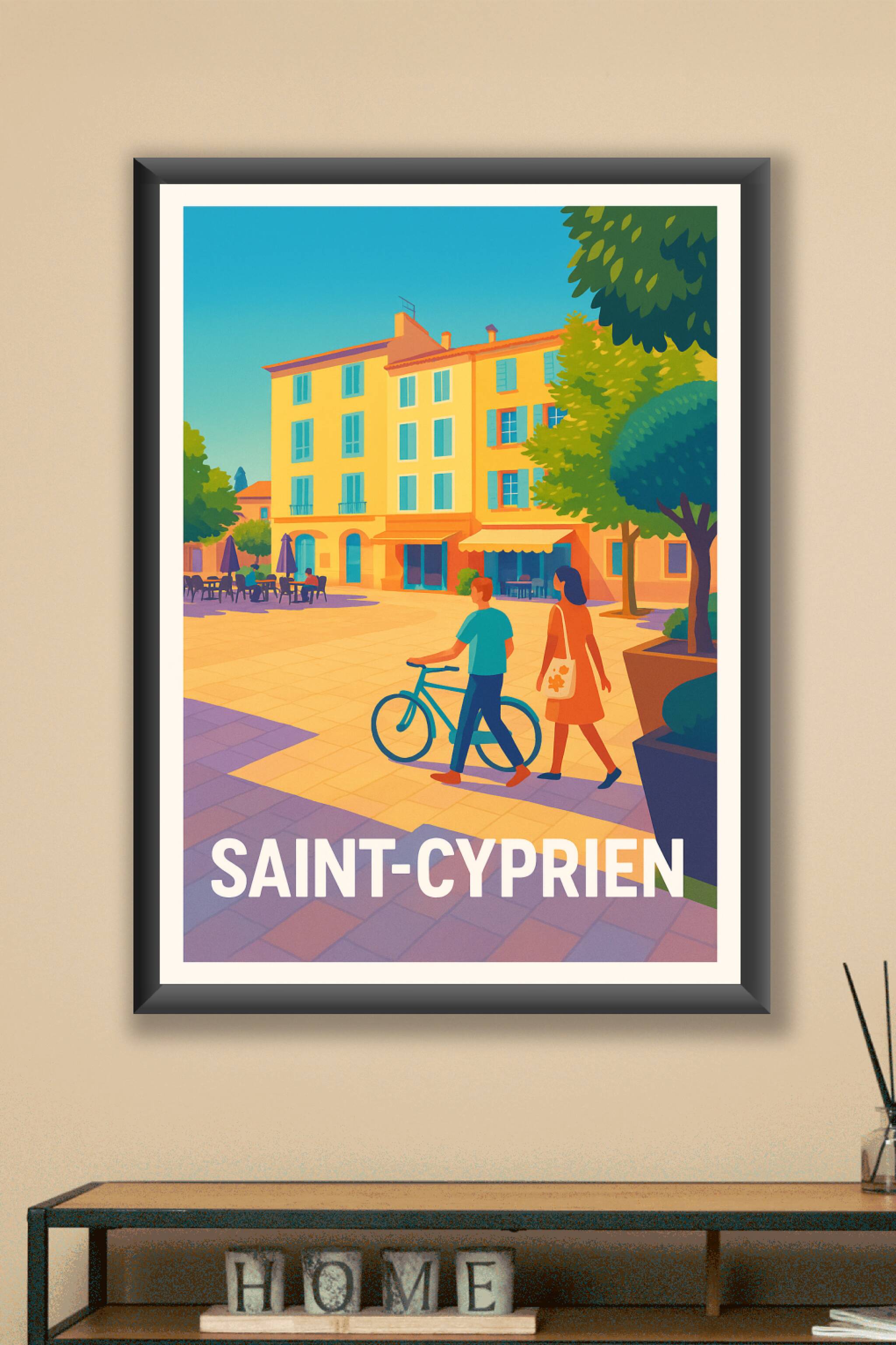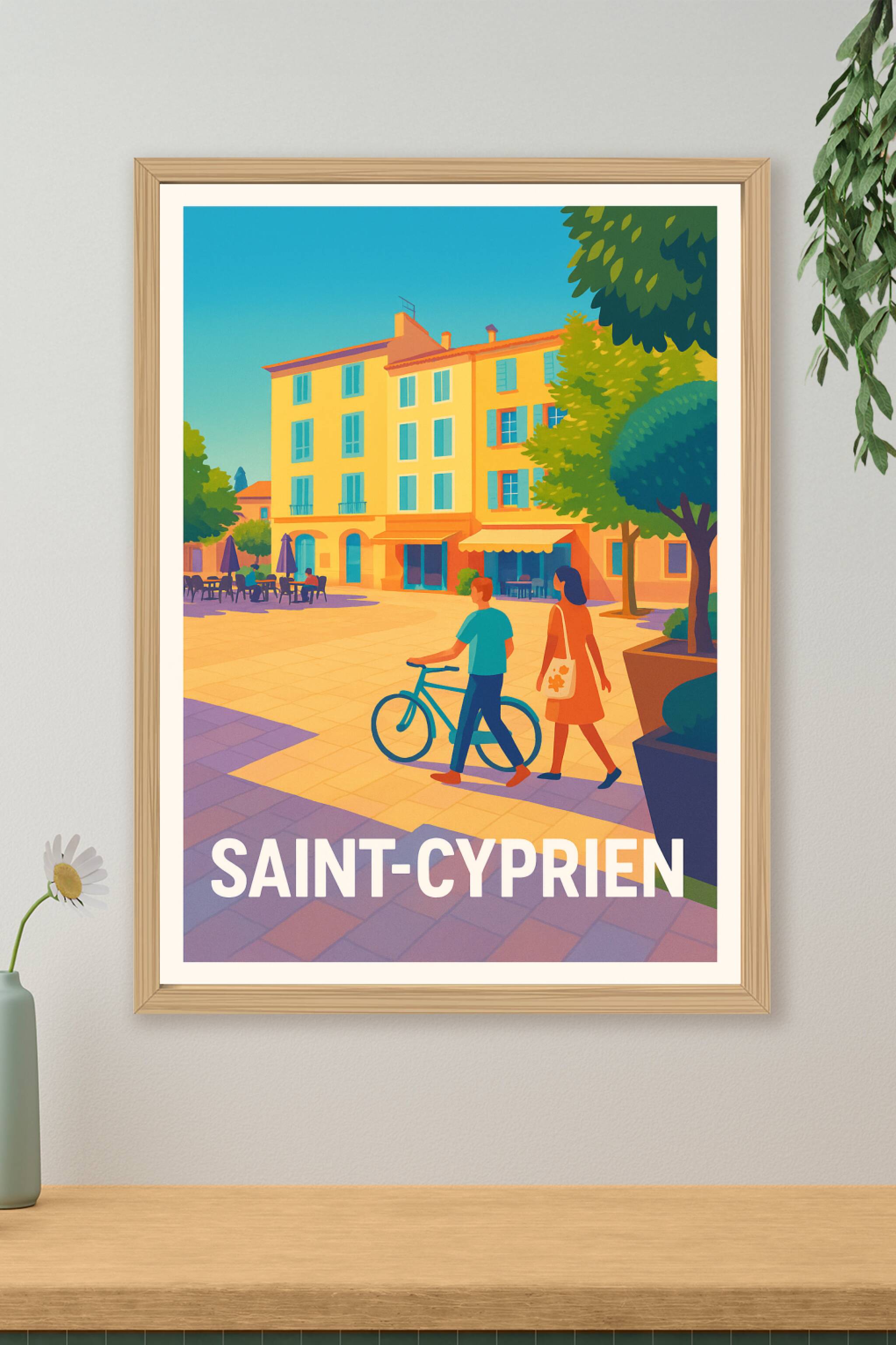 Découvrez la douceur de vivre à Saint-Cyprien avec cette affiche illustrant une scène paisible sous un ciel azur. Ce poster captures l'essence des ruelles ensoleillées et des façades colorées typiques de ce charmant village.L'impression en tirage "Fine Art" sur papier 305g coton garantit une qualité d'image exceptionnelle et des couleurs éclatantes. Disponible en plusieurs formats allant de A1 à A4, avec ou sans cadre, cette affiche s'adapte parfaitement à votre décoration intérieure. Emportez un morceau de Saint-Cyprien chez vous ou offrez cette pièce unique aux amateurs d'art et de paysages méditerranéens.