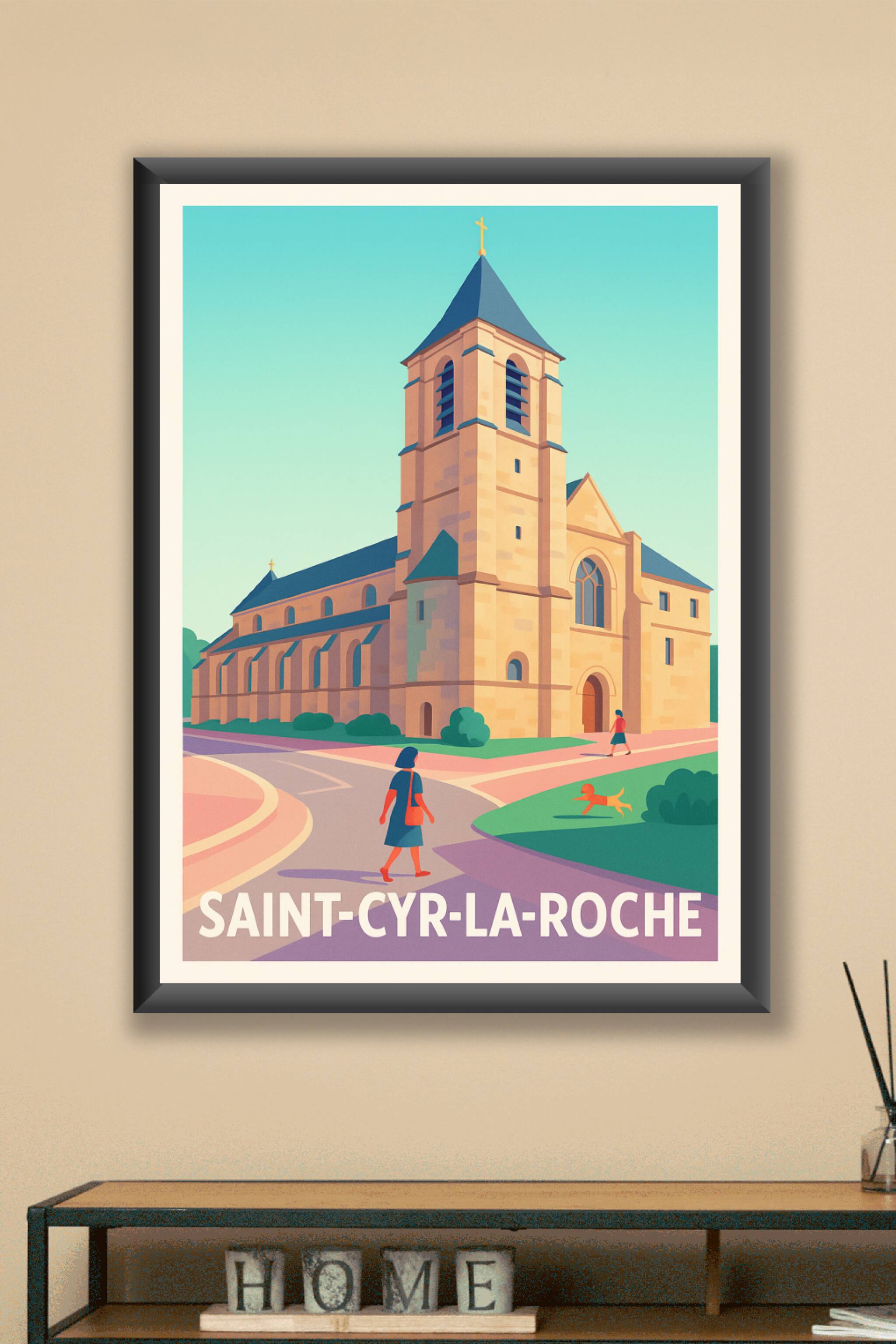Découvrez l'élégance intemporelle de Saint-Cyr-la-Roche à travers cette affiche illustrée mettant en avant son architecture emblématique. Ce poster...