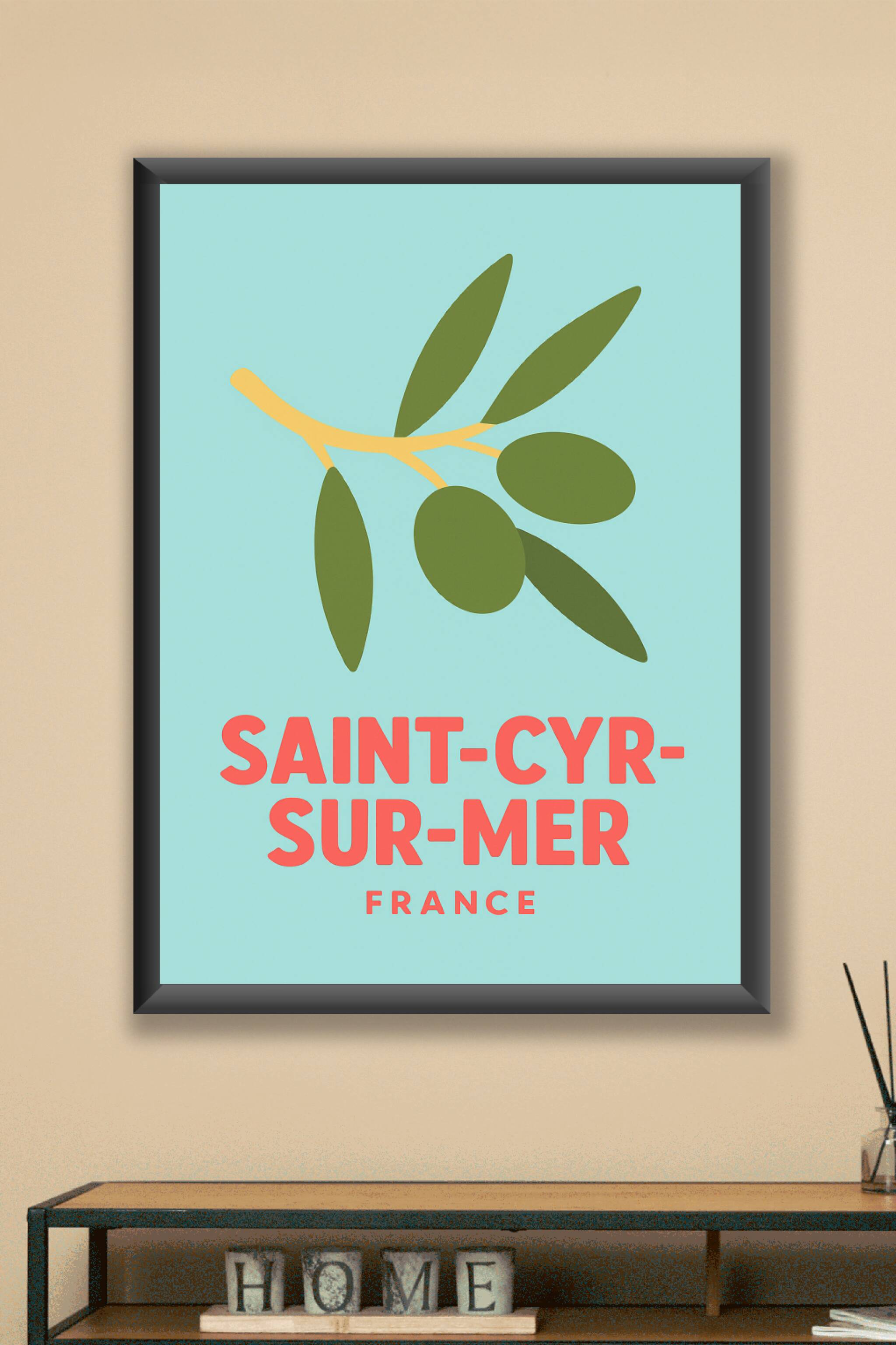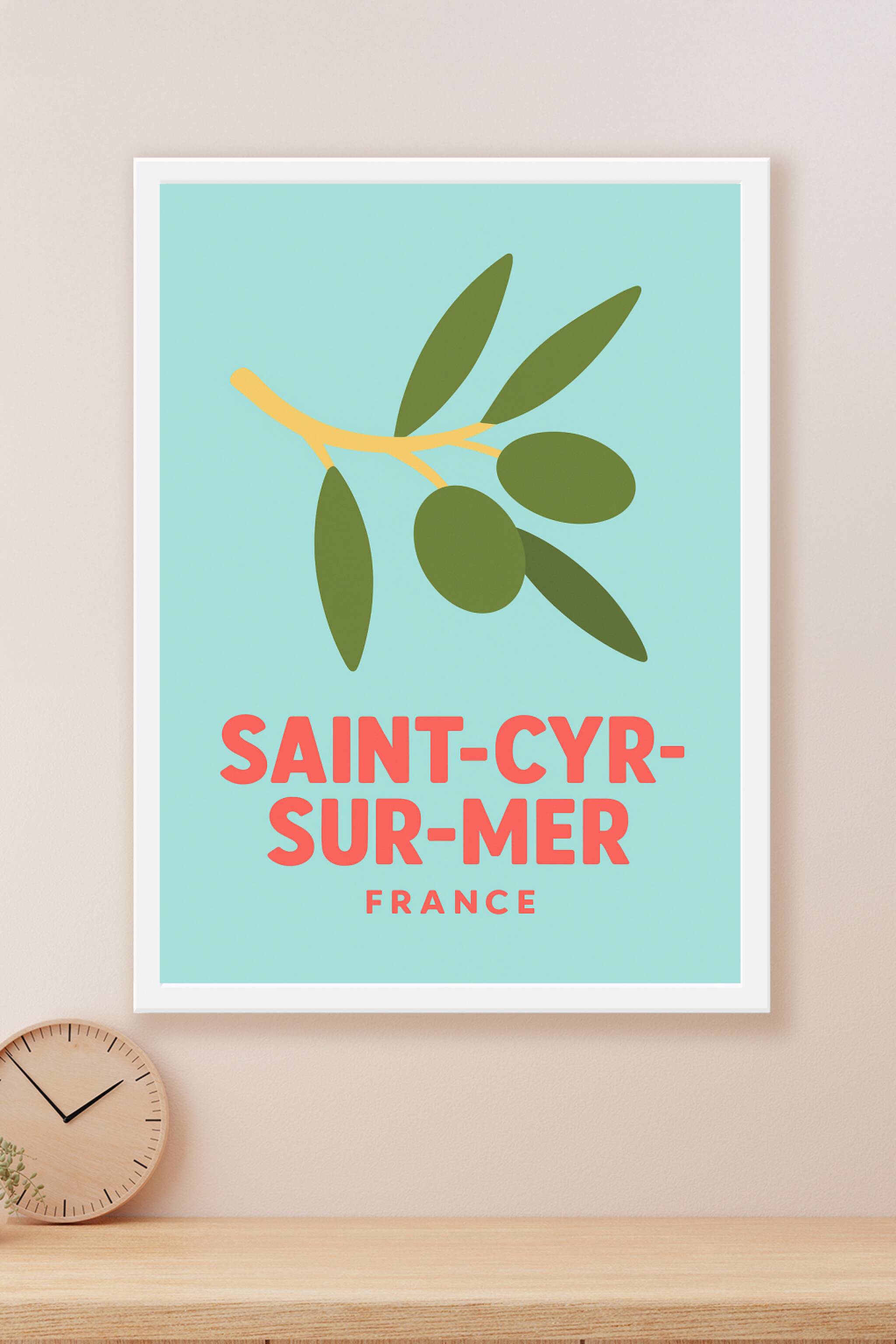 Découvrez l'essence de la Provence avec ce poster moderne et épuré représentant une branche d'olivier, symbole fort de la région de Saint-Cyr-sur-M...