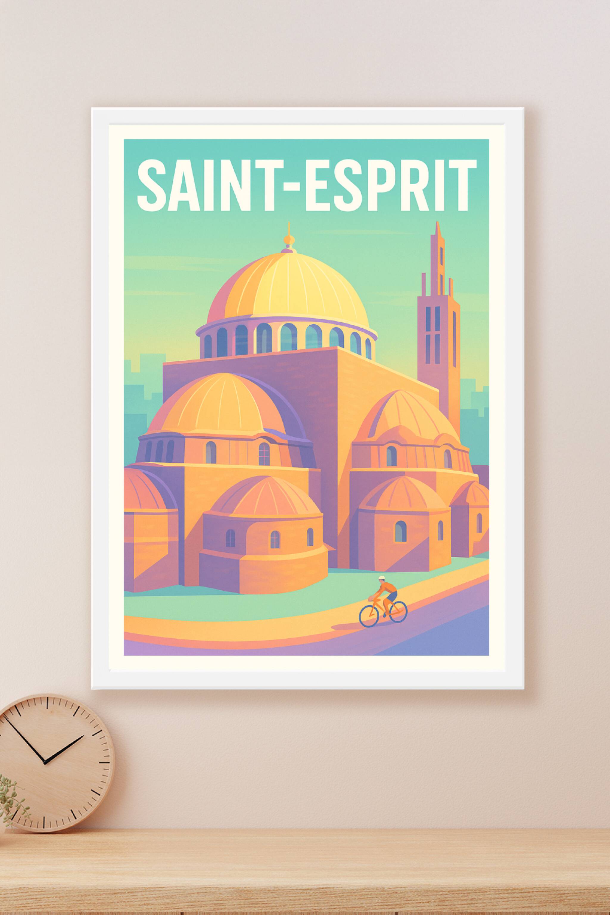 Découvrez l'élégance intemporelle de Saint-Esprit avec cette affiche illustrée mettant en avant ses coupoles majestueuses baignées par une lumière ...