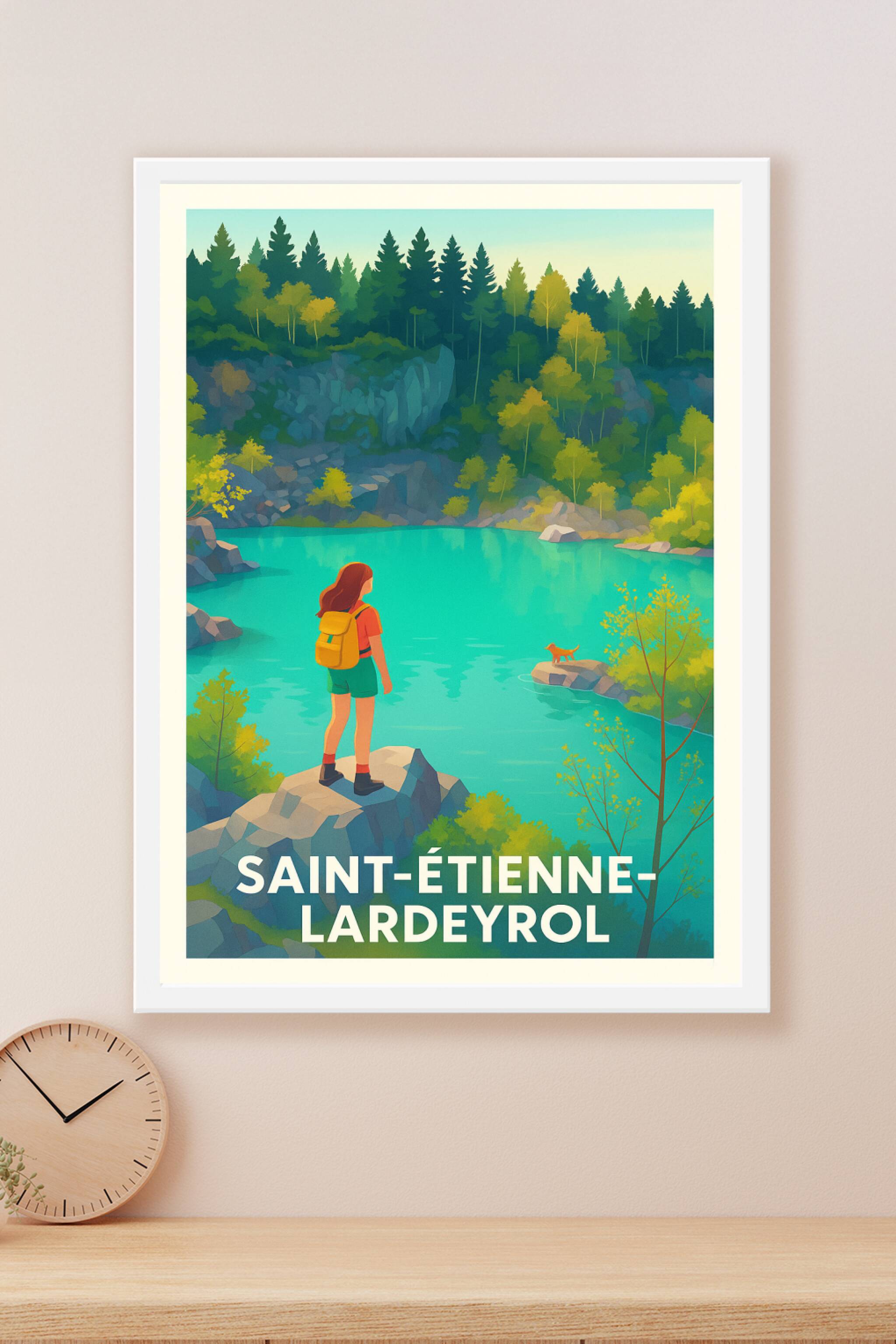 Découvrez la sérénité et la beauté sauvage de Saint-Étienne-Lardeyrol avec cette affiche illustrée représentant un paysage naturel paisible et colo...