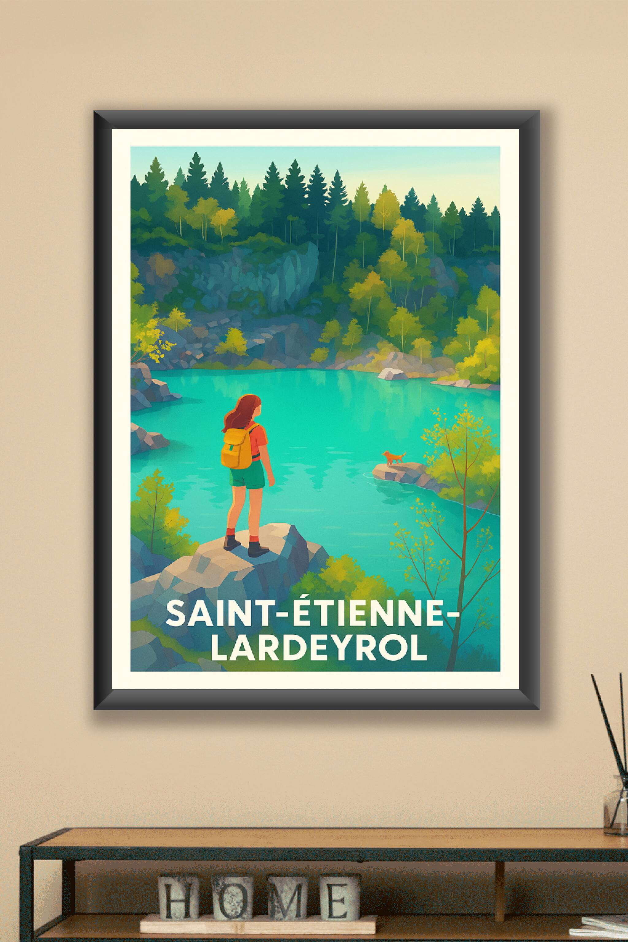 Découvrez la sérénité et la beauté sauvage de Saint-Étienne-Lardeyrol avec cette affiche illustrée représentant un paysage naturel paisible et coloré autour d'un lac turquoise. Parfaite pour les amateurs de nature et de randonnée, cette affiche apporte une touche de fraîcheur et d'aventure à votre décor. Imprimée en tirage "Fine Art" sur papier 305g coton, elle garantit une qualité d'impression supérieure, avec des couleurs vives et un rendu impeccable. Disponible en formats du A1 au A4, avec ou sans cadre, ce poster est l'élément idéal pour sublimer votre intérieur ou offrir un souvenir raffiné de cette région unique.