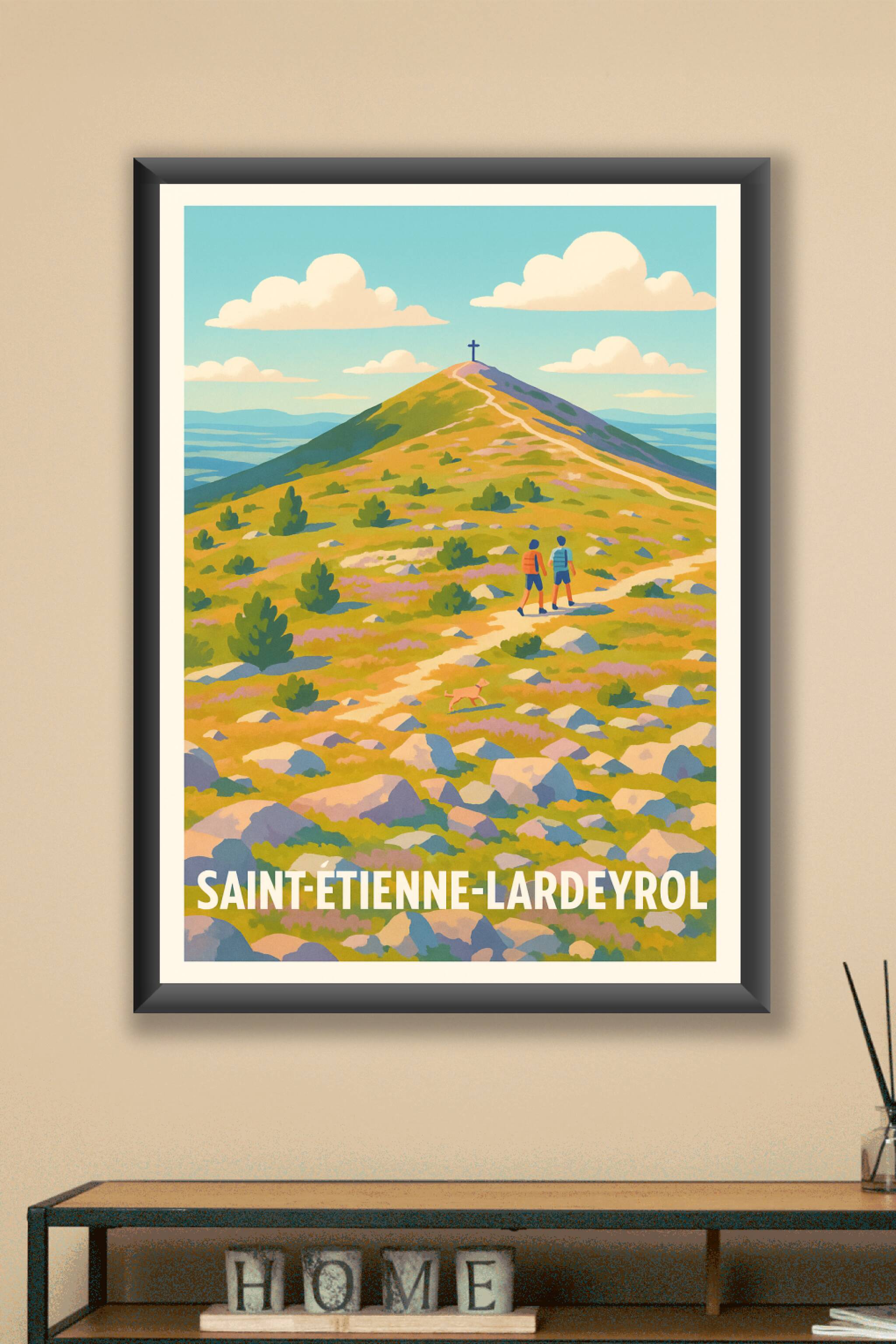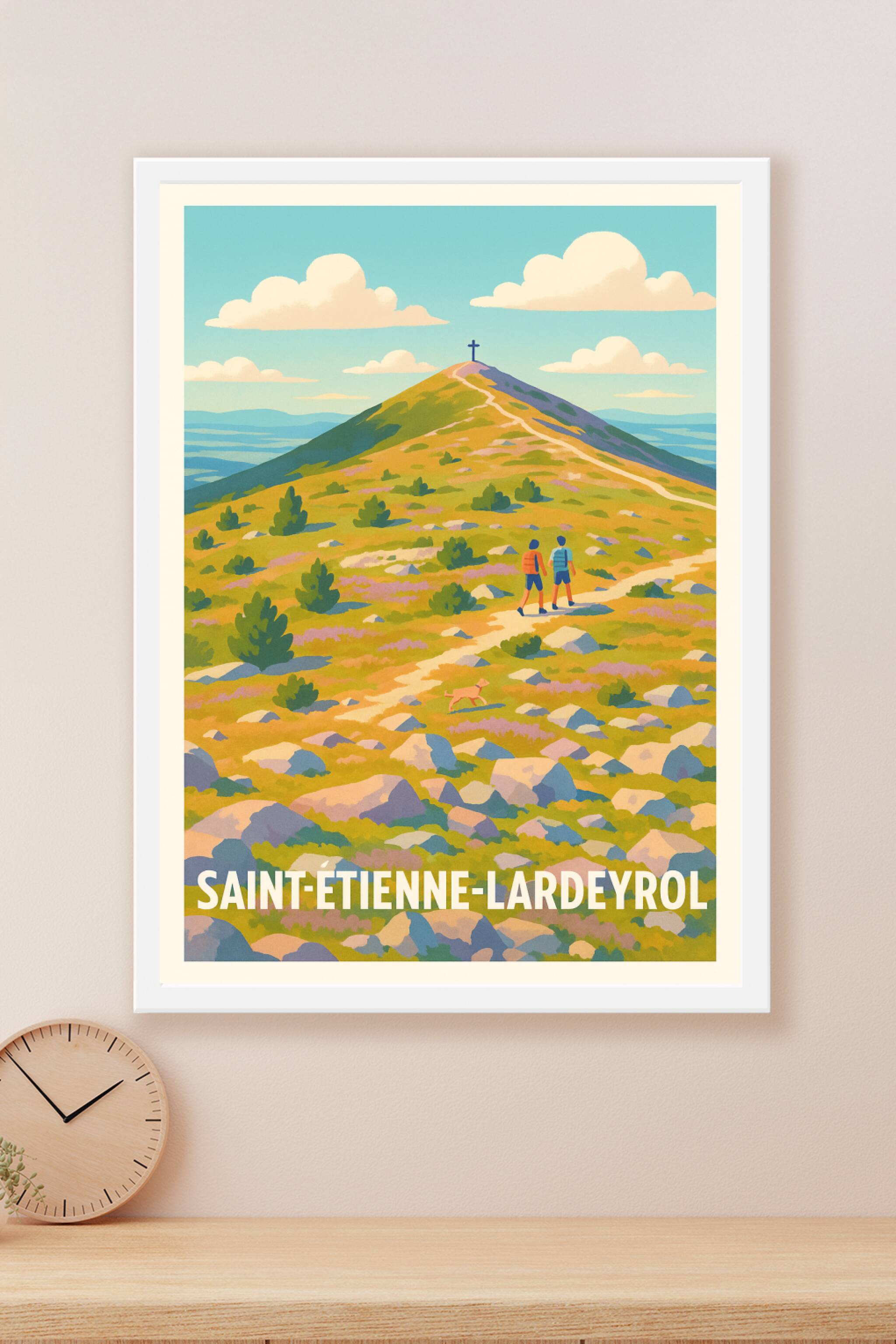 Découvrez la beauté sauvage et paisible des paysages de Saint-Étienne-Lardeyrol avec cette affiche illustrée. Ce poster met en scène une randonnée ...