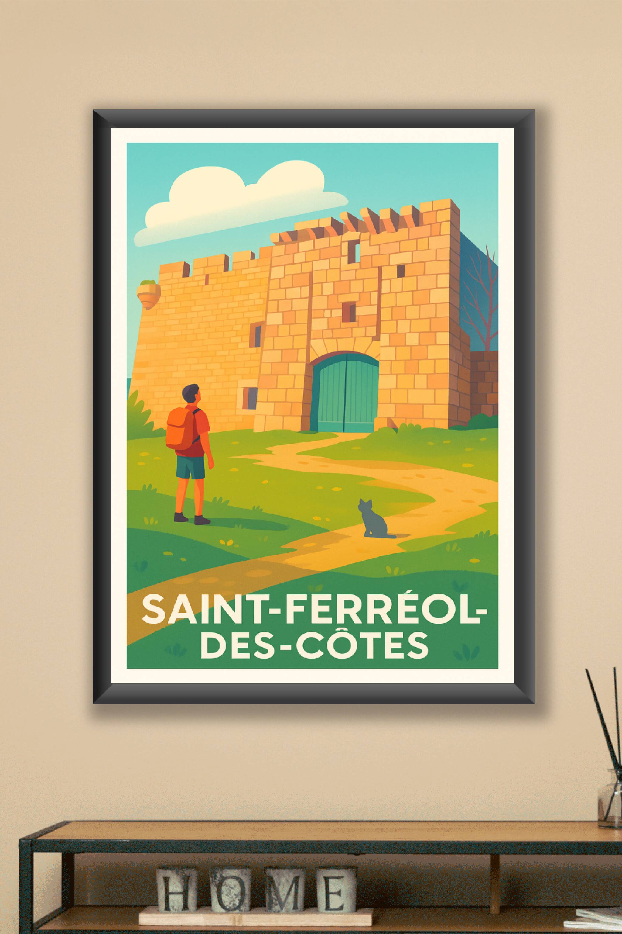 Découvrez le charme historique de Saint-Ferréol-des-Côtes à travers cette affiche illustrée mettant en scène une forteresse imposante baignée par la lumière dorée du jour. Un aventurier et un félin attendrissant ajoutent une touche de vie et d’évasion à cette scène bucolique.Ce poster est imprimé en tirage "Fine Art" sur un papier de qualité supérieure 305g coton, assurant une fidélité et une longévité d'impression remarquables. Disponible en plusieurs formats allant de A1 à A4, avec ou sans cadre, cette affiche s’adapte à toutes vos envies décoratives.Tirez profit d’une impression haut de gamme, 100% fabriquée en France, pour apporter une note d’authenticité et de sérénité à votre intérieur ou pour offrir un souvenir unique aux passionnés de patrimoine et d’aventure.