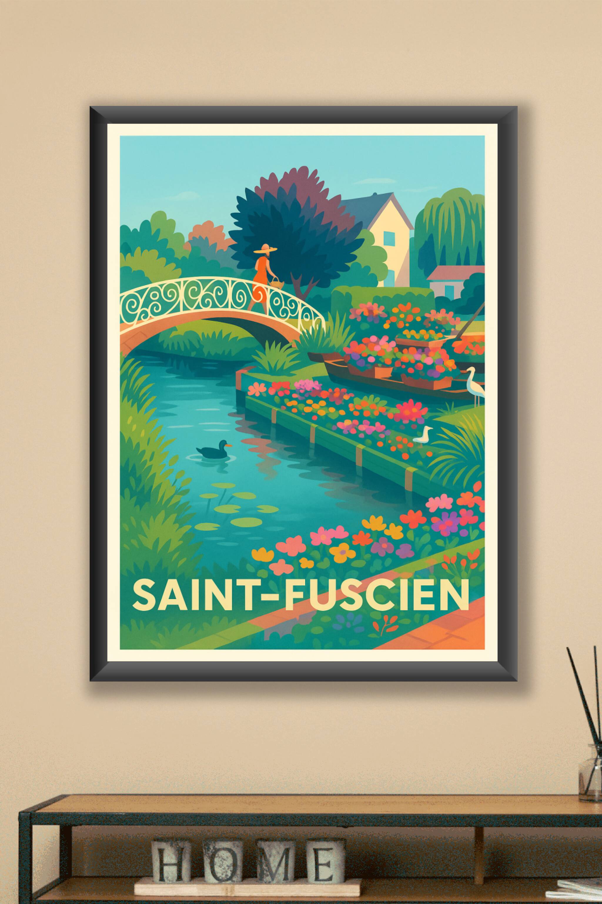 Découvrez la douceur bucolique de Saint-Fuscien avec cette affiche illustrée aux couleurs vibrantes et harmonieuses. Ce poster met en scène un pont élégant surplombant un cours d'eau paisible, entouré d'une profusion de fleurs colorées, évoquant une promenade tranquille dans un jardin fleuri typique de cette charmante ville.Ce poster est imprimé en tirage "Fine Art" sur un papier 305g coton de très haute qualité, garantissant des couleurs éclatantes et une durabilité exceptionnelle. Disponible du format A1 à A4, avec ou sans cadre, cette affiche apportera une touche de sérénité et de poésie à votre décoration intérieure.Fabriquée avec soin en France, cette affiche est le cadeau parfait pour les amoureux des paysages bucoliques et pour ceux qui souhaitent embellir leur intérieur avec une œuvre d'art raffinée.