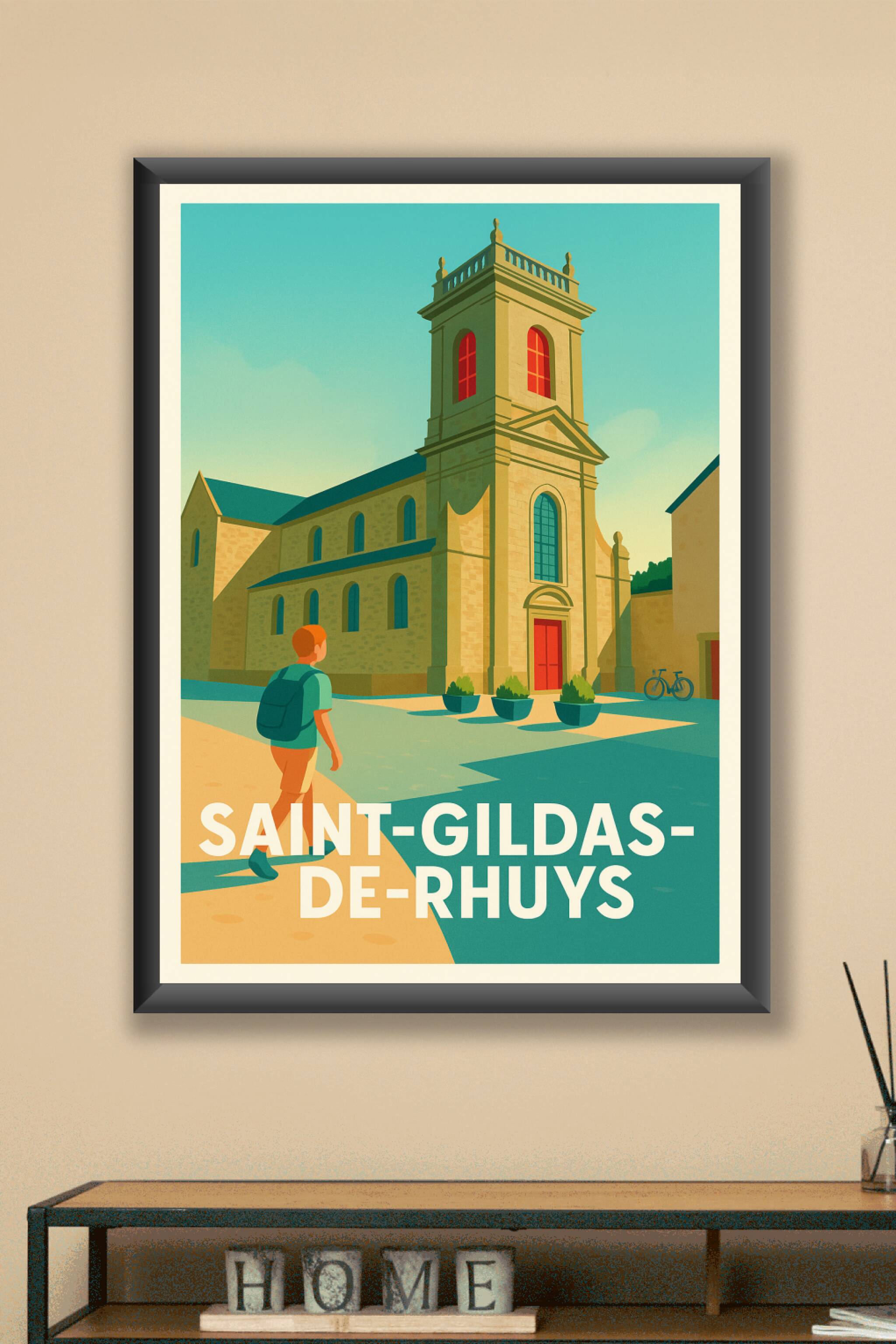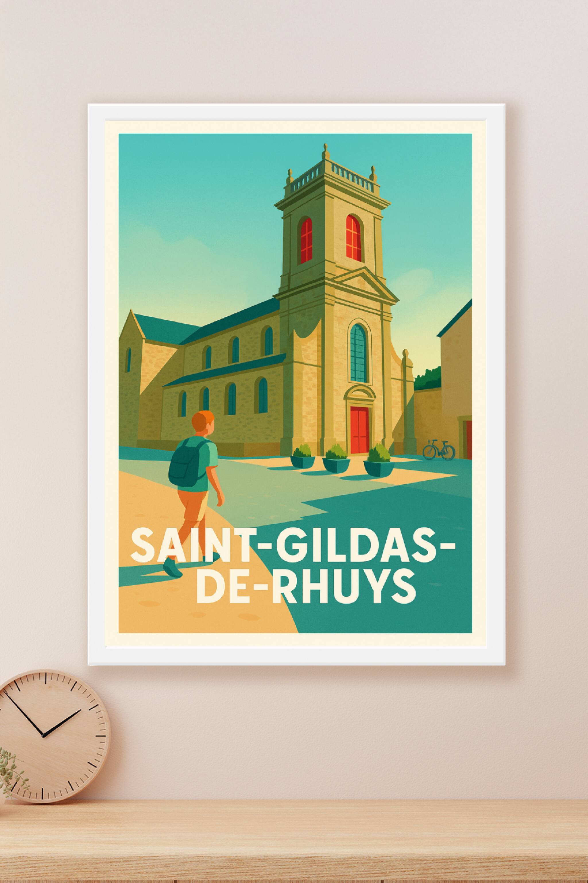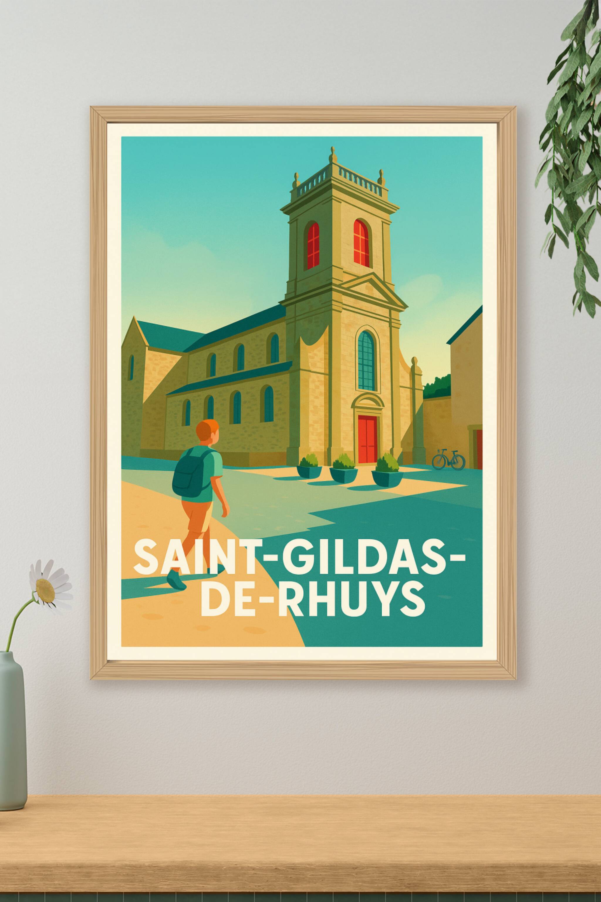 Découvrez l'élégance intemporelle de Saint-Gildas-de-Rhuys à travers cette affiche illustrée qui met en lumière son architecture authentique et son...
