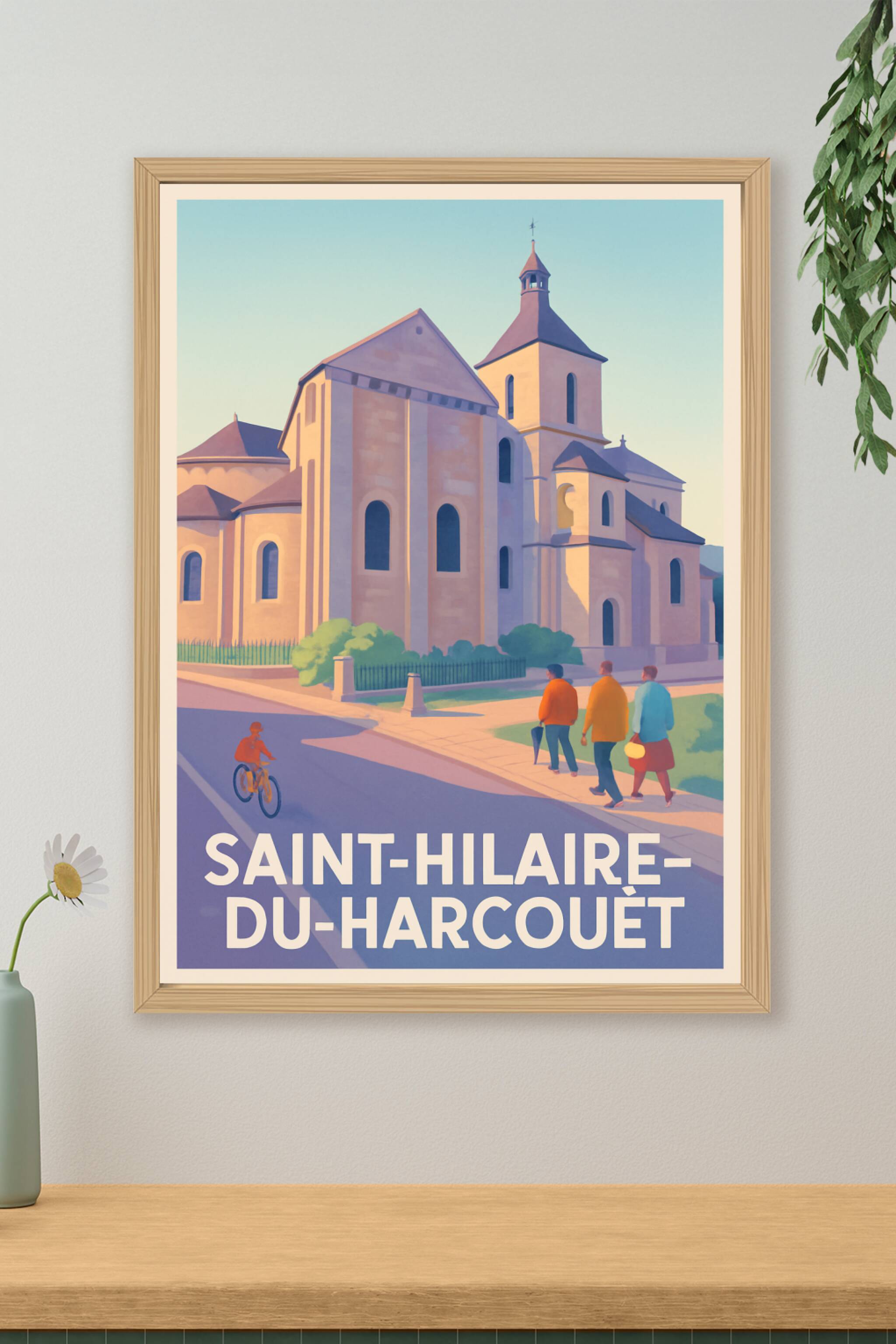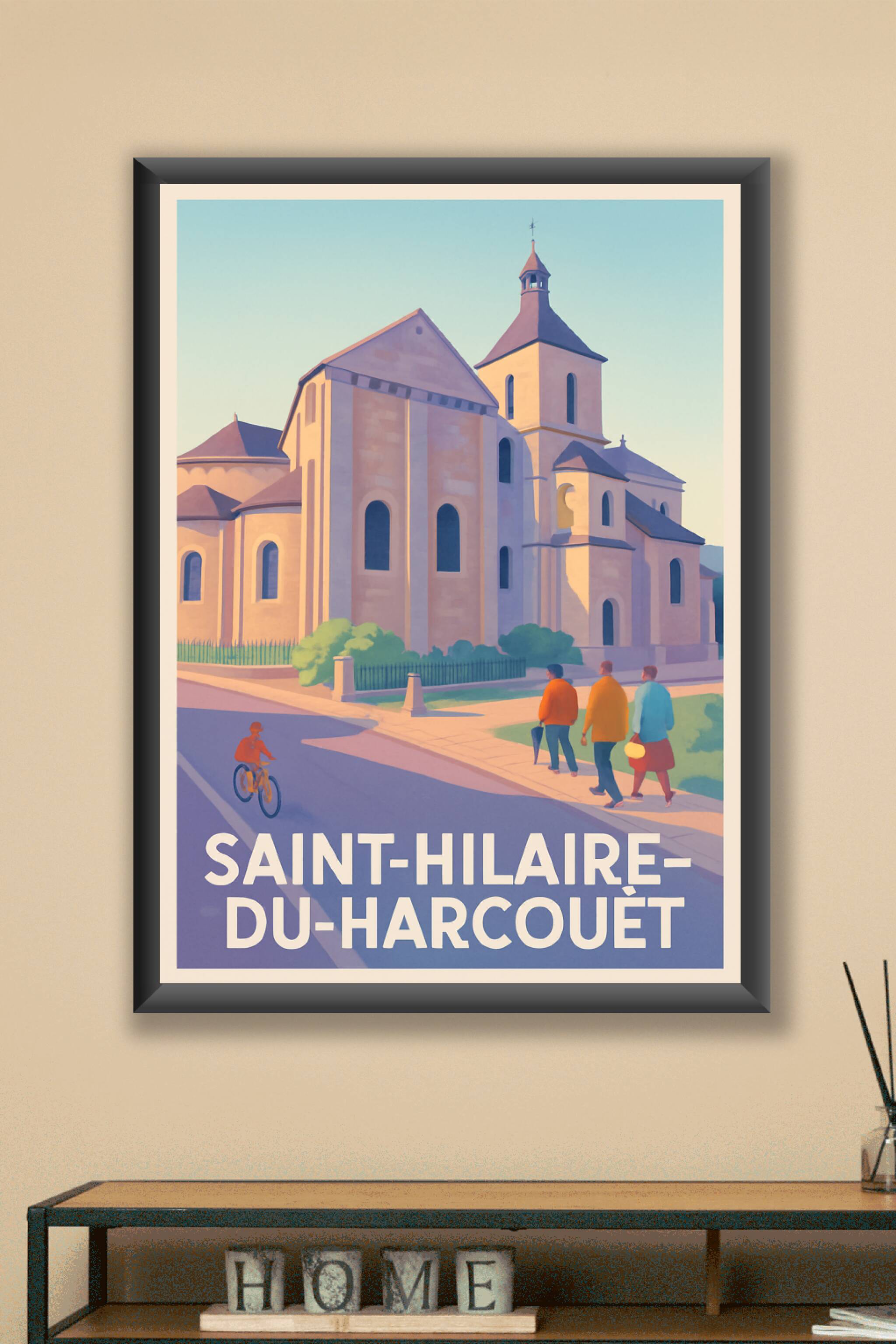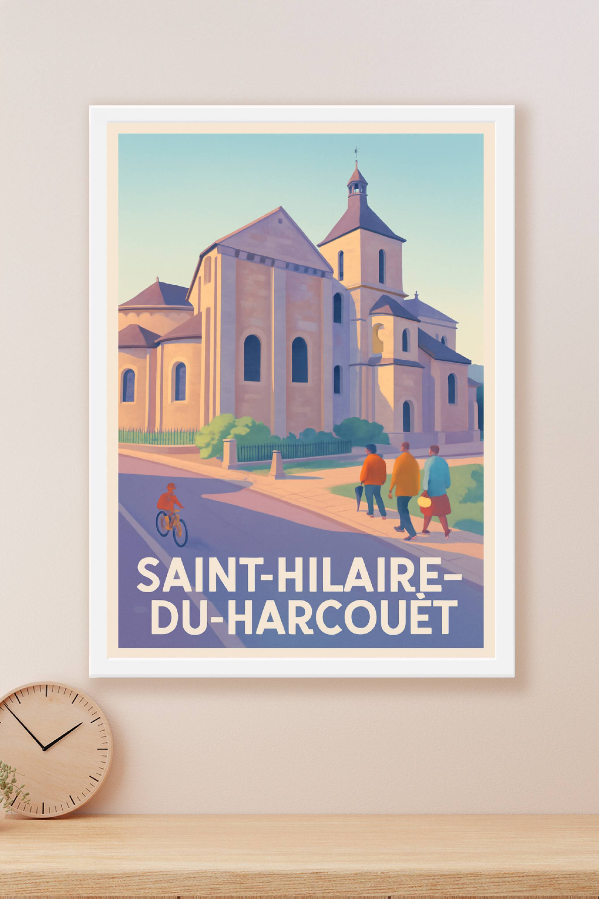 Découvrez l'élégance paisible de Saint-Hilaire-du-Harcouët à travers cette affiche stylisée mettant en scène ses architectures emblématiques baigné...
