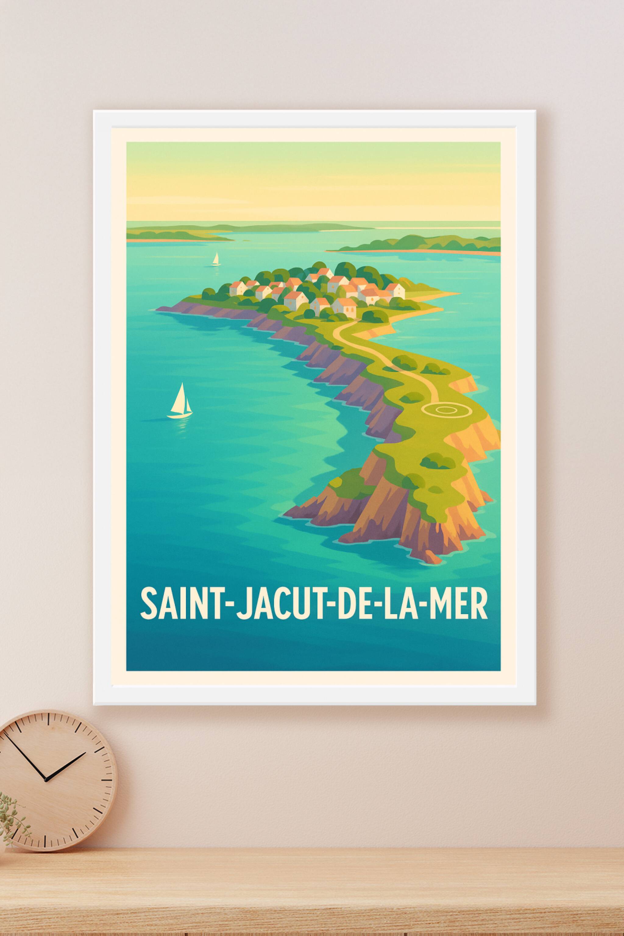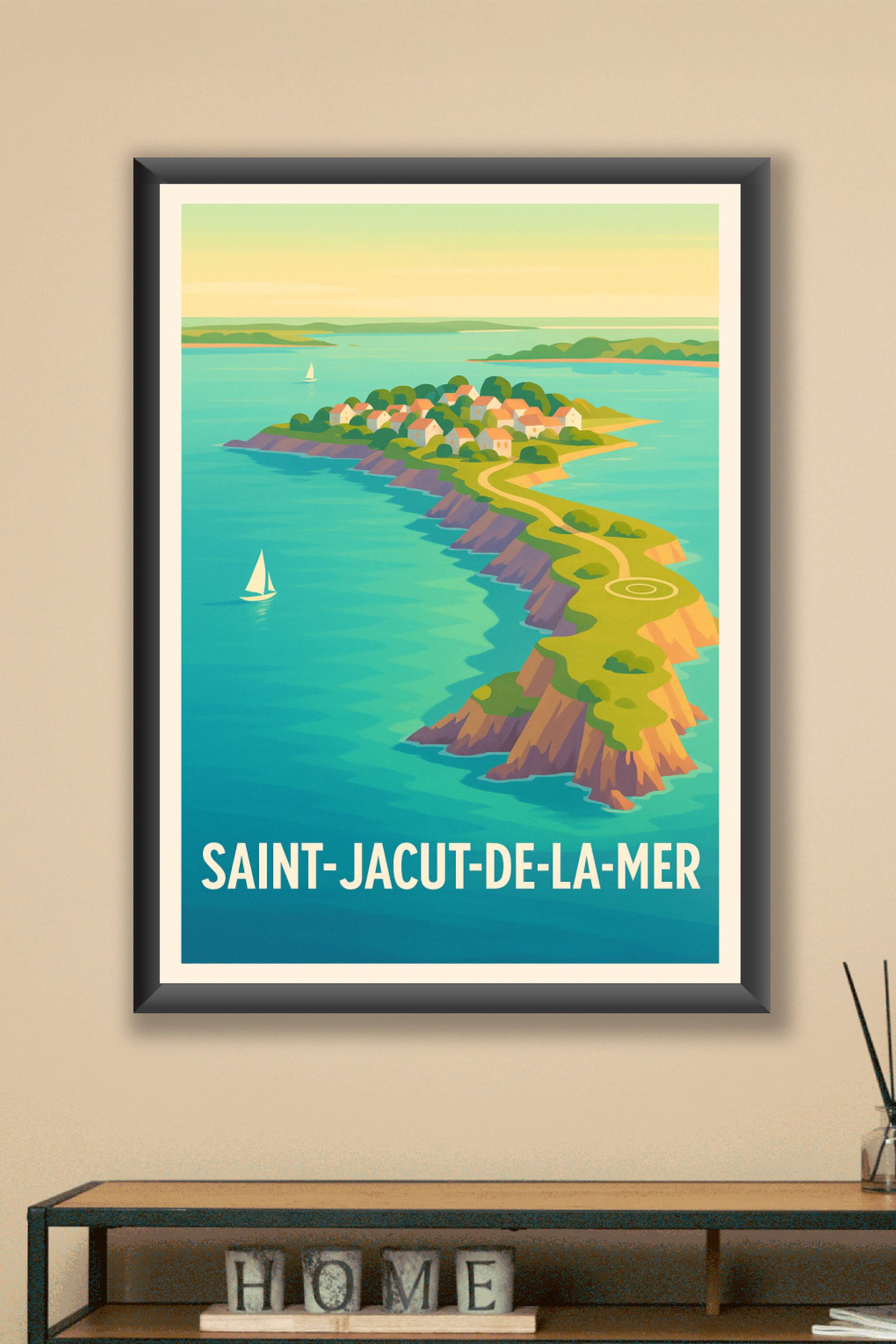 Découvrez le charme unique de Saint-Jacut-de-la-Mer avec cette affiche illustrée qui met en valeur ses falaises escarpées et ses maisons pittoresqu...