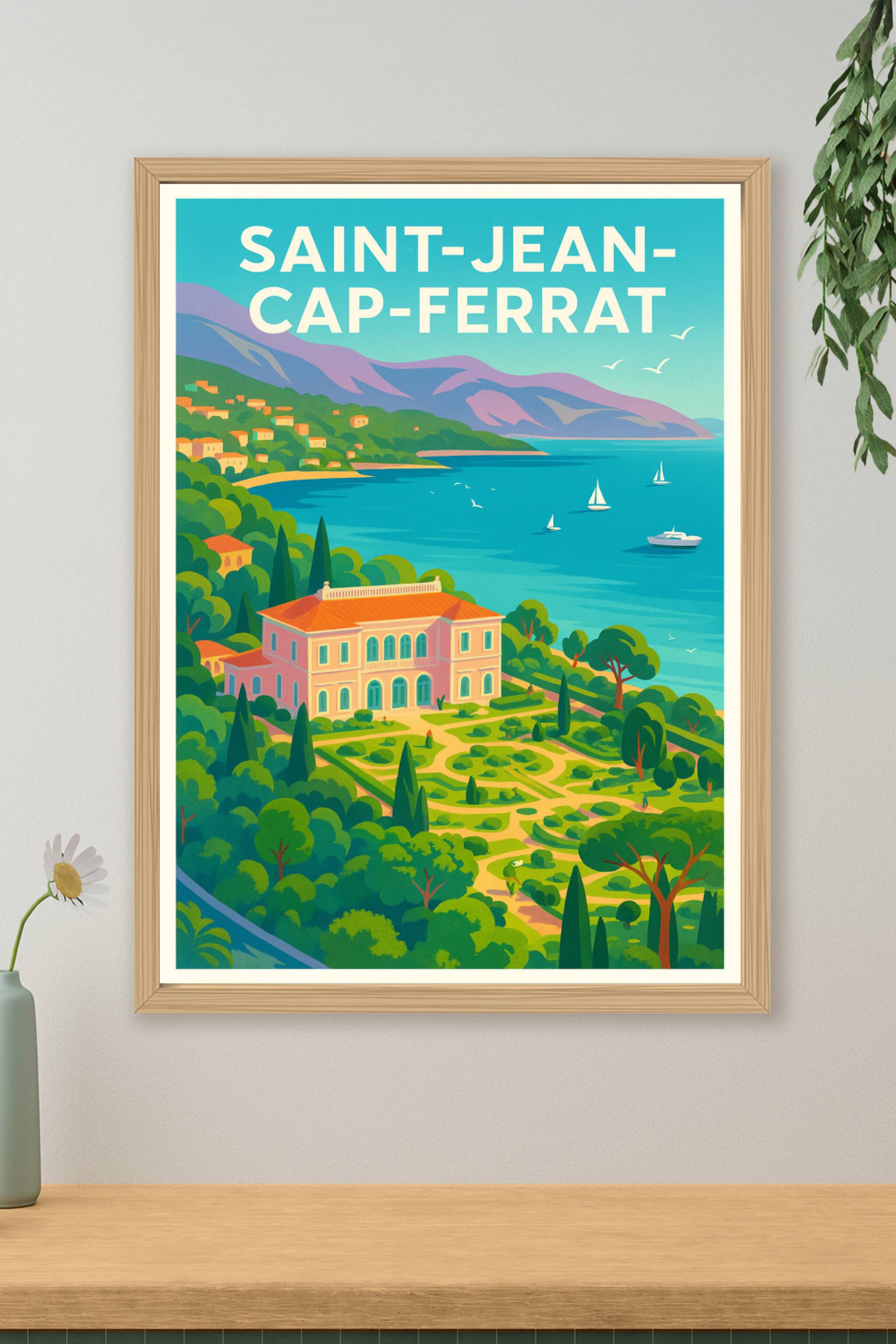 Découvrez la douceur de vivre de Saint-Jean-Cap-Ferrat avec cette affiche vibrante qui capture l'élégance de son littoral et de ses jardins luxuria...