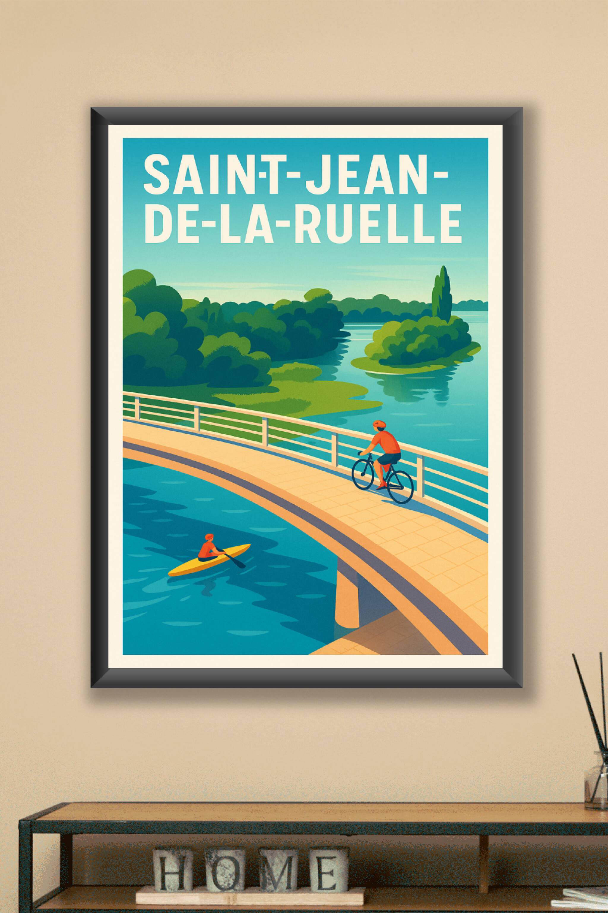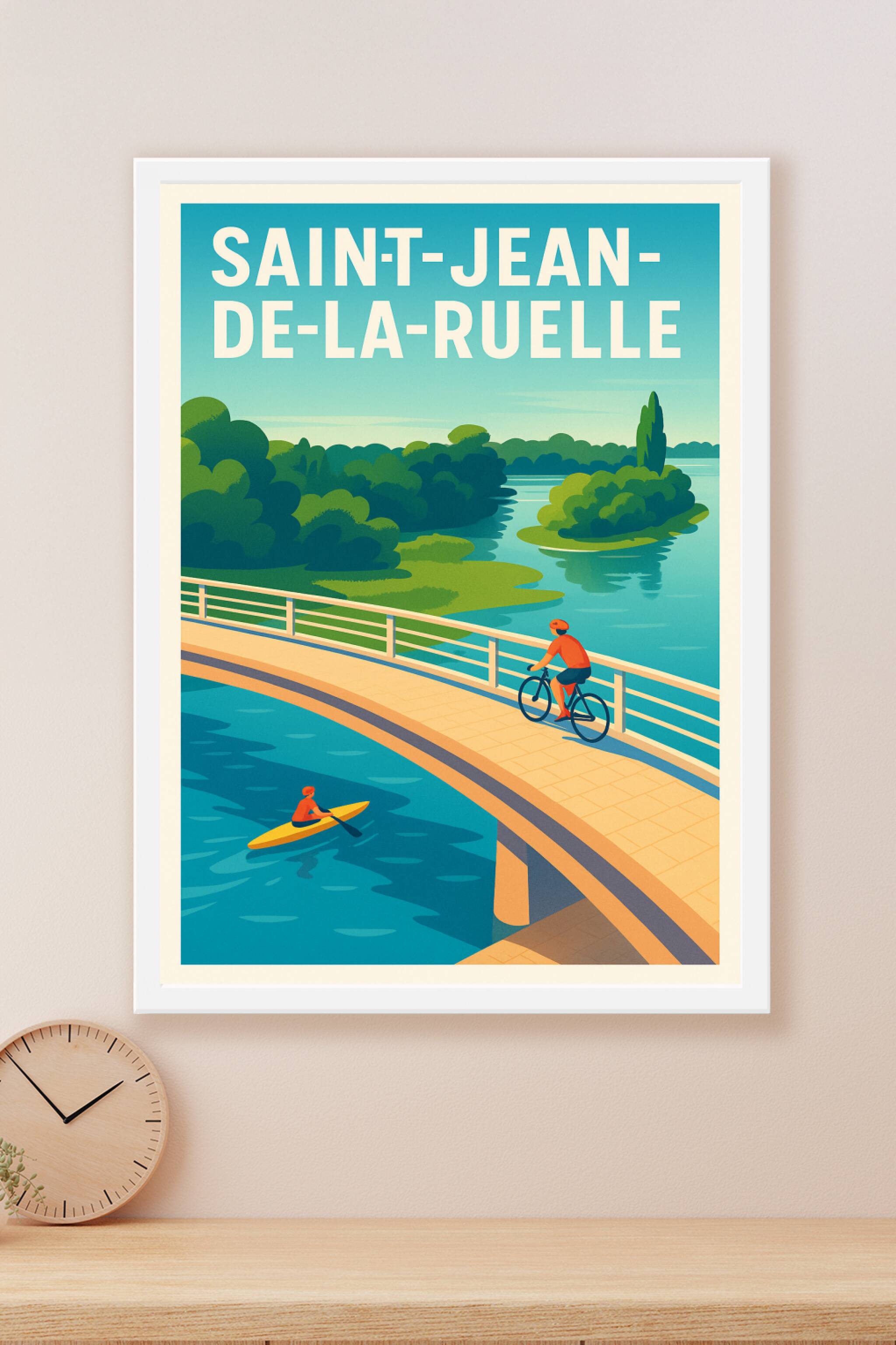Découvrez la sérénité et le plaisir des activités en plein air à Saint-Jean-de-la-Ruelle avec cette affiche illustrée aux couleurs apaisantes et au...