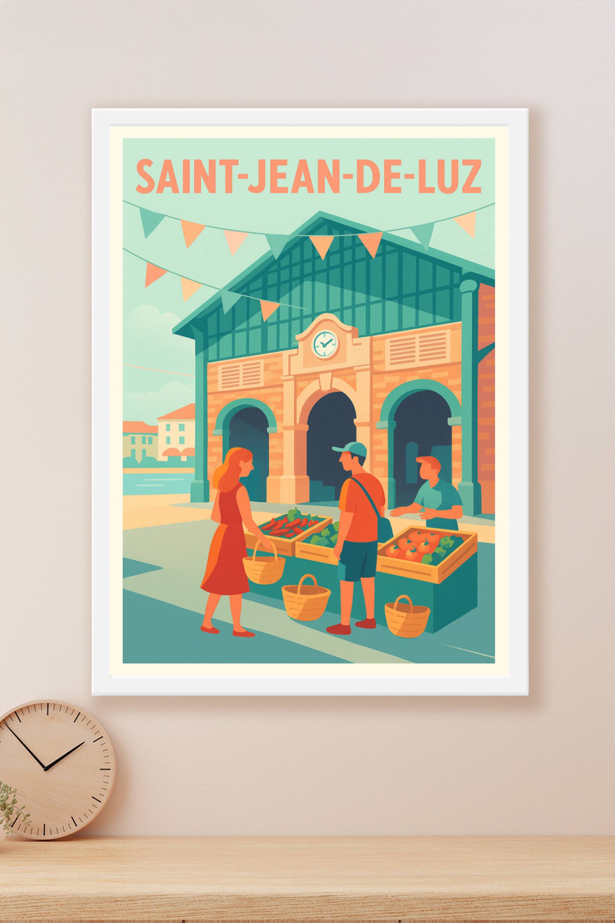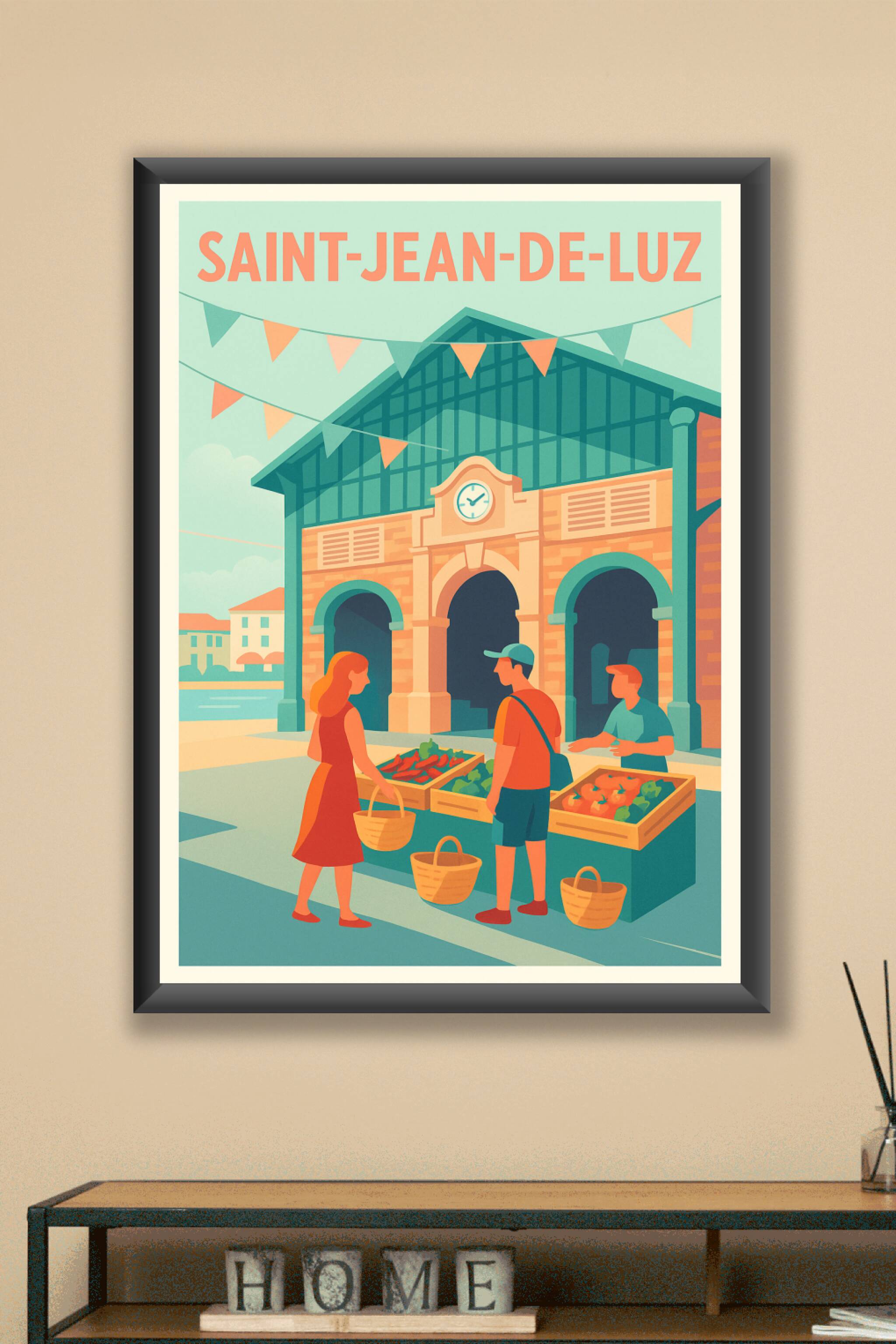 Affiche de Saint-Jean-de-Luz - Charme et authenticité du marché basque