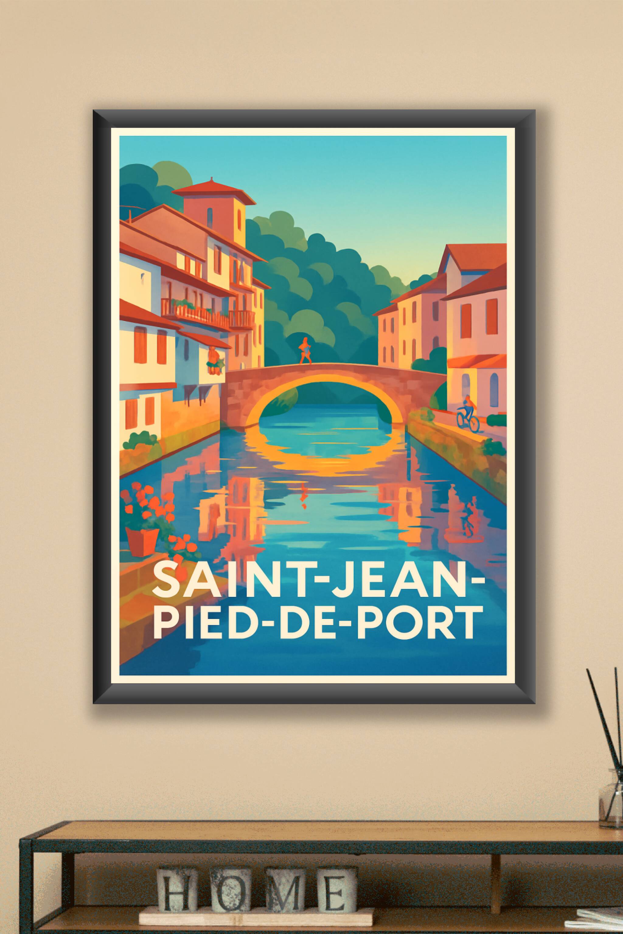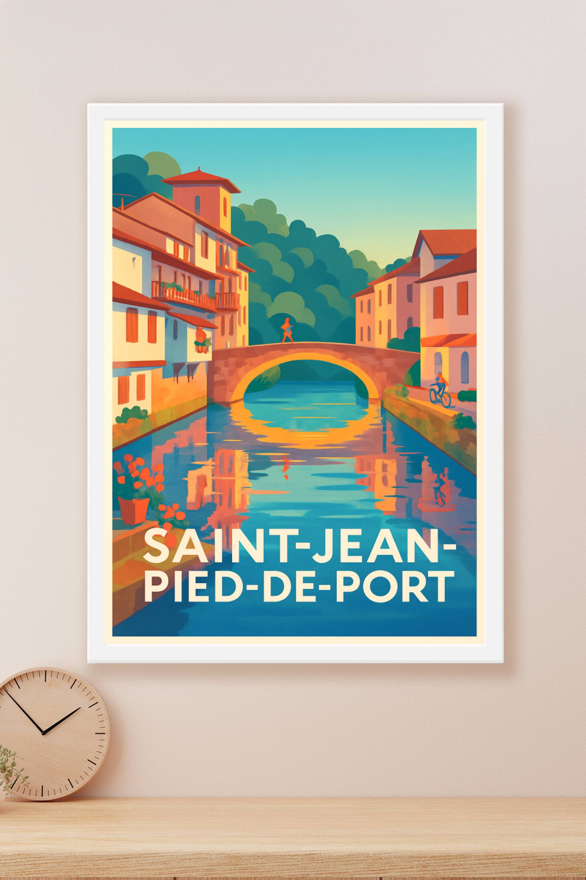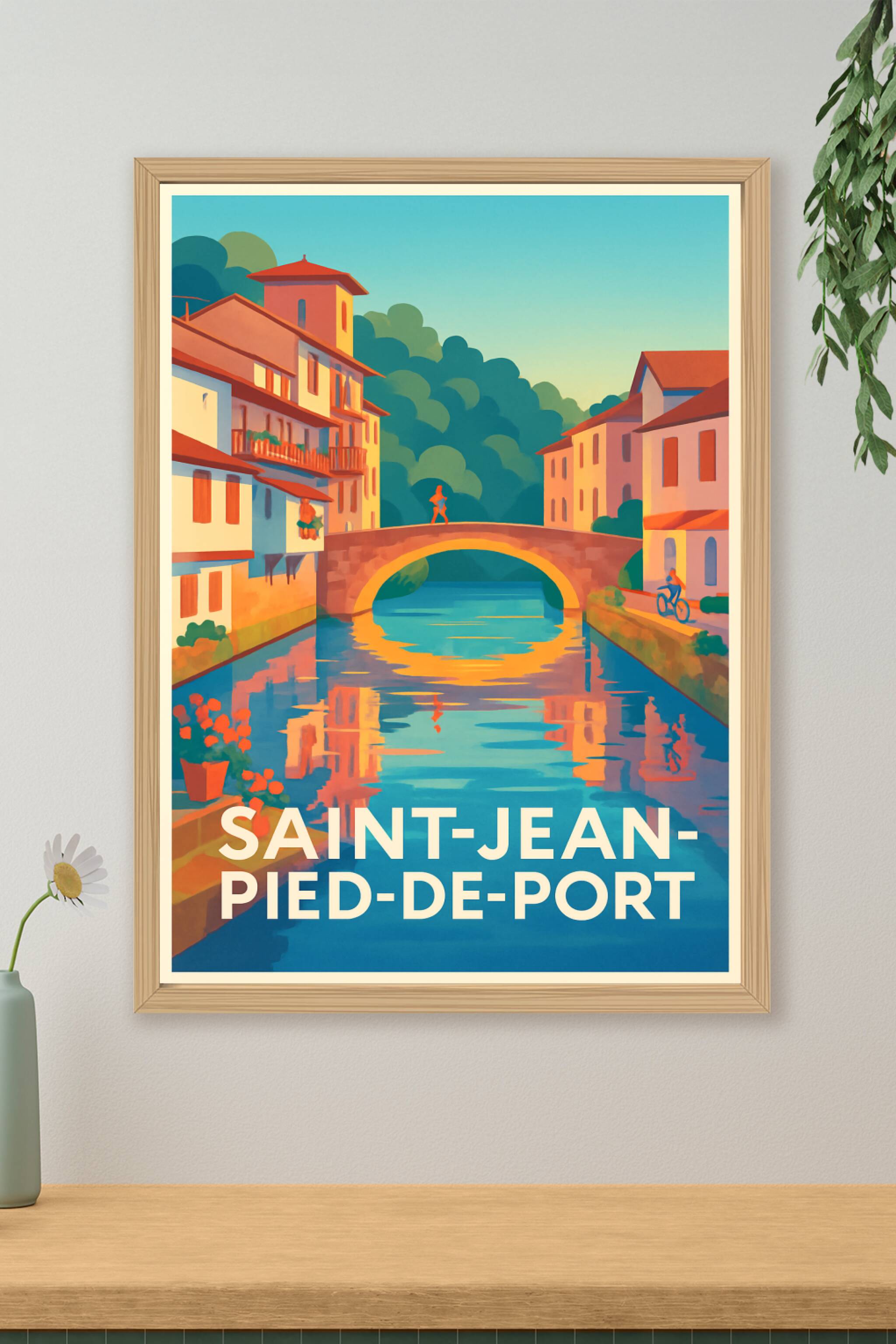 Découvrez l'élégance et la douceur de vivre de Saint-Jean-Pied-de-Port à travers cette affiche aux couleurs chaleureuses et apaisantes. Cette repré...