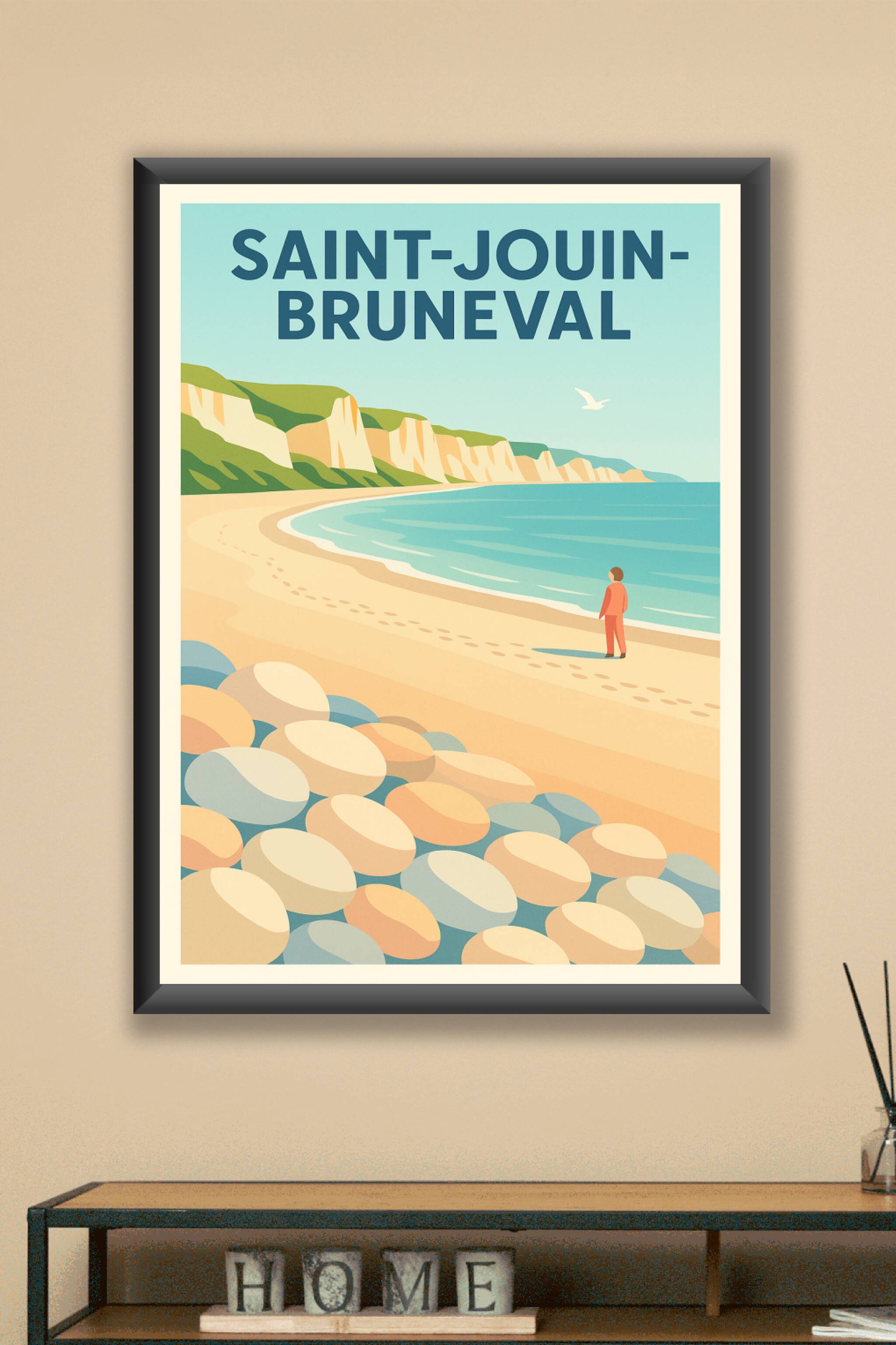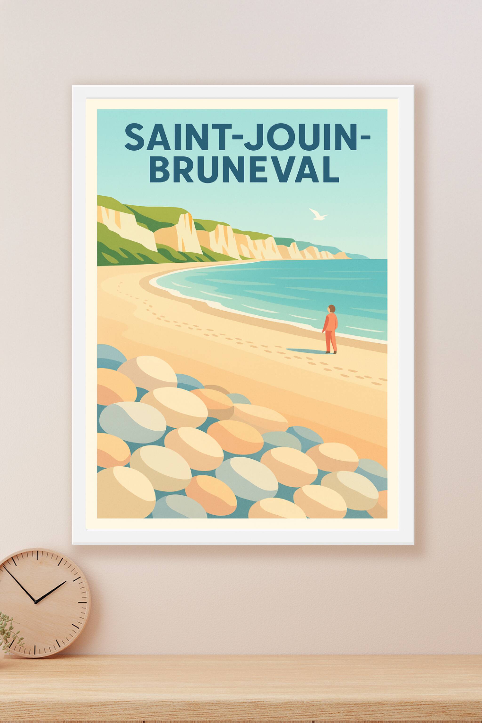 Découvrez la beauté paisible de Saint-Jouin-Bruneval avec ce poster évoquant la plage de galets et les falaises emblématiques du littoral normand. ...