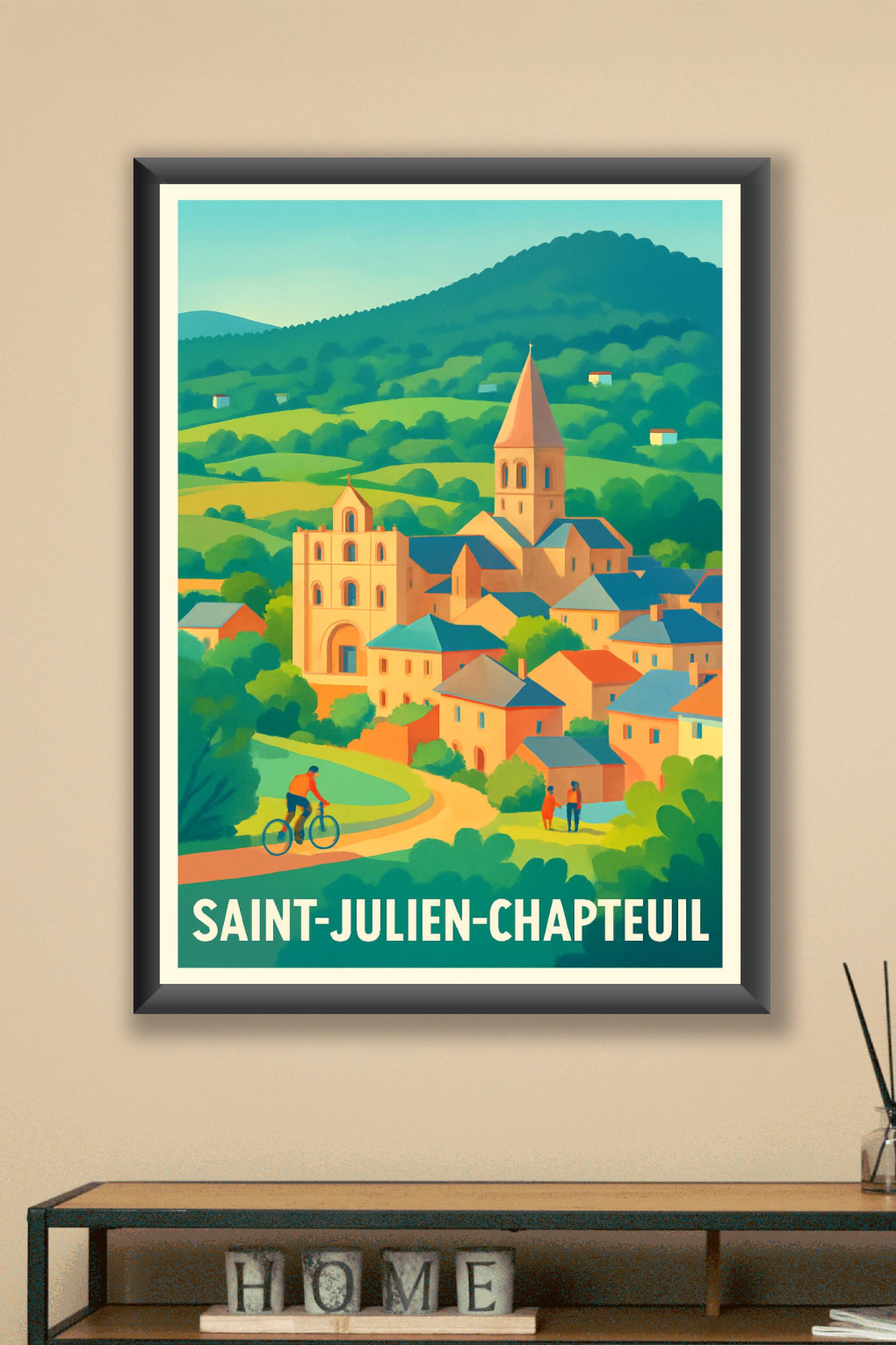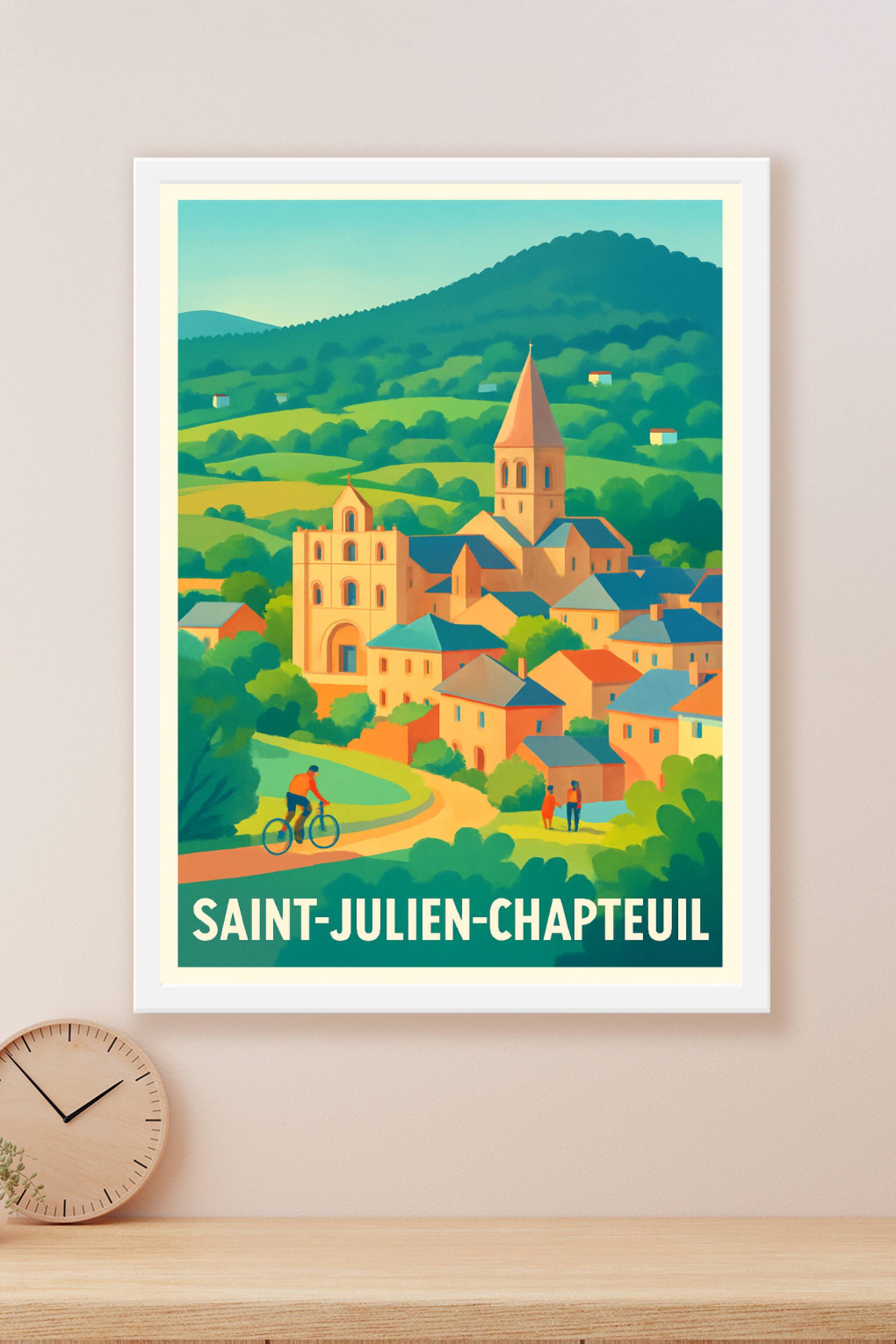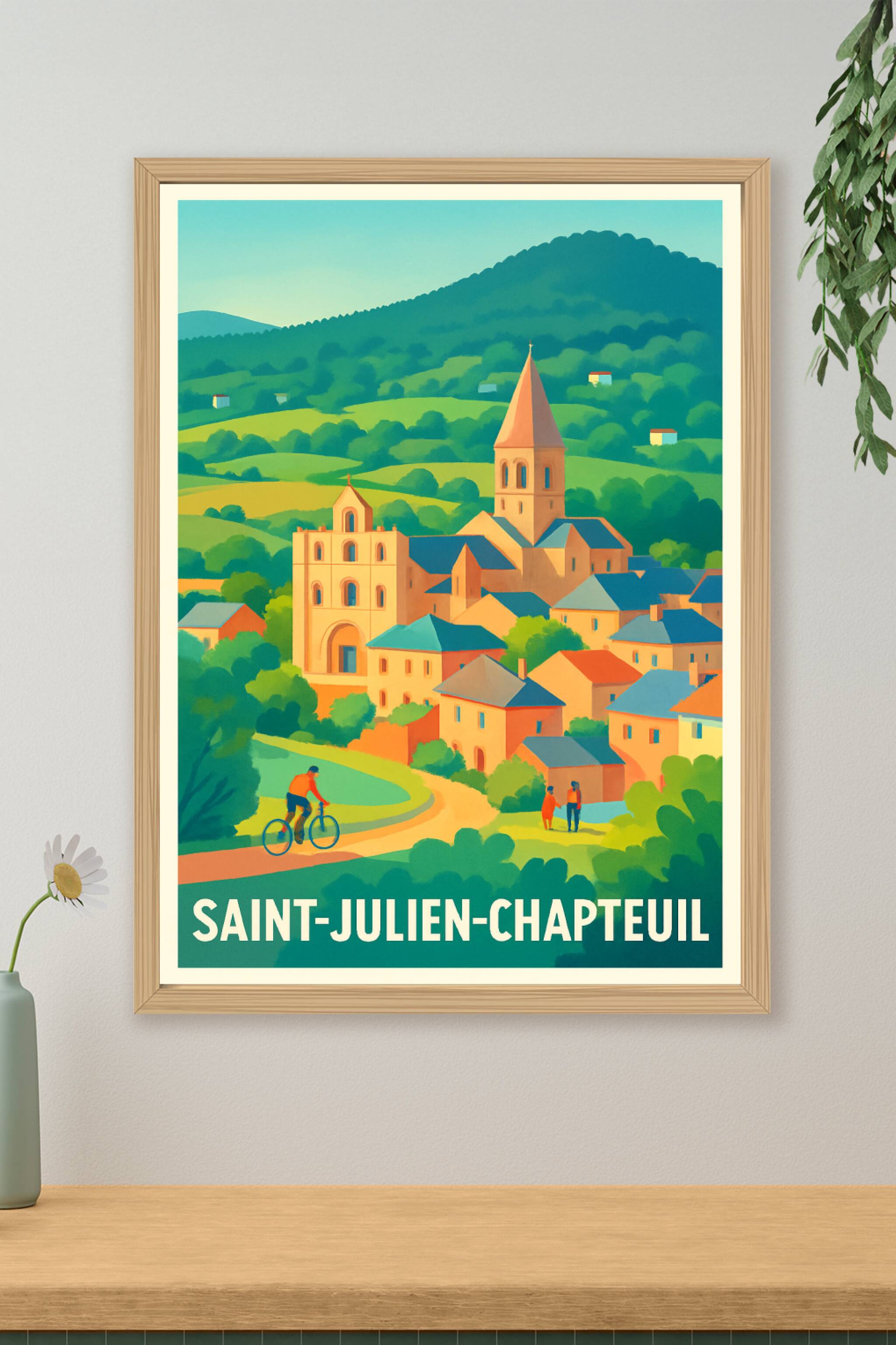 Découvrez l'essence paisible de Saint-Julien-Chapteuil avec cette affiche illustrée aux couleurs douces et lumineuses, mettant en scène ses paysage...