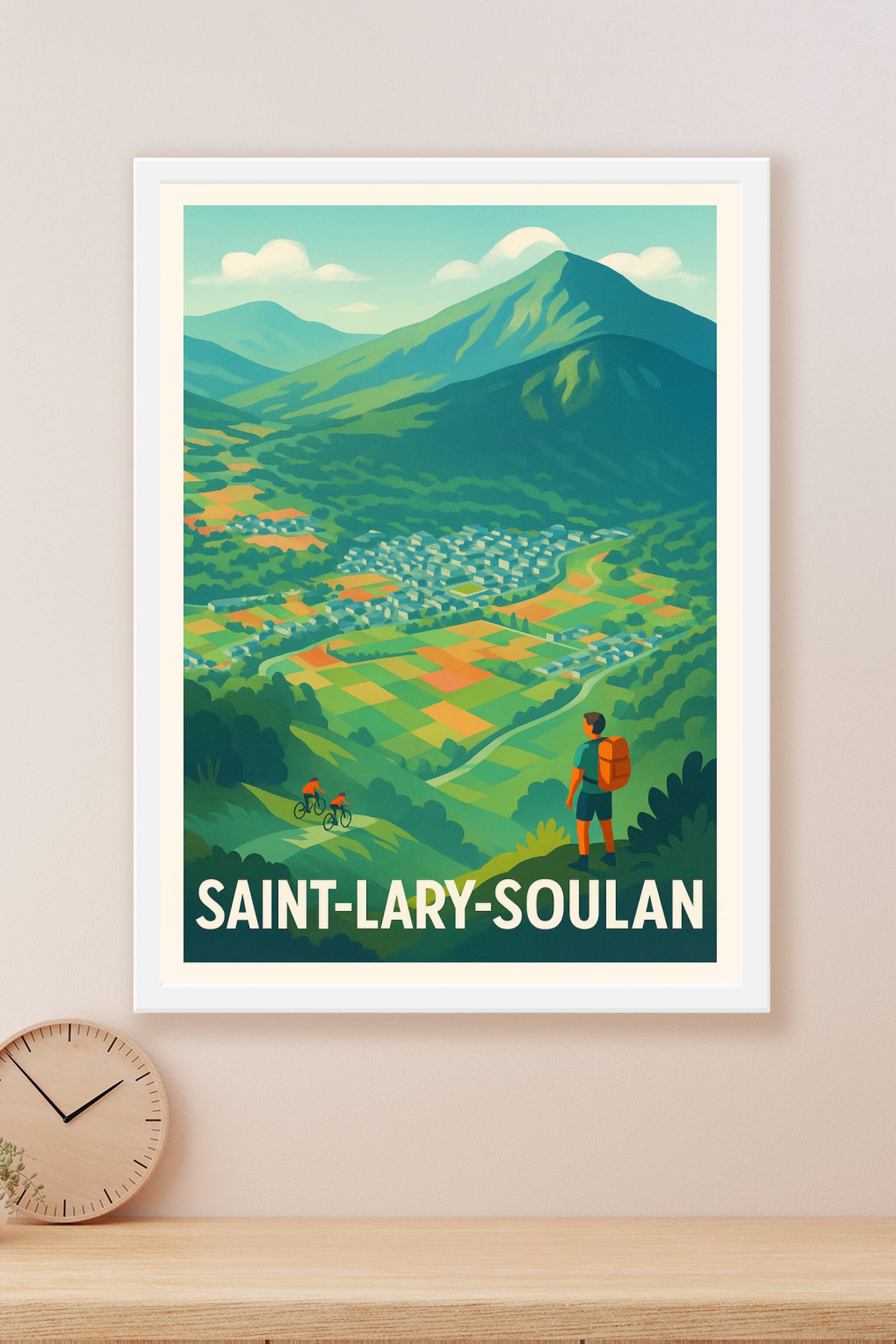 Découvrez la beauté naturelle et le charme authentique de Saint-Lary-Soulan à travers cette affiche vintage illustrée, qui capture l'essence des Pyrénées entre montagnes majestueuses et villages pittoresques. Parfaite pour les amoureux de randonnée et de vélo, cette poster met en scène un paysage coloré et apaisant, idéal pour apporter une touche d'évasion à votre intérieur.Ce poster est imprimé en tirage "Fine Art" sur papier 305g coton, garantissant une qualité d'impression exceptionnelle et une résistance dans le temps. Disponible en formats A1, A2, A3 et A4, avec ou sans cadre, cette affiche s'adapte à tous les espaces et styles de décoration.Profitez d'un produit 100% fabriqué en France, parfait pour embellir votre maison ou offrir un cadeau original aux passionnés de nature et de montagne.