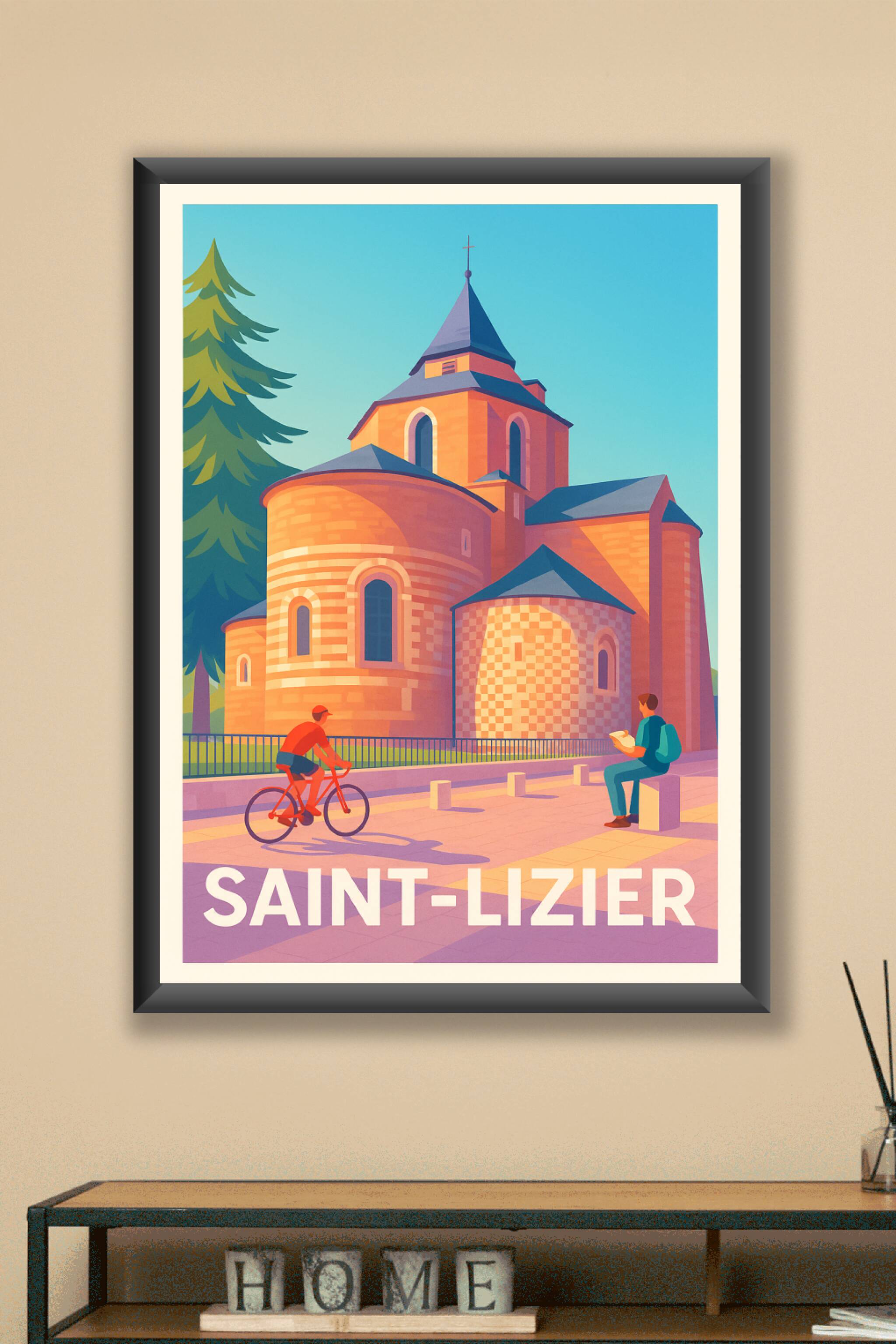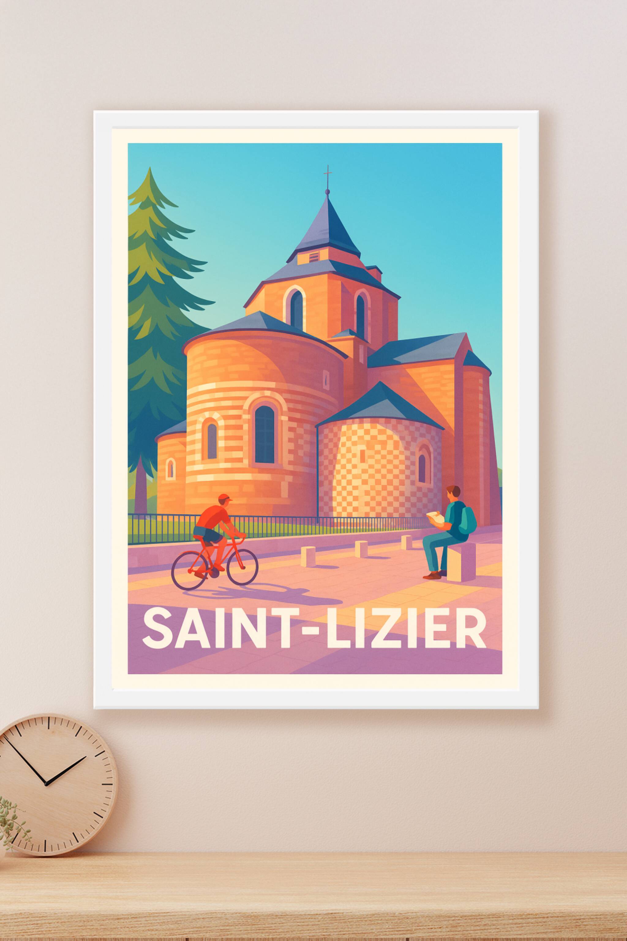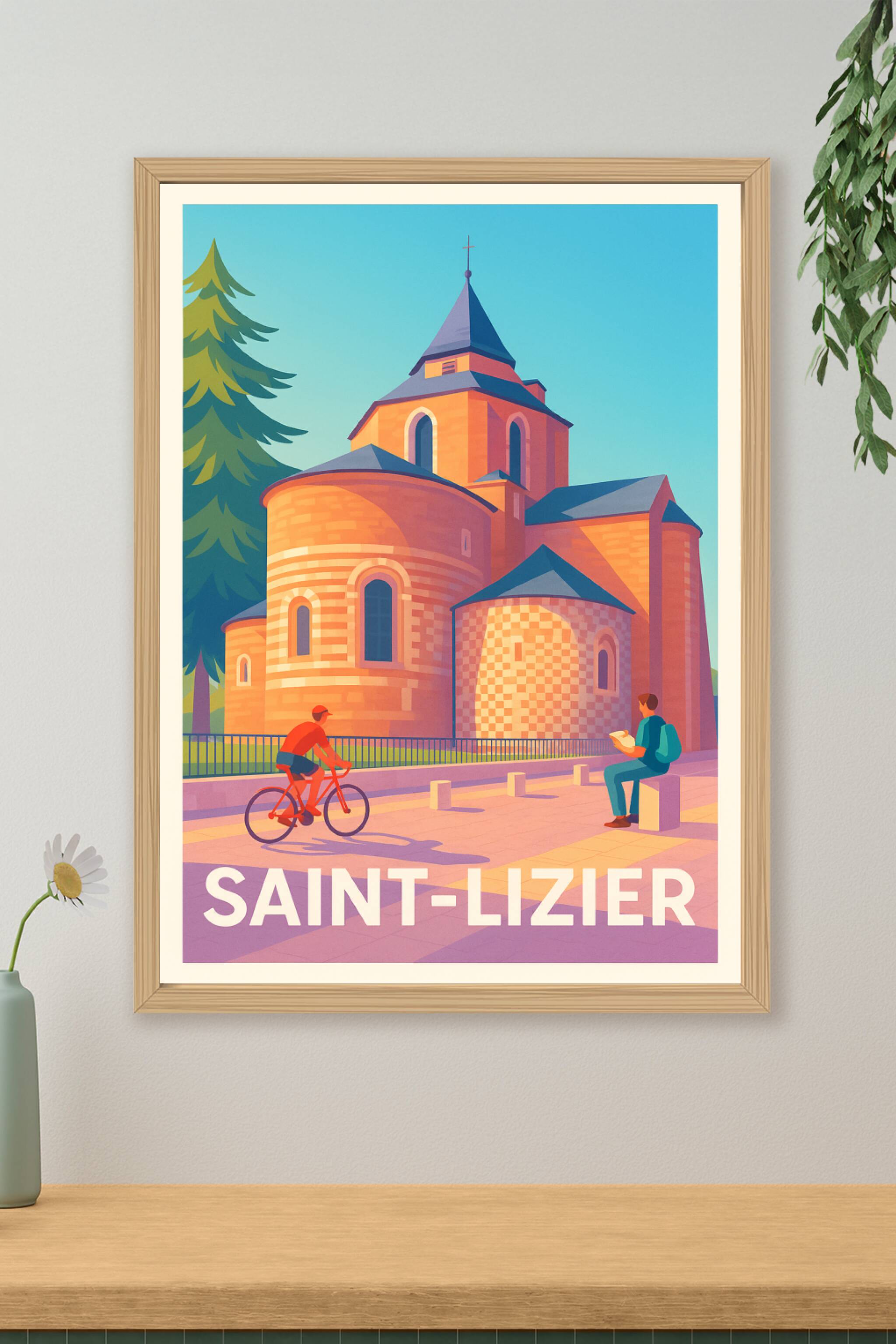 Découvrez le charme unique de Saint-Lizier avec cette affiche illustrée mettant en avant son architecture romane emblématique. Ce poster invite à u...