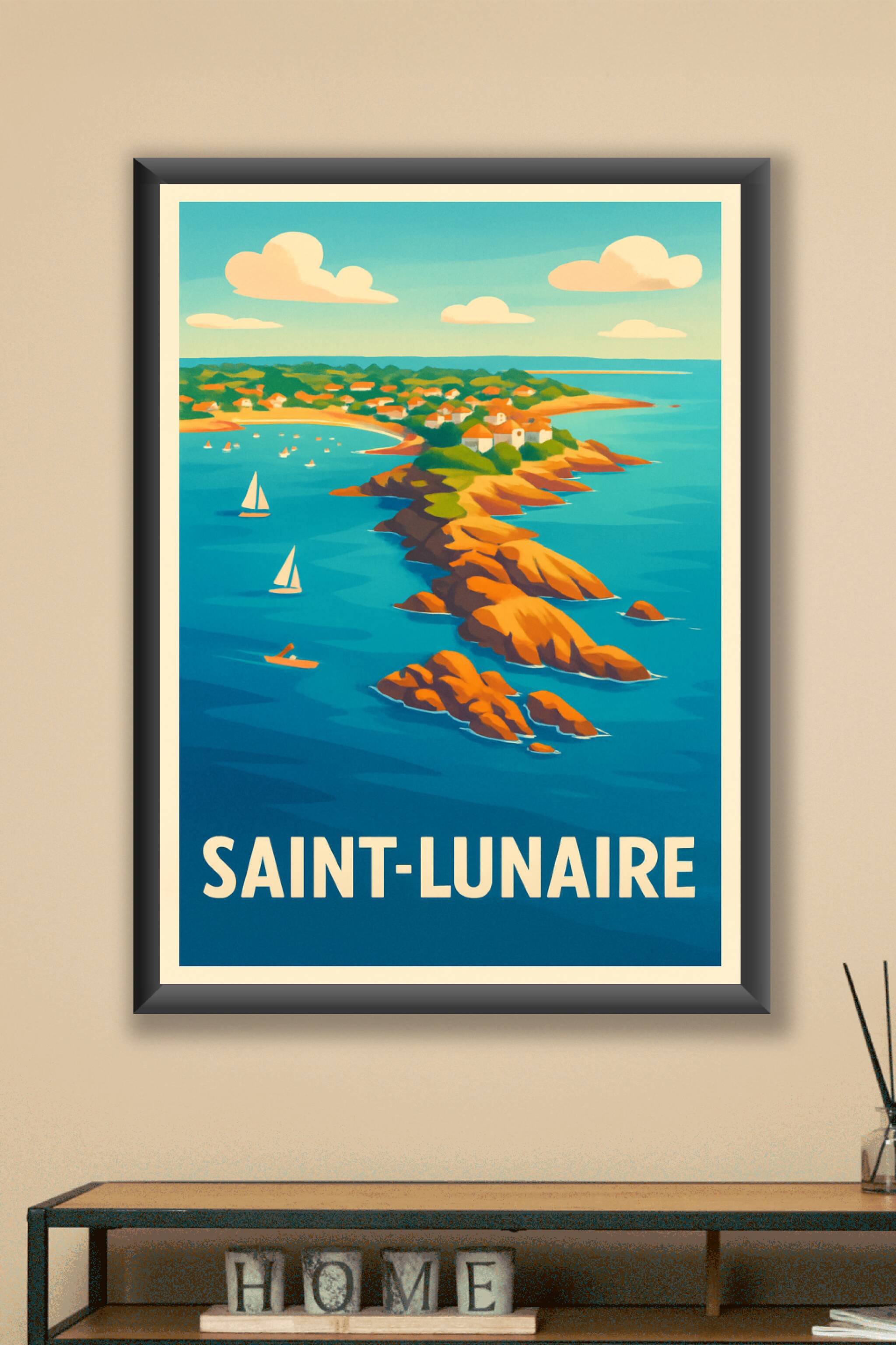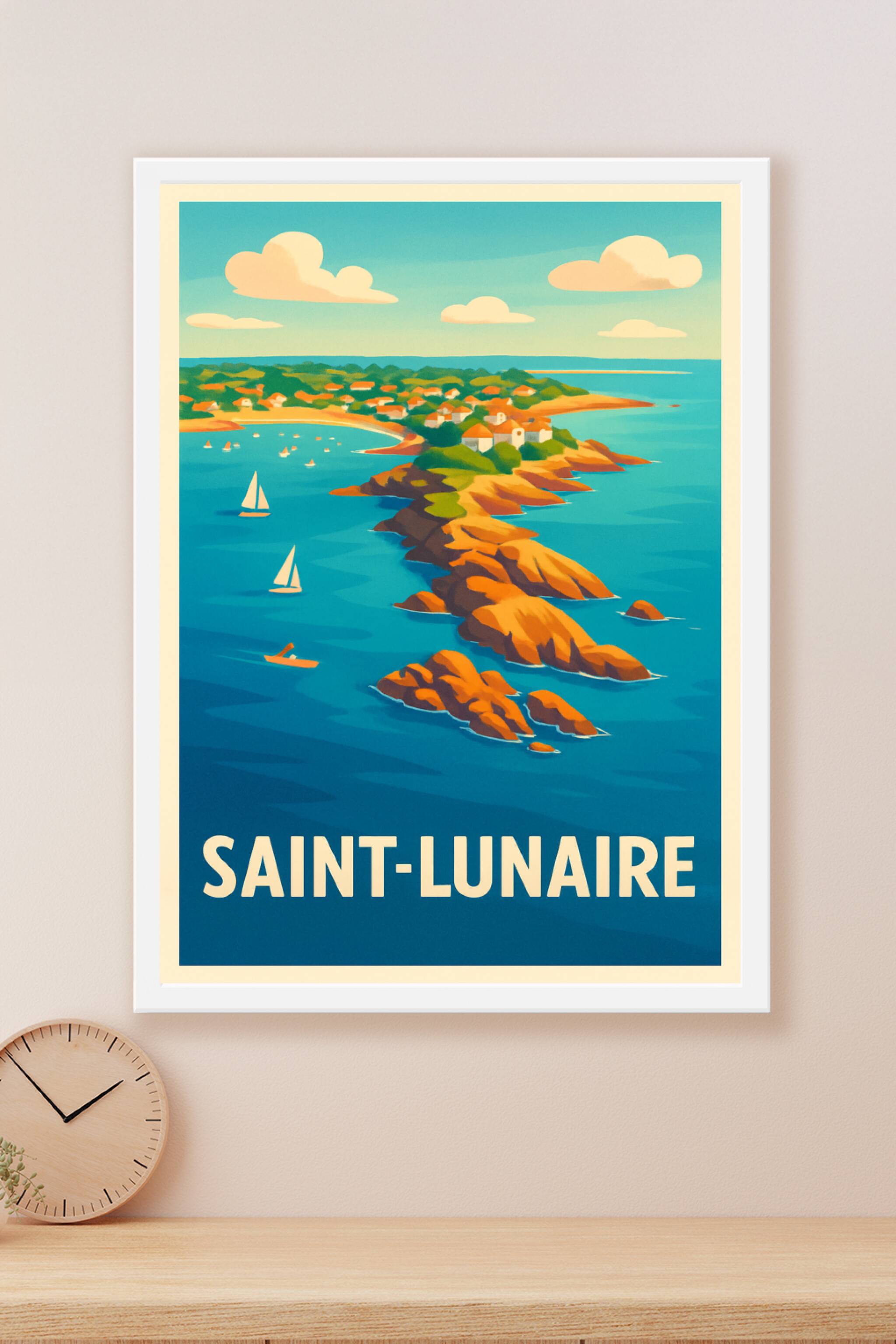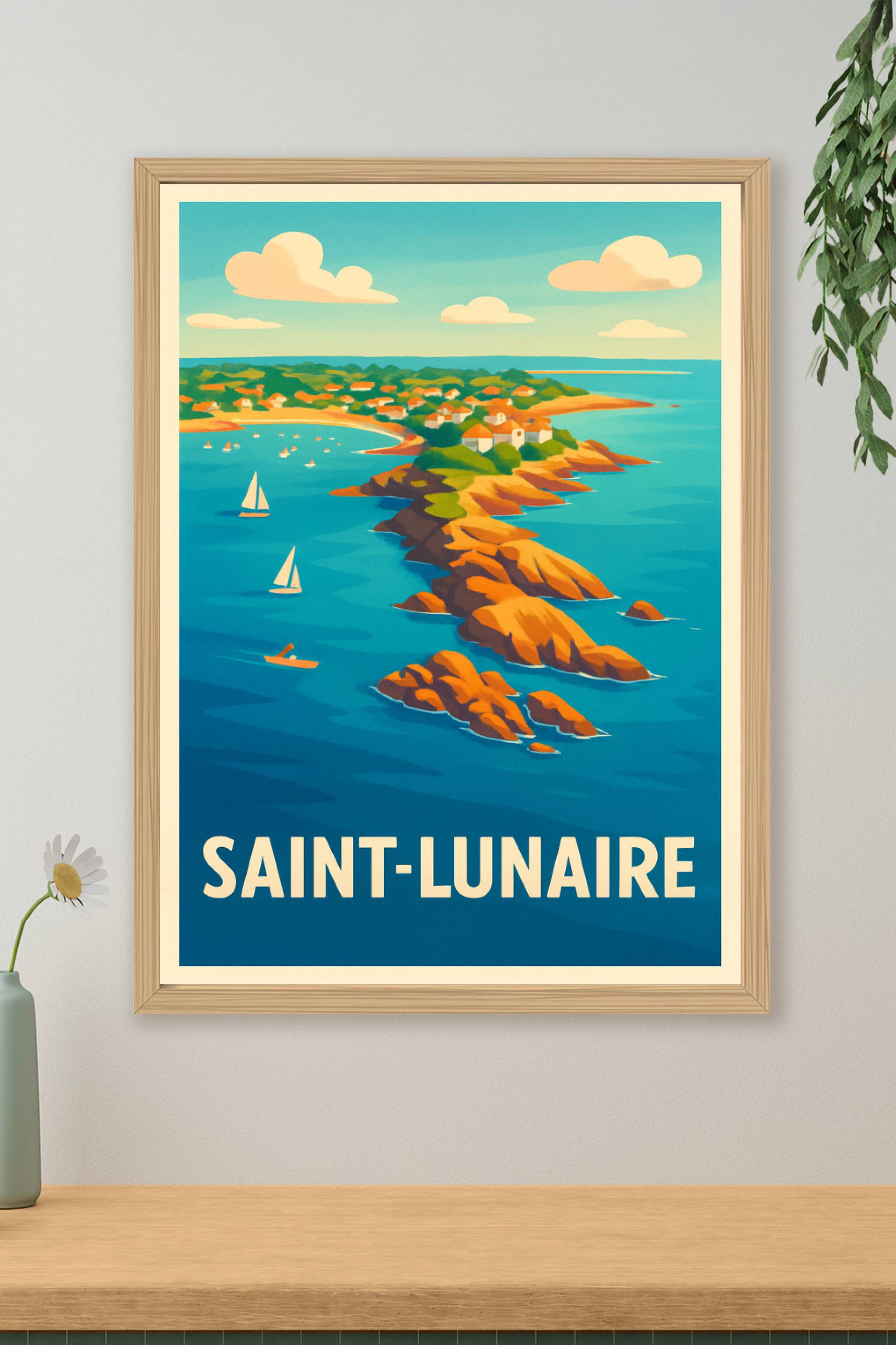 Découvrez la beauté sauvage et le charme authentique de Saint-Lunaire avec cette affiche illustrée, mettant en lumière ses paysages côtiers et ses ...