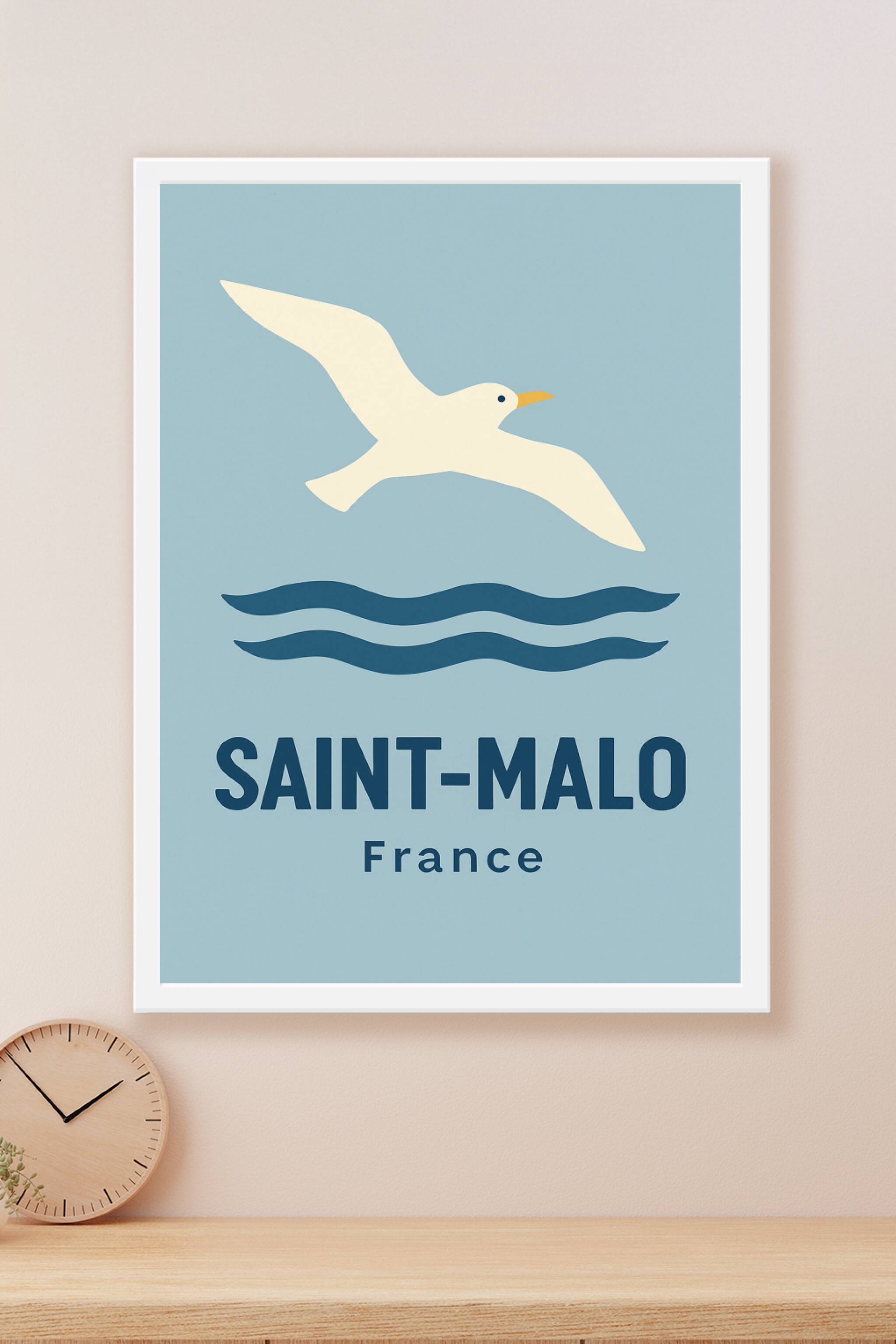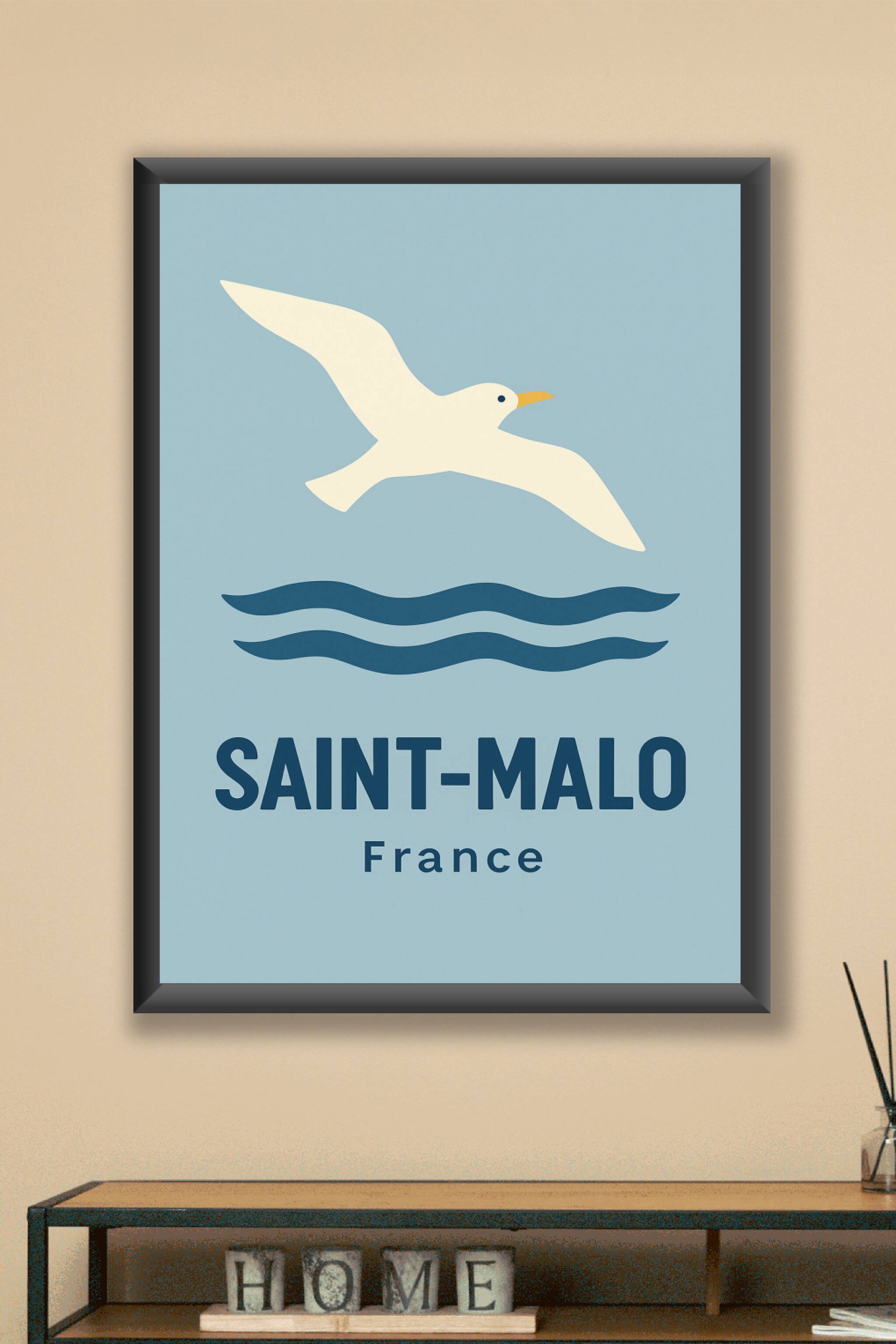 Apportez un souffle d'air marin et de simplicité décorative à votre intérieur avec ce poster minimaliste dédié à Saint-Malo. L'affiche met en scène une mouette en vol au-dessus des vagues, symbole emblématique de cette ville bretonne pleine de charme. Imprimée en haute définition sur papier couché brillant 250 g/m², cette affiche offre un rendu épais, résistant et aux couleurs durables. Disponible en formats A1 à A4, avec ou sans cadre, elle est parfaite pour sublimer votre décoration ou offrir un souvenir élégant des côtes bretonnes.