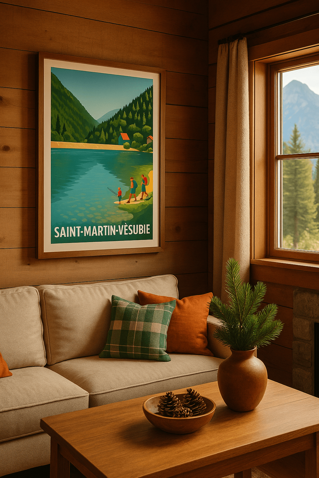 Découvrez l'atmosphère paisible et revitalisante de Saint-Martin-Vésubie avec cette affiche illustrée mettant en scène une scène de pêche au bord du lac, entourée de montagnes verdoyantes. Ce poster capture la beauté des paysages alpins dans un style vintage et apaisant, idéal pour apporter une touche de fraîcheur naturelle à votre décoration intérieure.Cette affiche est imprimée en tirage "Fine Art" sur papier 305g coton, garantissant une qualité d'impression exceptionnelle avec des couleurs éclatantes et une finesse des détails remarquables. Disponible en plusieurs formats du A1 au A4, avec ou sans cadre selon vos préférences, elle s'adapte à tous les espaces et styles.Plafonnez votre intérieur avec ce poster premium 100% fabriqué en France, parfait pour les amateurs de nature, de montagne et les passionnés de randonnées alpines.
