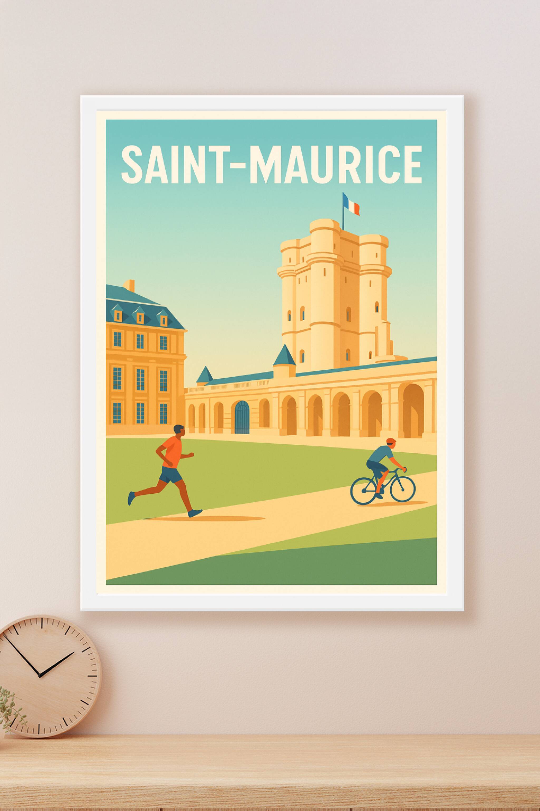 Découvrez l'affiche vintage de Saint-Maurice mettant en scène son architecture emblématique avec une touche de vie urbaine grâce aux personnages en plein jogging et balade à vélo. Ce poster premium est imprimé en tirage "Fine Art" sur papier 305g coton, garantissant une qualité d'impression exceptionnelle et des couleurs éclatantes. Disponible en plusieurs formats du A4 au A1, avec ou sans cadre, cette affiche apportera une note élégante et dynamique à votre intérieur. Parfaite pour les passionnés d'urbanisme et les amateurs d'art graphique, cette décoration unique est 100% fabriquée en France.