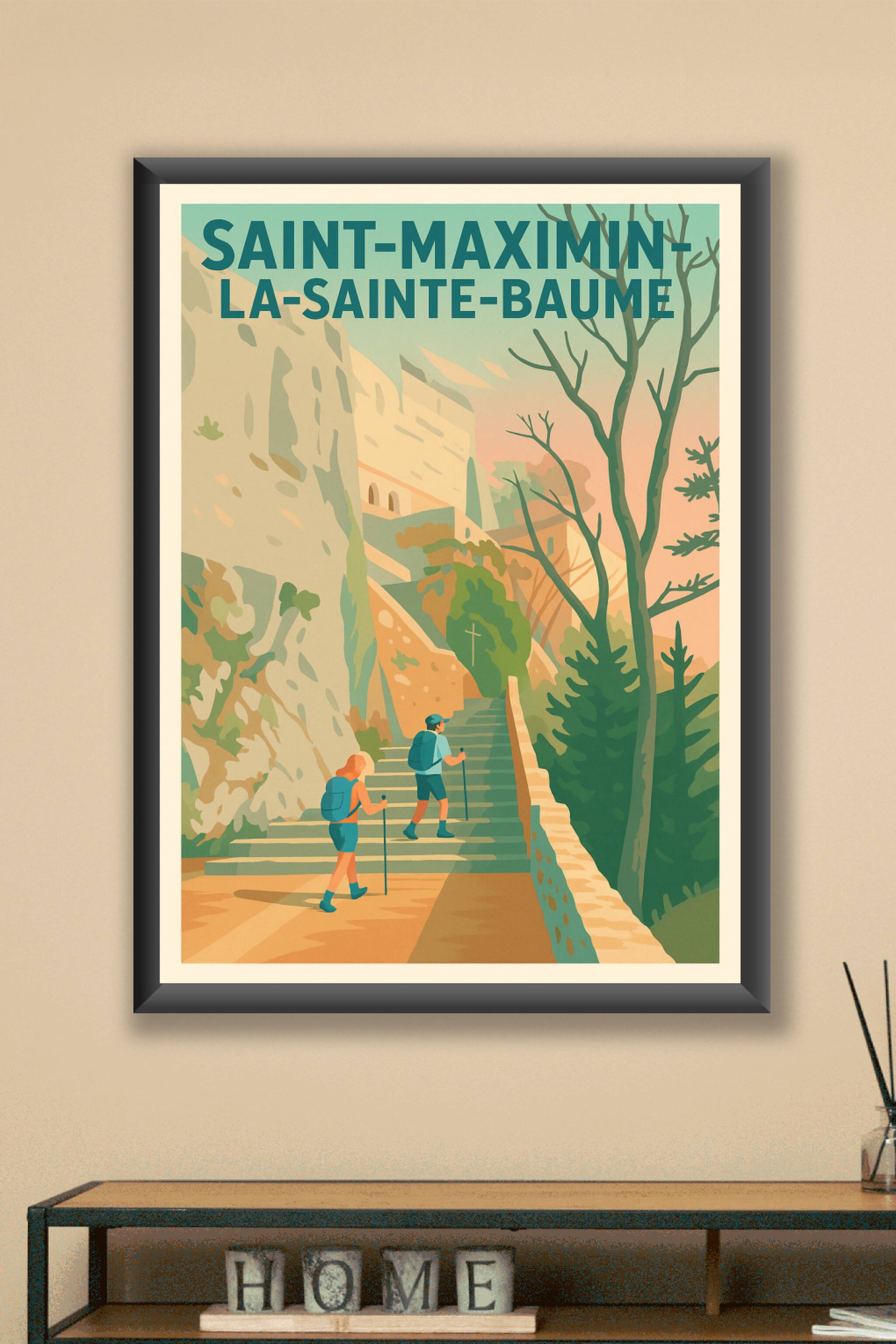 Découvrez la beauté authentique de Saint-Maximin-la-Sainte-Baume à travers cette affiche qui met en valeur ses sentiers escarpés et son riche patri...