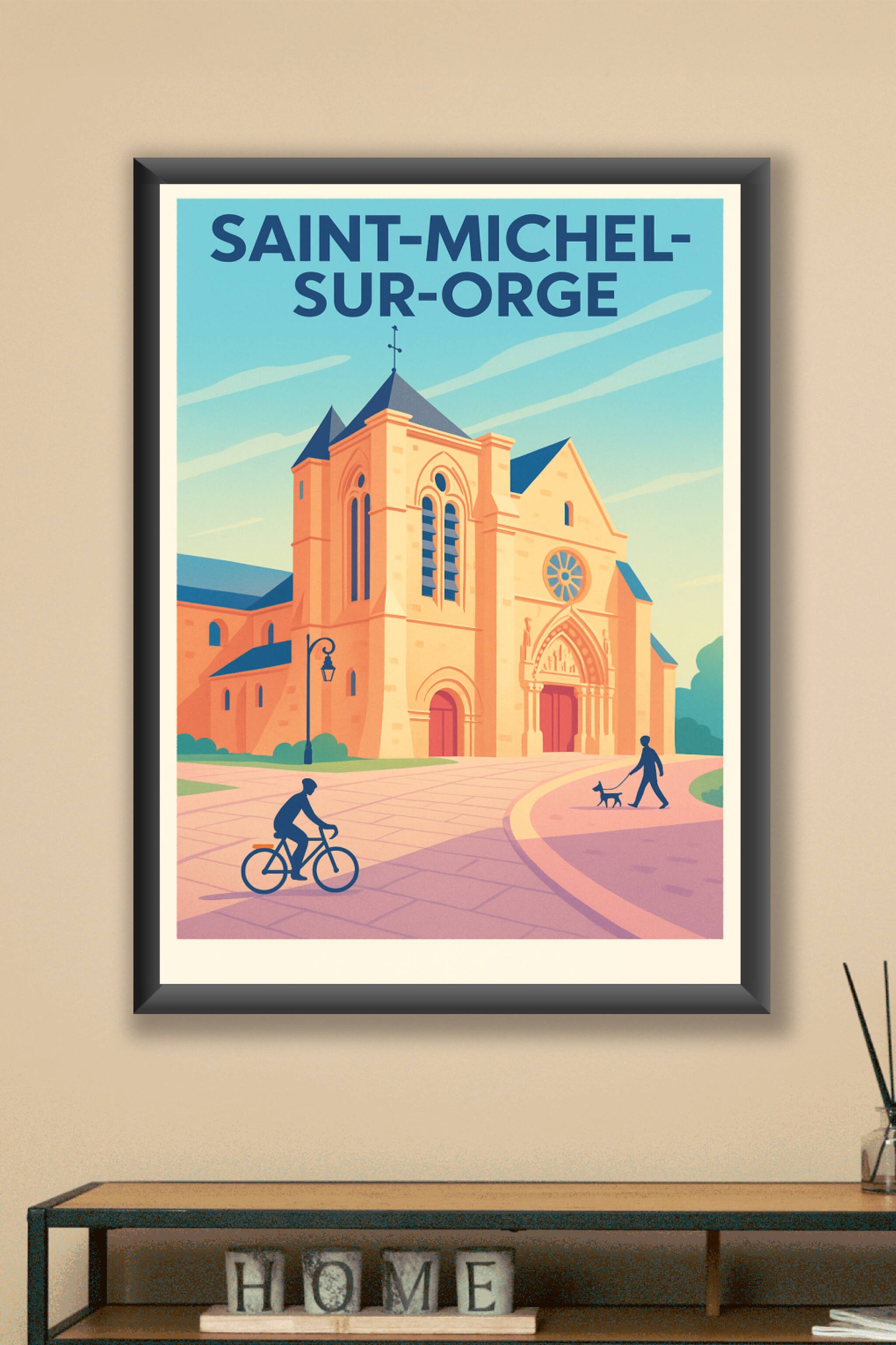 Découvrez cette magnifique affiche illustrant l'église emblématique de Saint-Michel-sur-Orge, baignée dans une lumière douce et chaleureuse. Ce poster, au style graphique épuré aux teintes pastel, capture l'essence paisible de cette charmante ville. Imprimée en tirage "Fine Art" sur papier 305g coton, cette affiche offre une qualité d'impression exceptionnelle, valorisant les détails et les couleurs vibrantes de l'œuvre. Disponible du format A1 au format A4, avec ou sans cadre, elle s'intègre parfaitement à tout intérieur, ajoutant une touche d'élégance et de sérénité. Offrez-vous ce poster d'exception, 100% fabriqué en France, pour embellir votre décoration ou garder un souvenir précieux de Saint-Michel-sur-Orge.