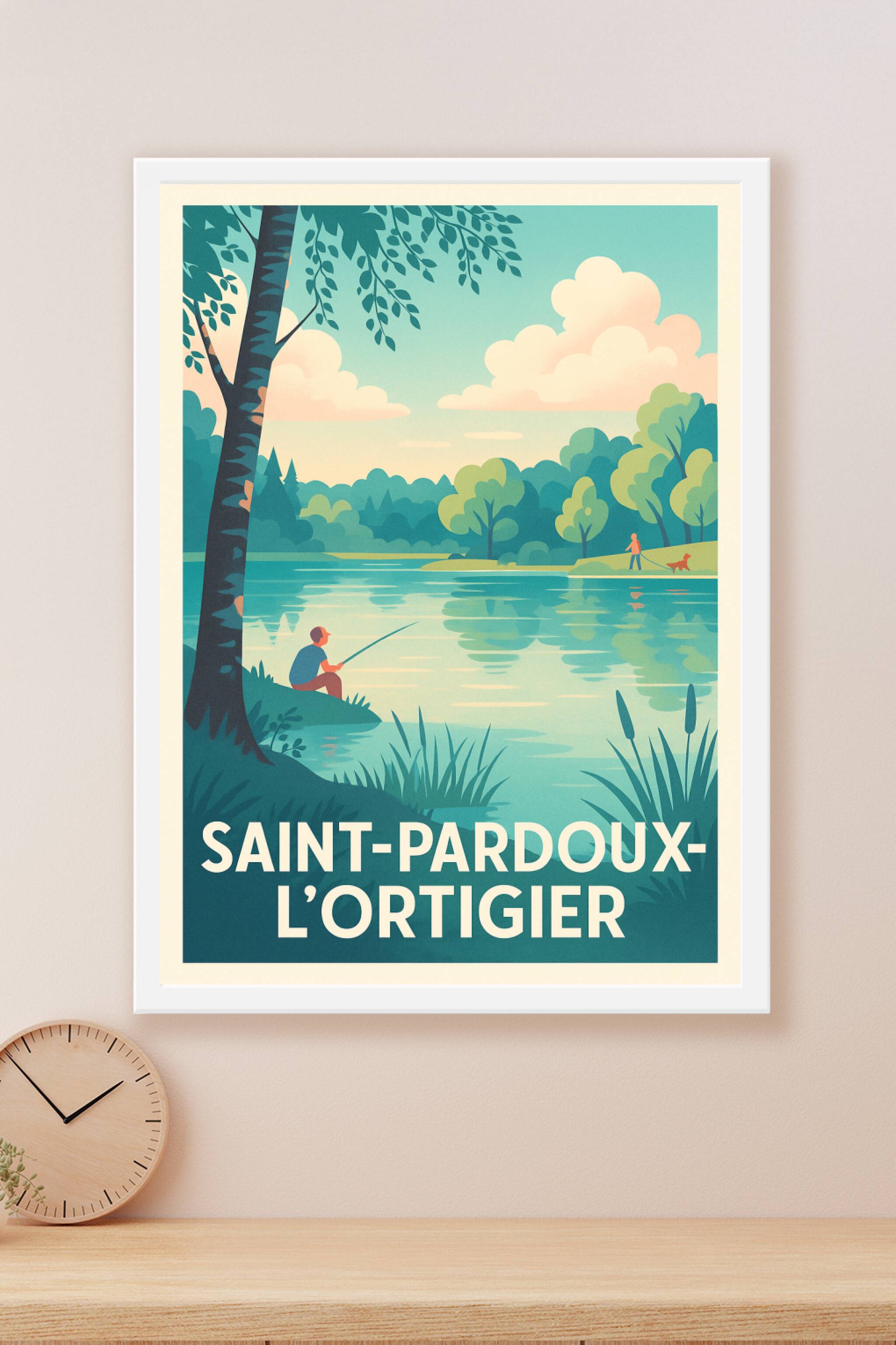 Découvrez cette magnifique affiche illustrant la quiétude et la nature préservée de Saint-Pardoux-l'Ortigier. Ce poster vibrant de douceur et de ca...