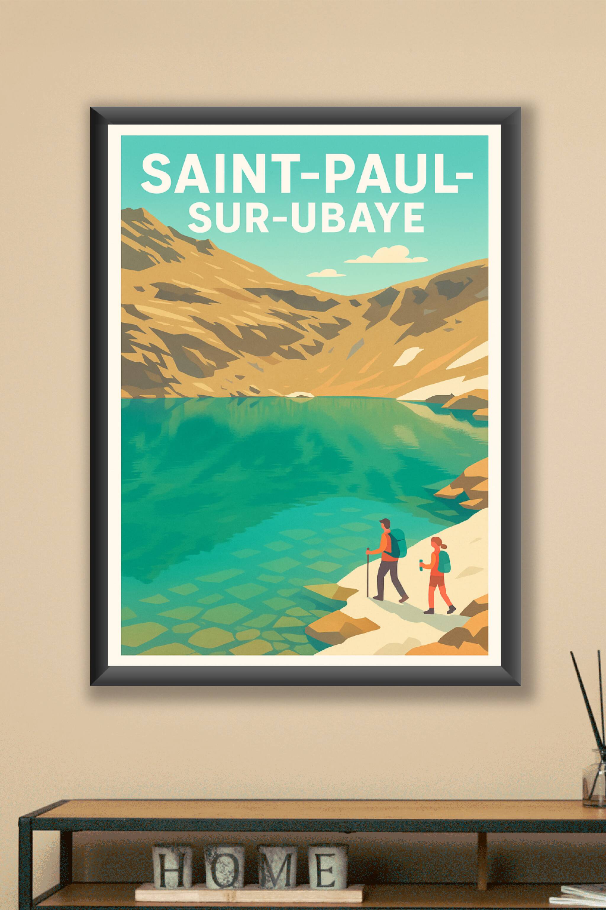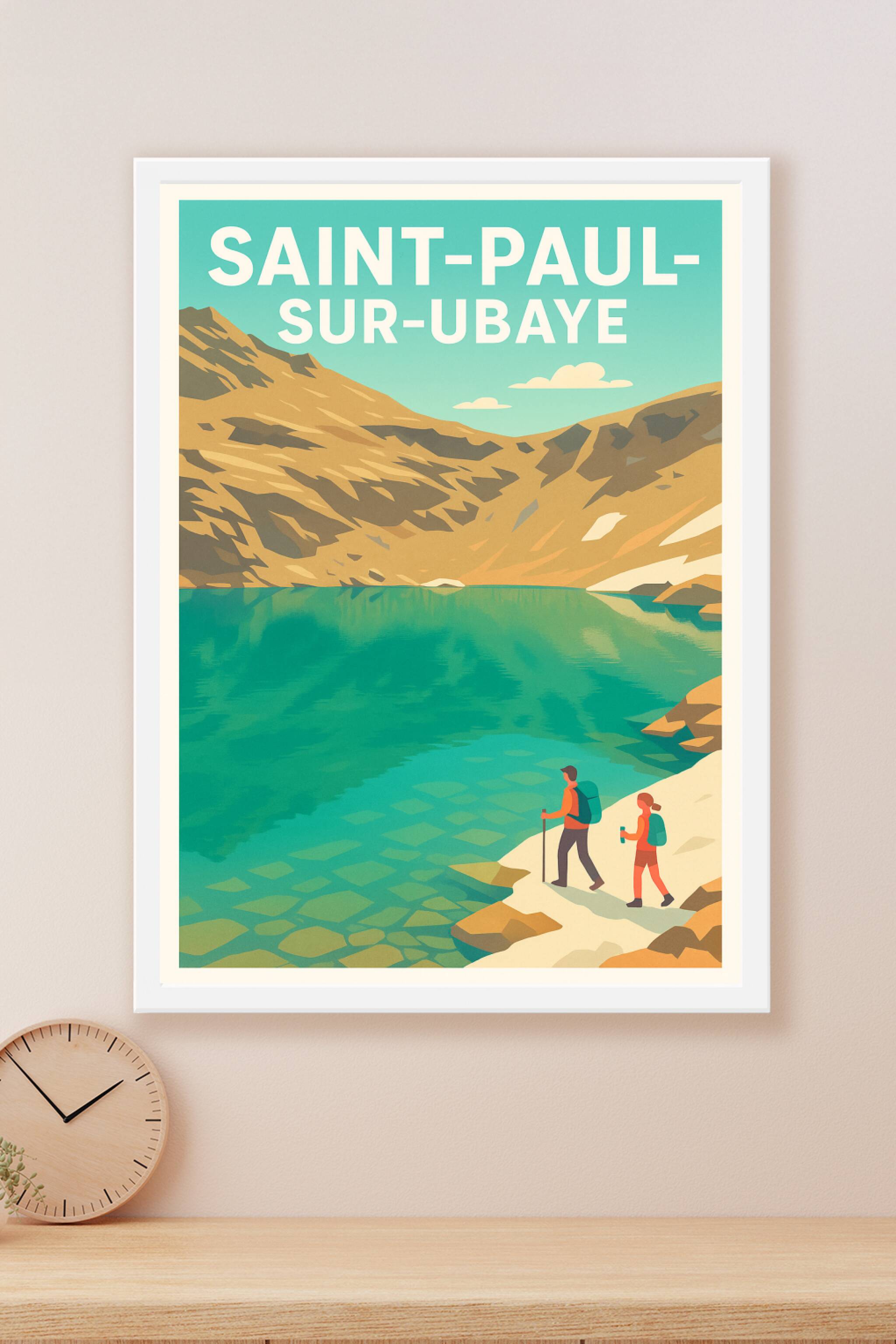 Découvrez la beauté sauvage et paisible de Saint-Paul-sur-Ubaye à travers cette affiche illustrée mettant en scène un lac de montagne aux eaux limpides et deux randonneurs profitant du paysage. Ce poster au style graphique épuré et coloré invite à l'évasion et à l'exploration des grands espaces alpins. Imprimée en tirage 'Fine Art' sur un papier 305g coton de haute qualité, cette affiche garantit une fidélité des couleurs et une longévité exceptionnelle. Disponible du format A1 au format A4, avec ou sans cadre, elle s'adapte parfaitement à tous les intérieurs, qu'ils soient modernes ou plus rustiques. Apportez une touche d'aventure et de nature à votre décoration avec ce poster premium 100% fabriqué en France, idéal pour les passionnés de montagne et les amoureux des grands espaces.