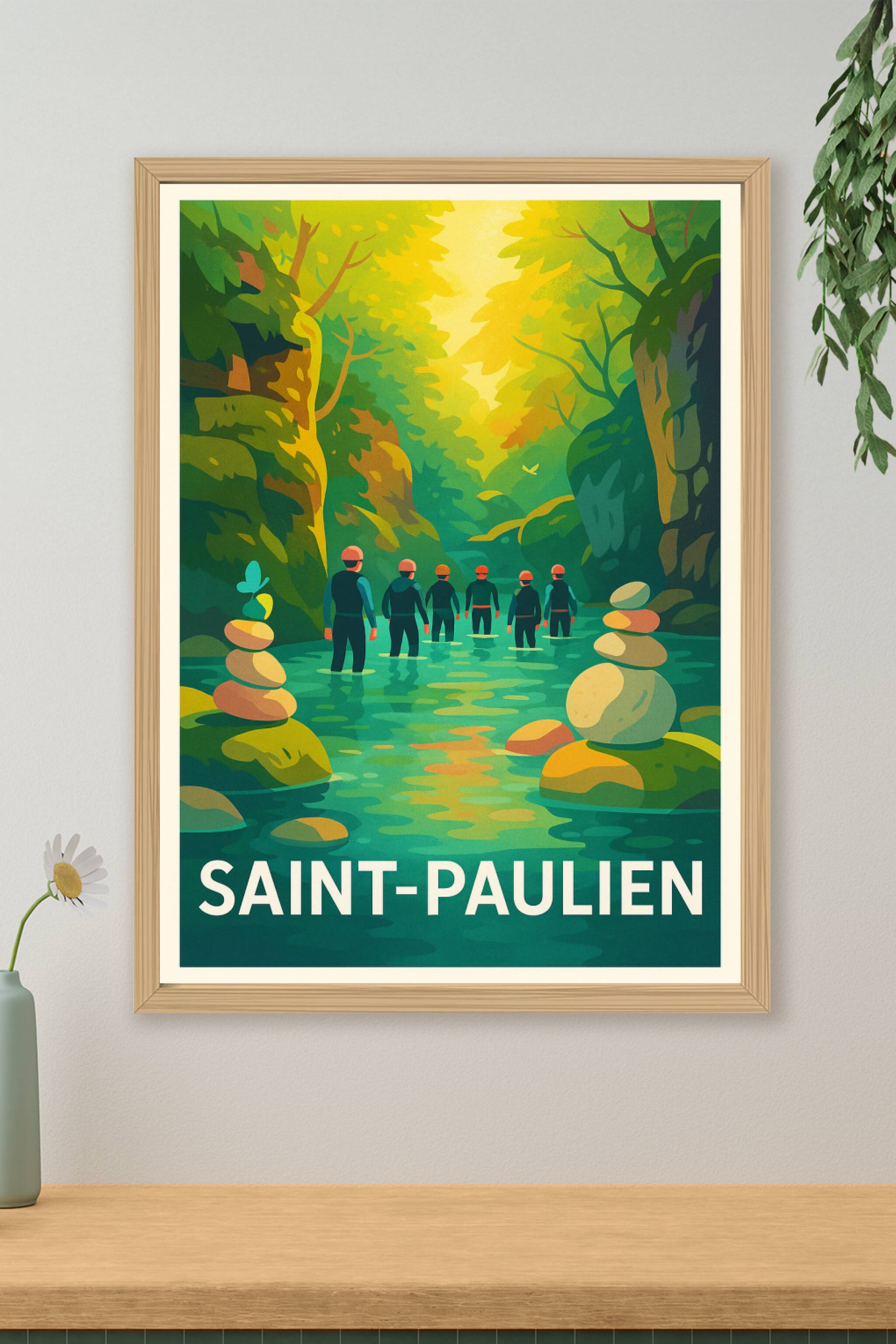 Découvrez la beauté sauvage de Saint-Paulien avec cette affiche vibrante illustrant une immersion au cœur des rivières et forêts verdoyantes. Ce po...
