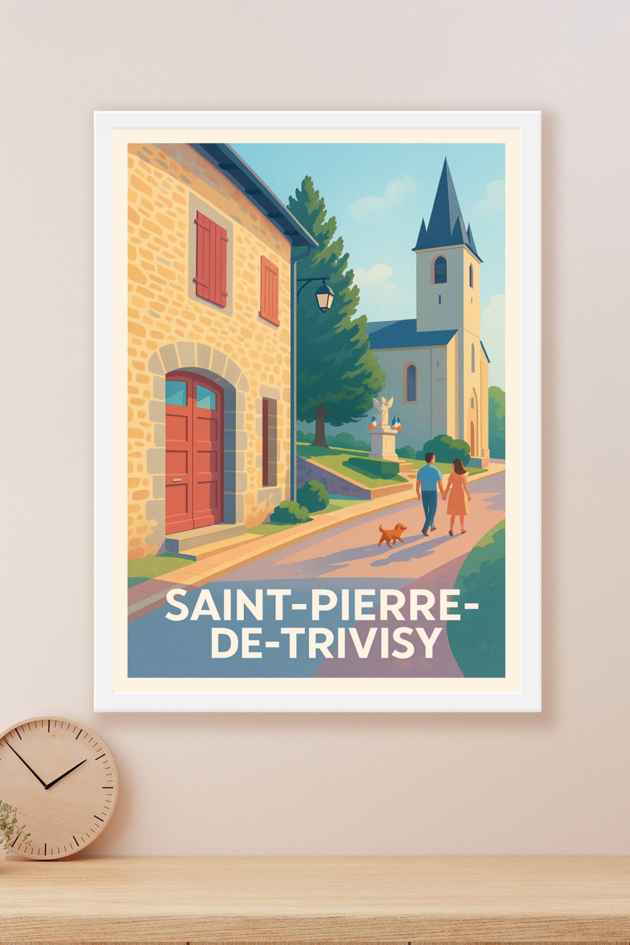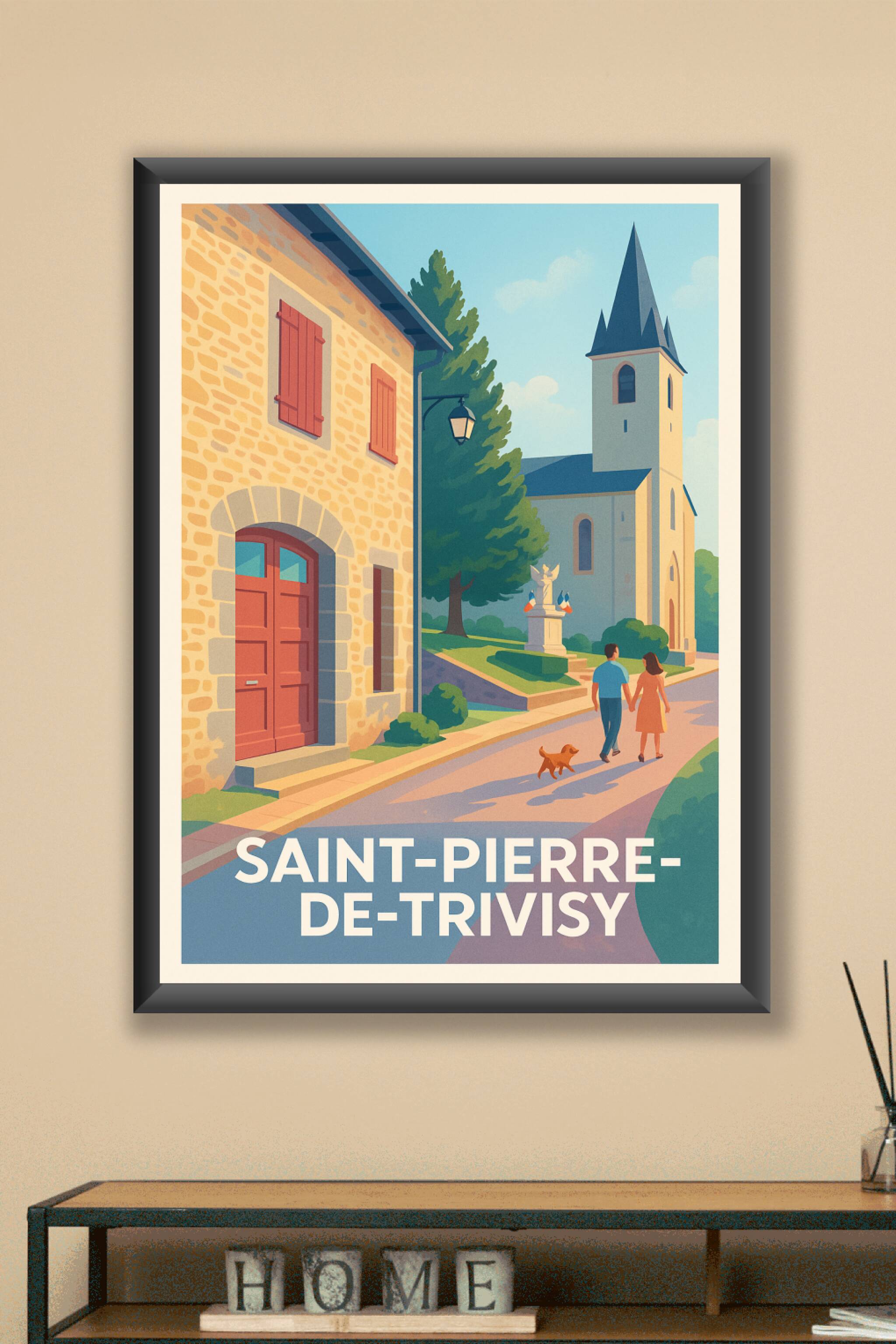 Découvrez le calme et la beauté de Saint-Pierre-de-Trivisy avec cette affiche illustrée qui capture l'ambiance paisible d'un village typique, entre...