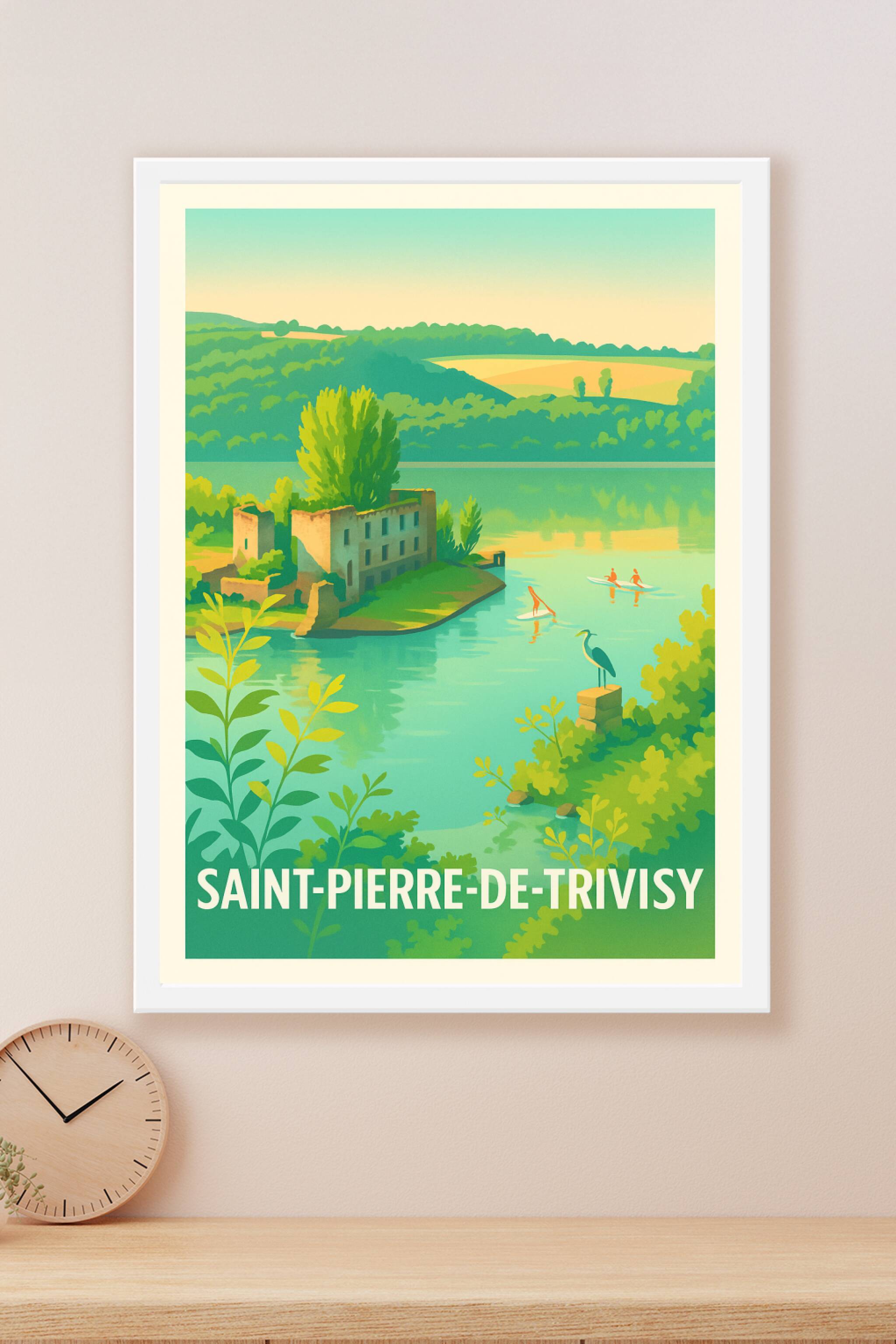 Découvrez la douceur paisible de Saint-Pierre-de-Trivisy avec cette affiche illustrée, mettant en scène un paysage harmonieux aux teintes douces et...