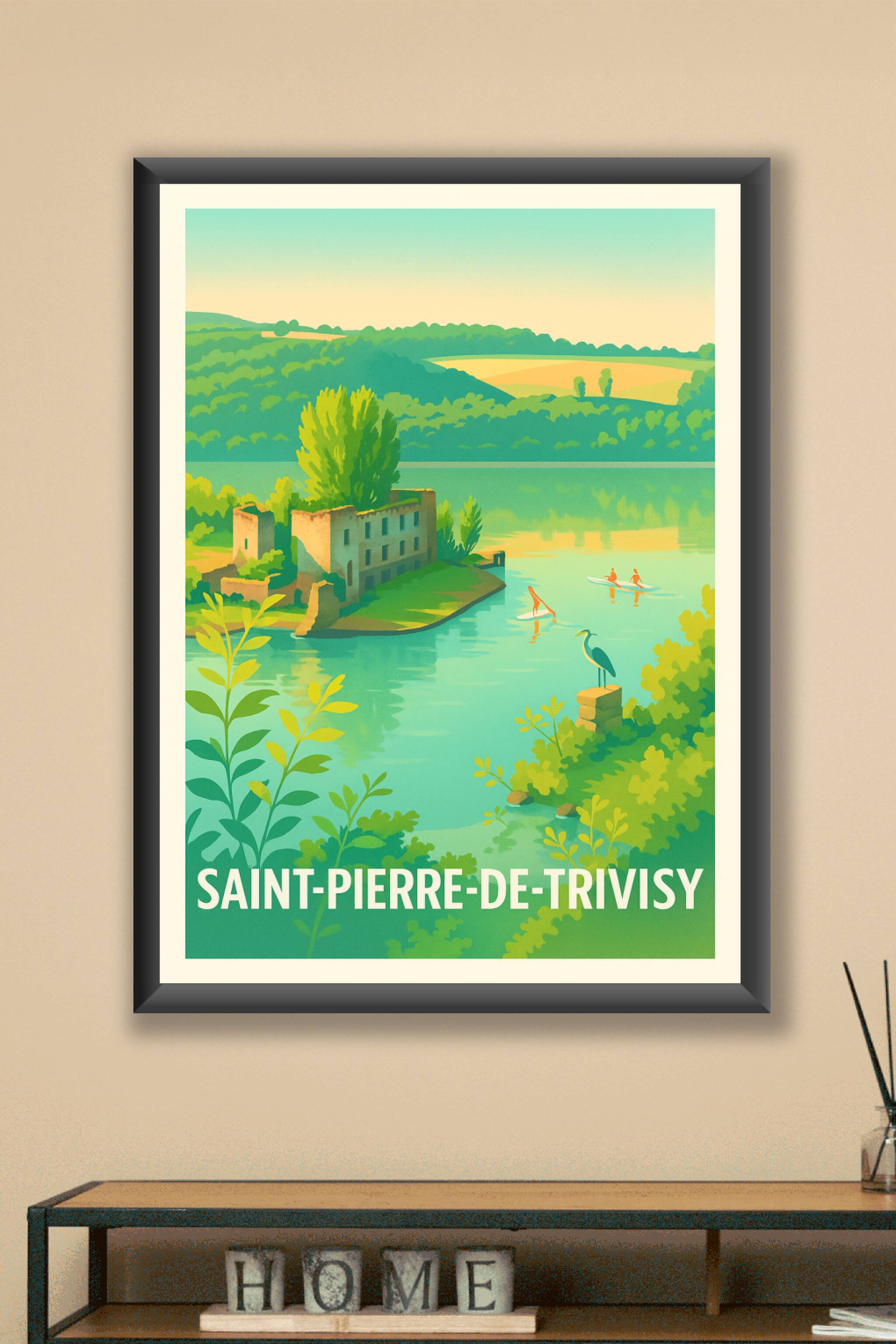 Découvrez la douceur paisible de Saint-Pierre-de-Trivisy avec cette affiche illustrée, mettant en scène un paysage harmonieux aux teintes douces et apaisantes. Le poster capture un instant de quiétude où la nature et l'eau se mêlent avec élégance, idéal pour insuffler une ambiance reposante dans votre intérieur. Ce poster est imprimé en tirage "Fine Art" sur papier 305g coton, garantissant une qualité d'impression exceptionnelle et une longue tenue des couleurs. Disponible en formats A1 à A4, avec ou sans cadre, cette affiche apportera une touche d'authenticité et de charme naturel à votre décoration. Offrez-vous une qualité d'impression premium, 100% fabriquée en France, pour une véritable immersion visuelle au cœur de la campagne française.